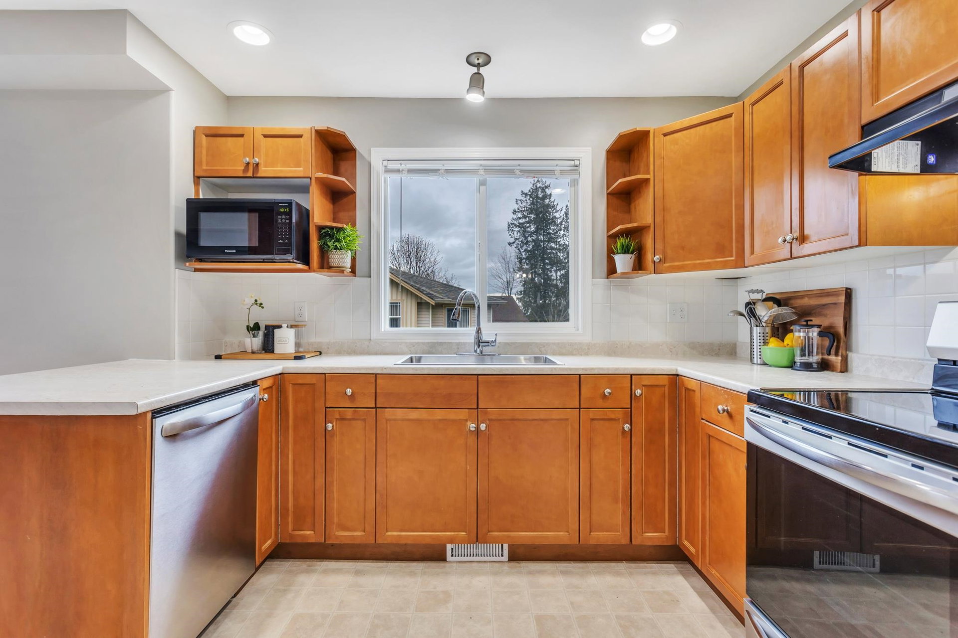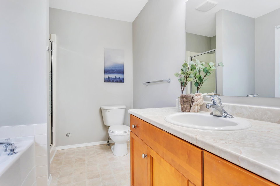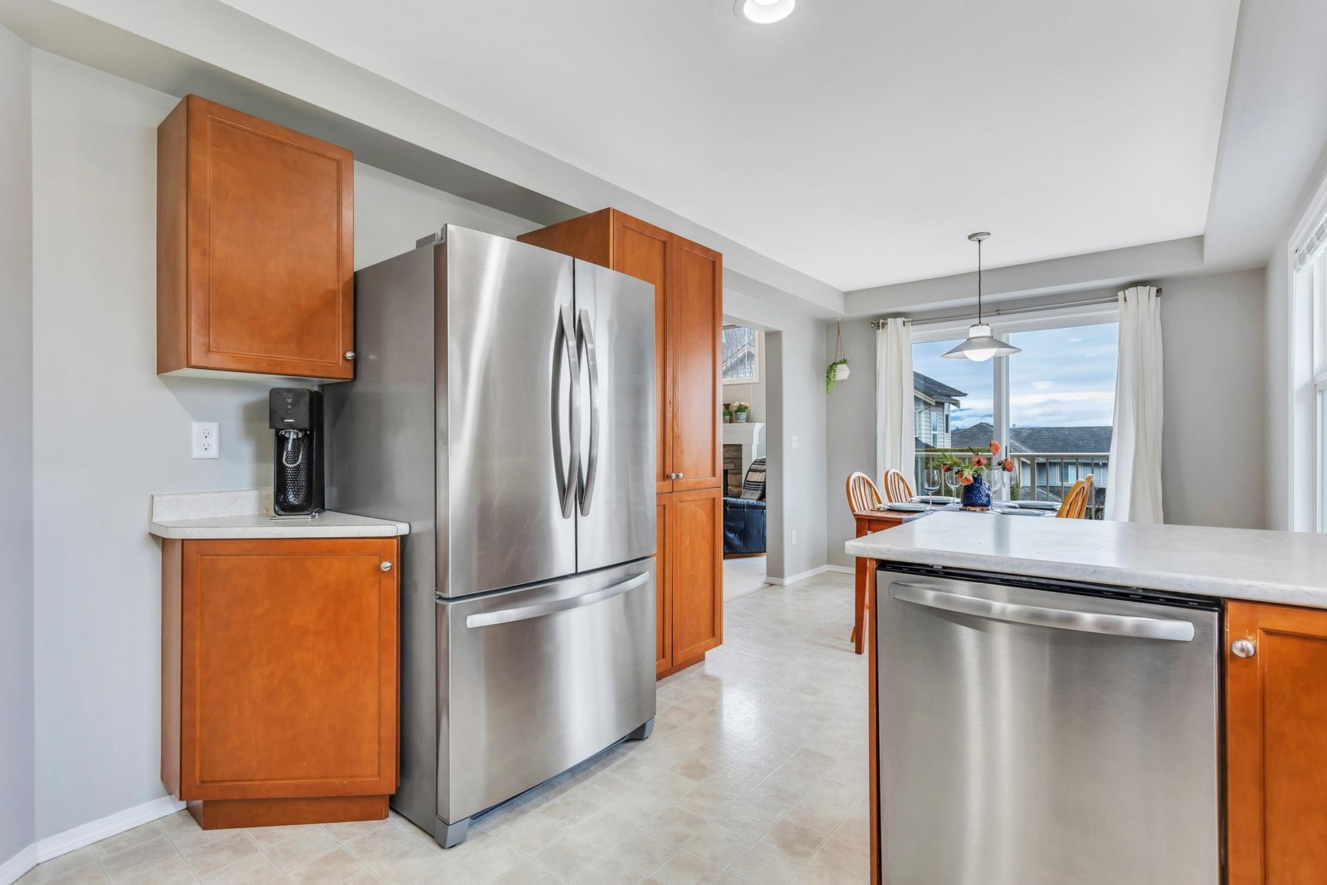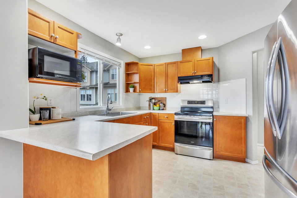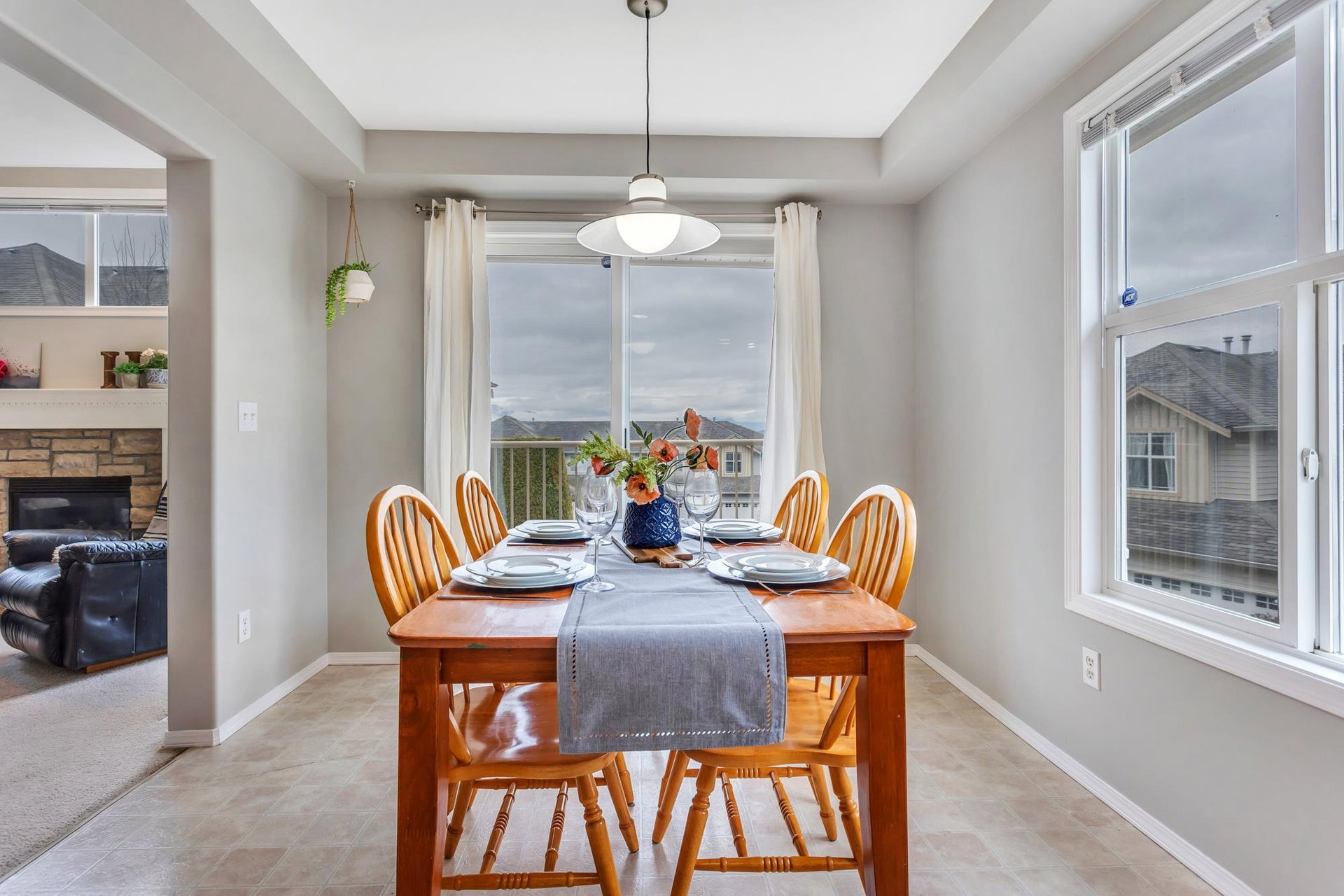 RENOVATED END UNIT! Located in picturesque PROMONTORY, this 2142 sq ft home has been lovingly maintained and updated and awaits a new family! Main floor features beautiful VALLEY VIEWS from the dining & living room, a large living room w/ stone faced fireplace, powder room, & a renovated kitchen w/ SS appliances, modern counters, & new fixtures. Upper floor features 3 LARGE bdrms including the master suite w/ 5 piece ensuite (nice soaker tub & dual vanity!) & walk-in closet. Laundry room on the upper floor too- very convenient! The WALKOUT BSMT is partially finished w/ a rec room, area for 4th bdrm, storage room, roughed in bathroom, & utility area! FULLY FENCED BACKYARD w/ room for a playset! 2022 HWT, dbl garage, & great strata! Quick possession possible- hurry!