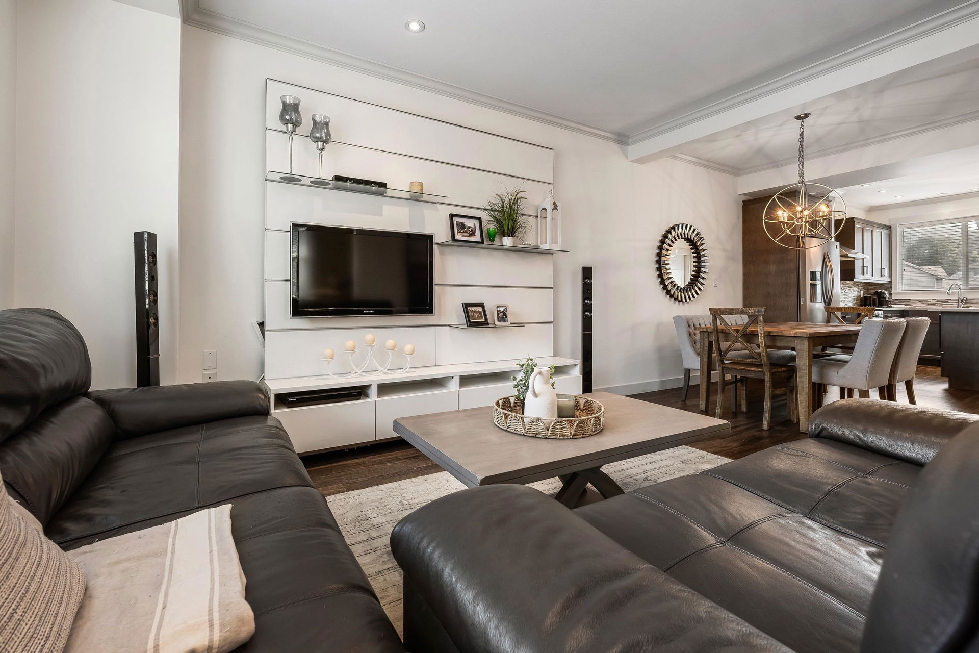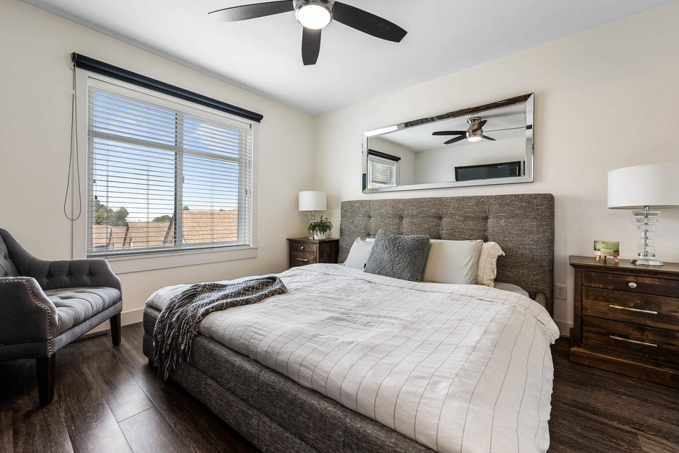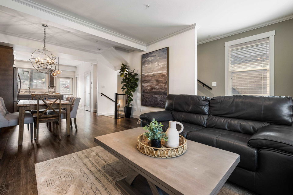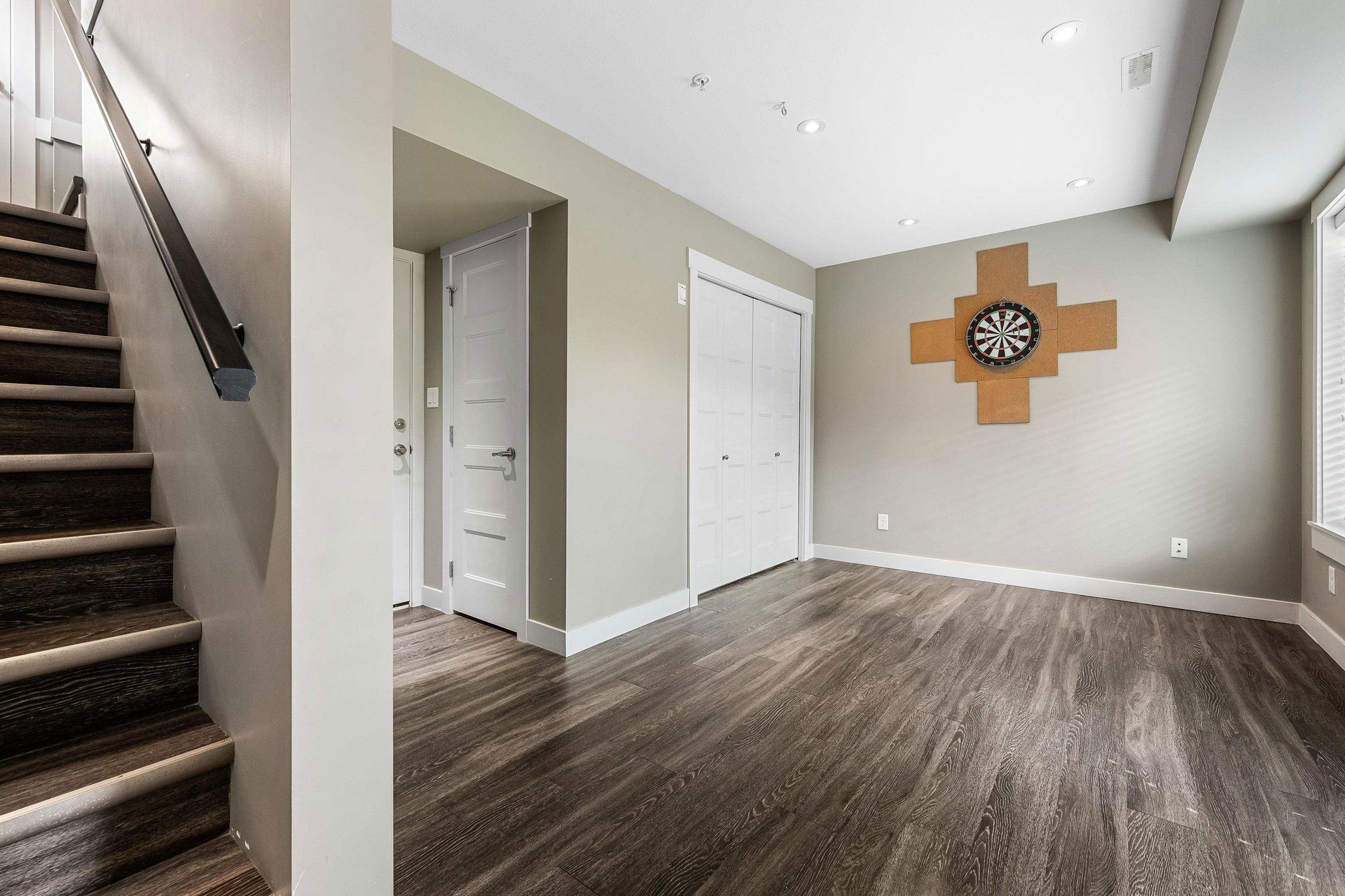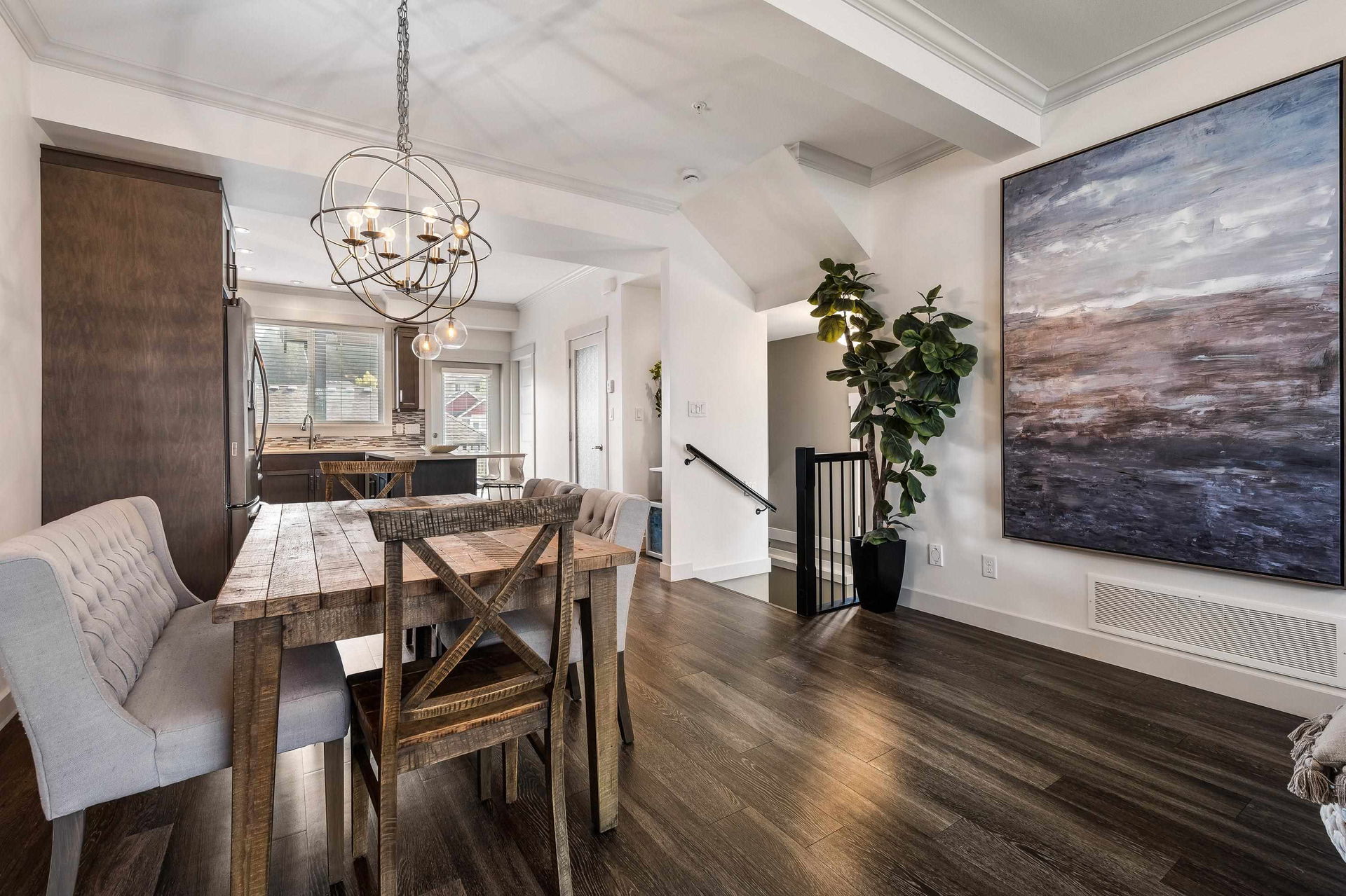 STYLISH END UNIT townhome featuring 3 beds, a versatile rec room, & a DBL GARAGE in THE RIDGE! Located at the base of PROMONTORY, this easily accessible newer complex is one of the areas most sought after developments. Well designed and well built, this 1592 sq ft home SHINES and has been kept in TIP TOP SHAPE. Fabulous location w/ visitor parking beside, a LARGE FENCED YARD for the kids/pets, and VALLEY VIEWS from the back patio. MODERN kitchen w/ SS, quartz, eating bar, & ample storage. Large living room w/ ship lap feature wall & beautiful views. 3 bdrms UP incl primary suite w/ walk-in & stunning ensuite washroom. DAYLIGHT WALKOUT BSMT w/ rec room (can be 4th bdrm) and backyard access. CENTRAL A/C included! Move in ready and fast possession is possible! Hurry- only one available!