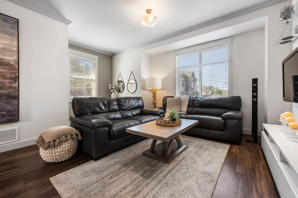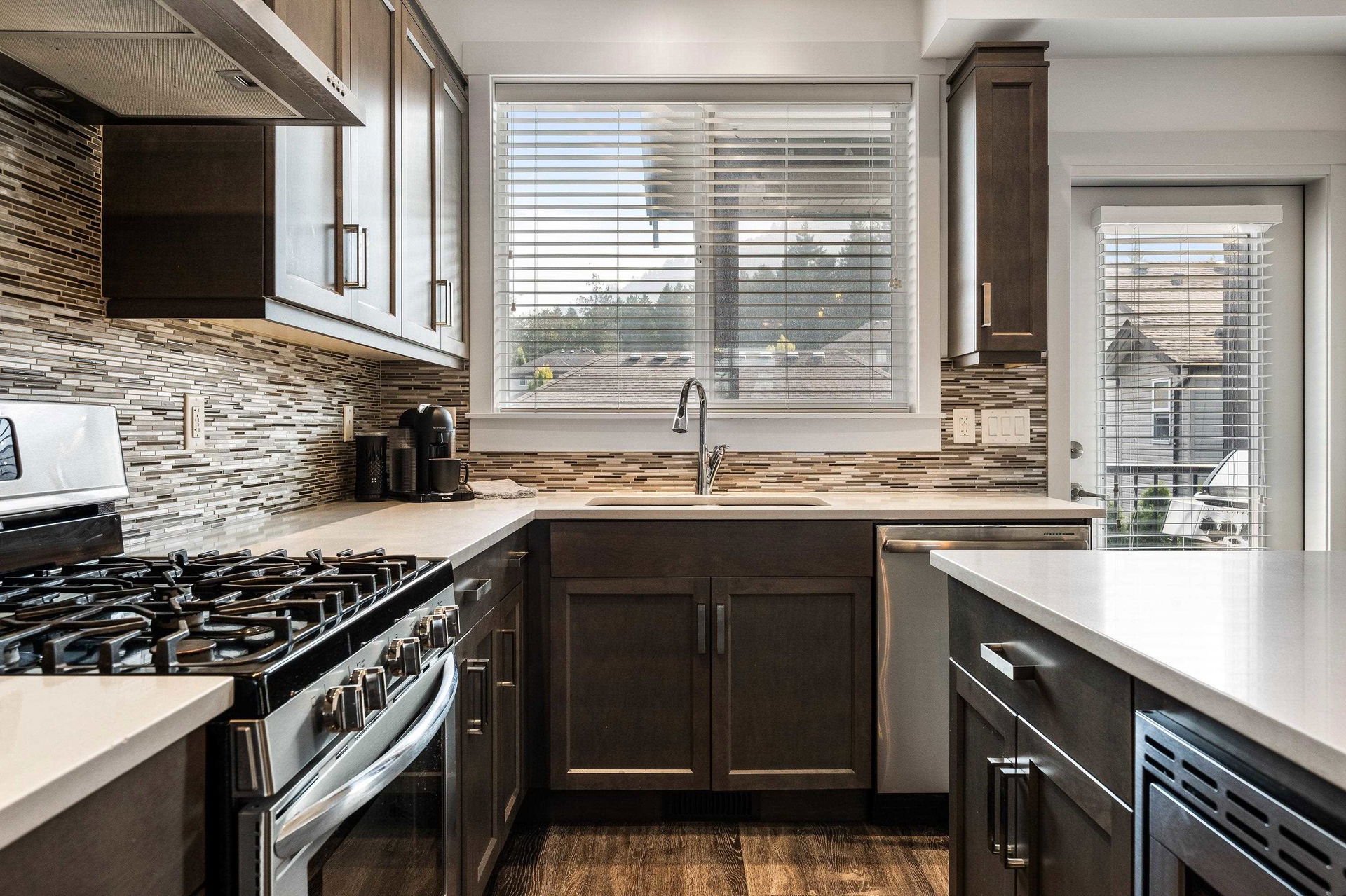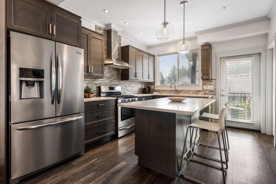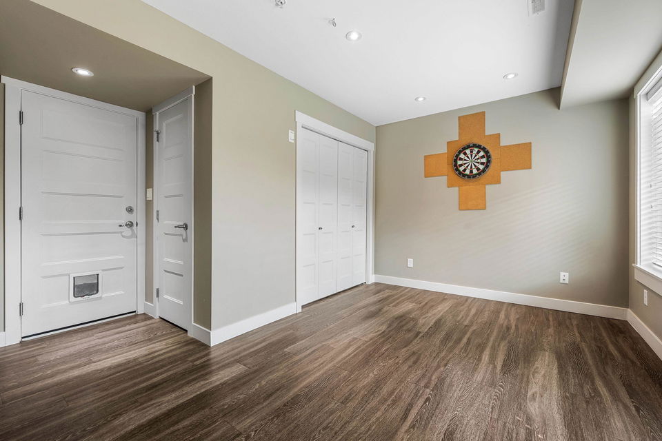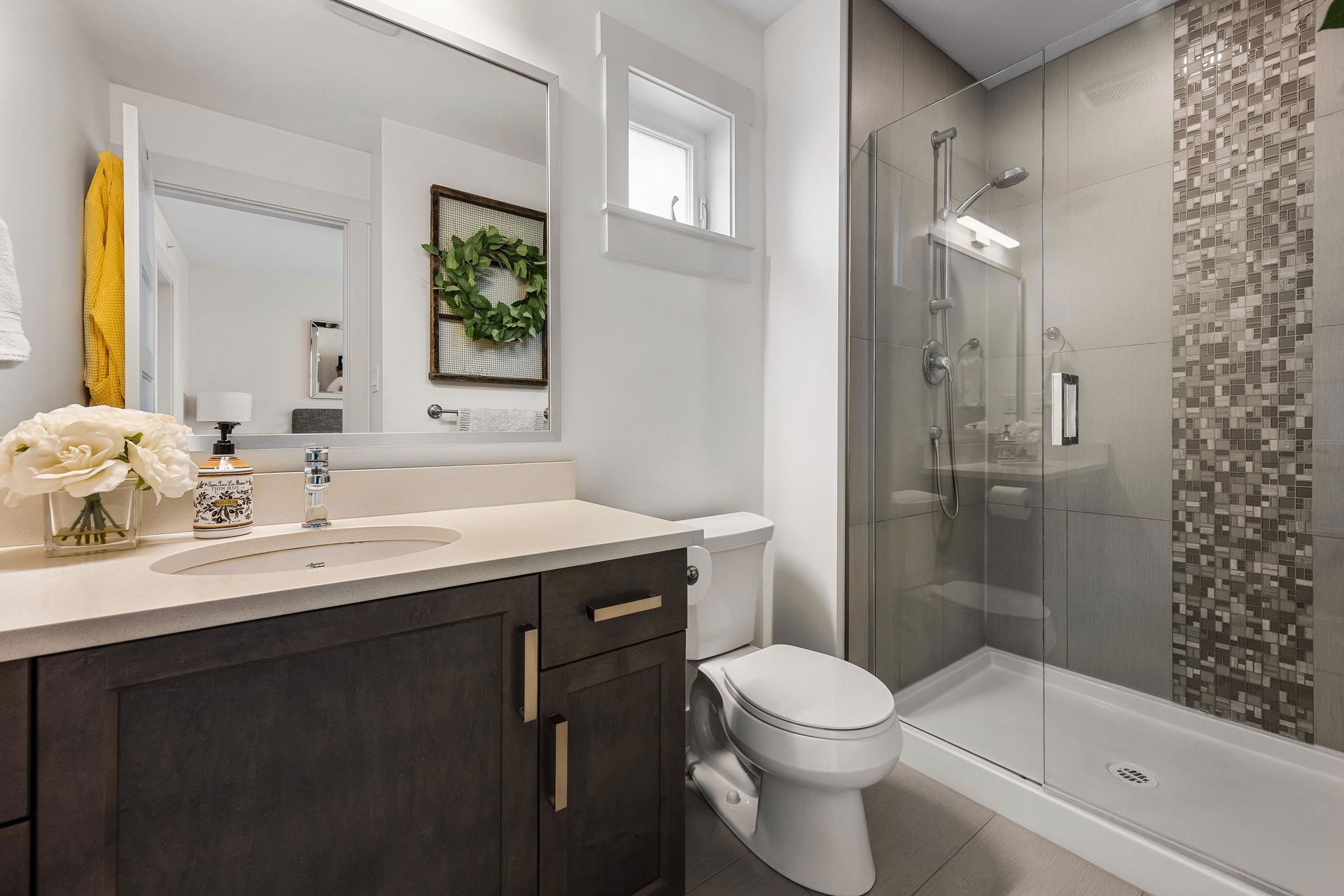 STYLISH END UNIT townhome featuring 3 beds, a versatile rec room, & a DBL GARAGE in THE RIDGE! Located at the base of PROMONTORY, this easily accessible newer complex is one of the areas most sought after developments. Well designed and well built, this 1592 sq ft home SHINES and has been kept in TIP TOP SHAPE. Fabulous location w/ visitor parking beside, a LARGE FENCED YARD for the kids/pets, and VALLEY VIEWS from the back patio. MODERN kitchen w/ SS, quartz, eating bar, & ample storage. Large living room w/ ship lap feature wall & beautiful views. 3 bdrms UP incl primary suite w/ walk-in & stunning ensuite washroom. DAYLIGHT WALKOUT BSMT w/ rec room (can be 4th bdrm) and backyard access. CENTRAL A/C included! Move in ready and fast possession is possible! Hurry- only one available!
