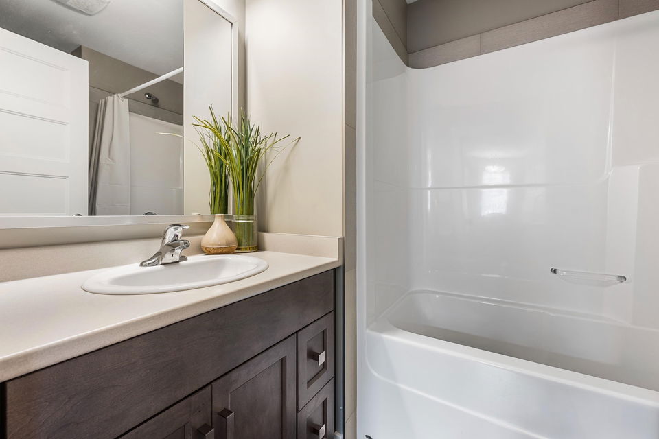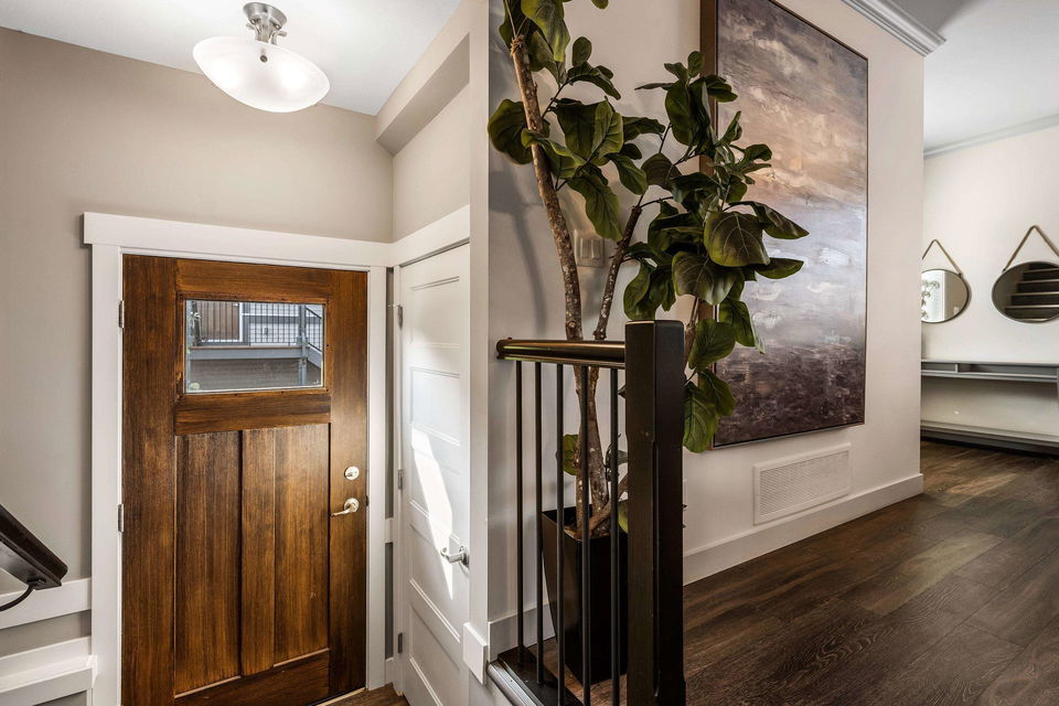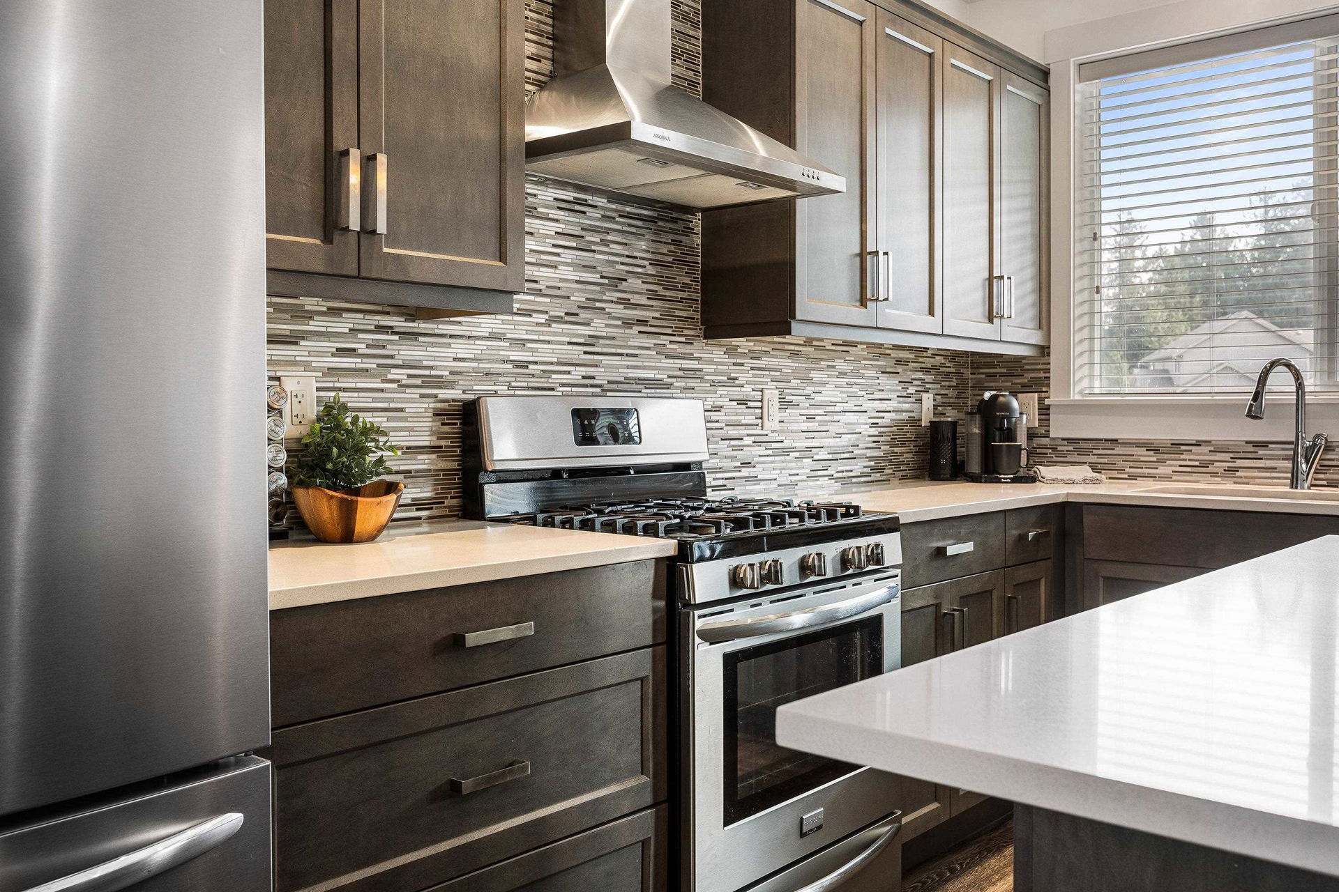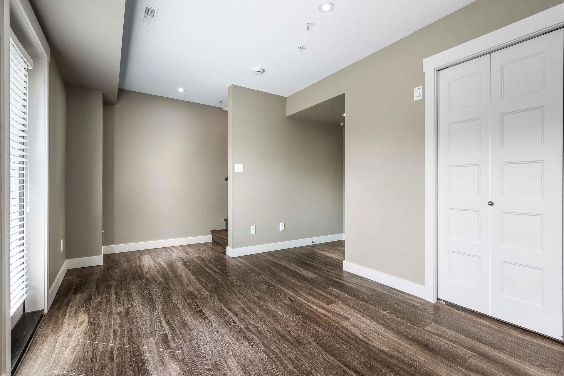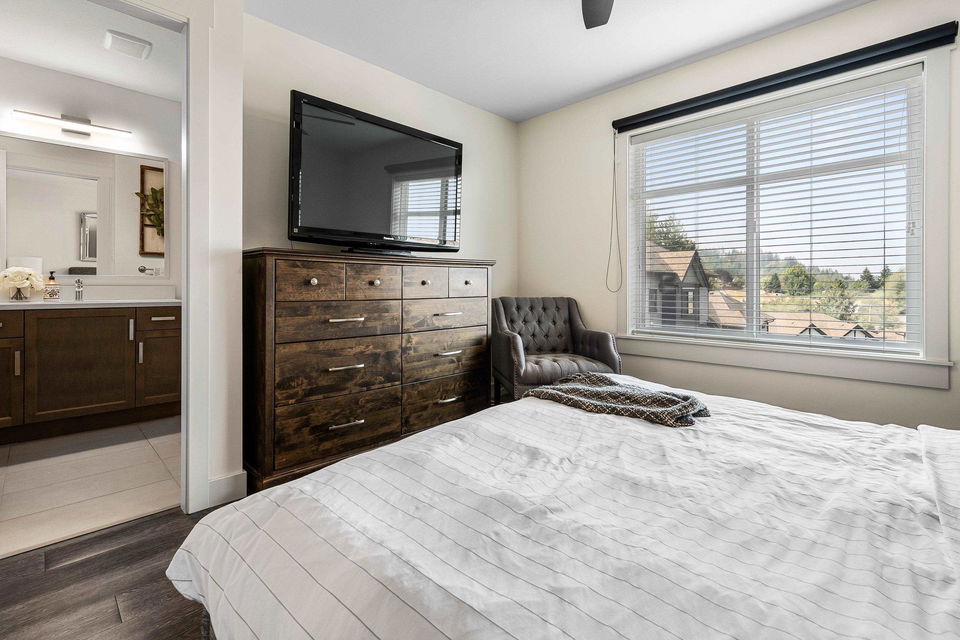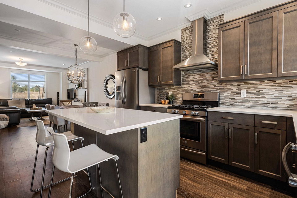 STYLISH END UNIT townhome featuring 3 beds, a versatile rec room, & a DBL GARAGE in THE RIDGE! Located at the base of PROMONTORY, this easily accessible newer complex is one of the areas most sought after developments. Well designed and well built, this 1592 sq ft home SHINES and has been kept in TIP TOP SHAPE. Fabulous location w/ visitor parking beside, a LARGE FENCED YARD for the kids/pets, and VALLEY VIEWS from the back patio. MODERN kitchen w/ SS, quartz, eating bar, & ample storage. Large living room w/ ship lap feature wall & beautiful views. 3 bdrms UP incl primary suite w/ walk-in & stunning ensuite washroom. DAYLIGHT WALKOUT BSMT w/ rec room (can be 4th bdrm) and backyard access. CENTRAL A/C included! Move in ready and fast possession is possible! Hurry- only one available!