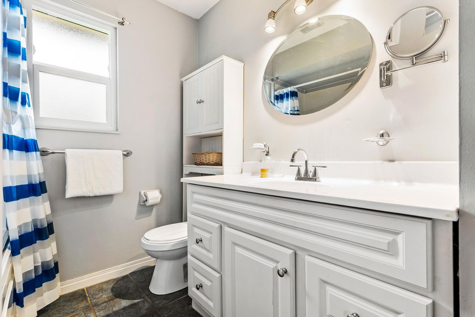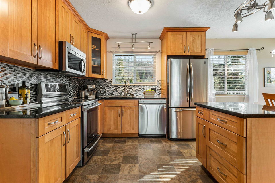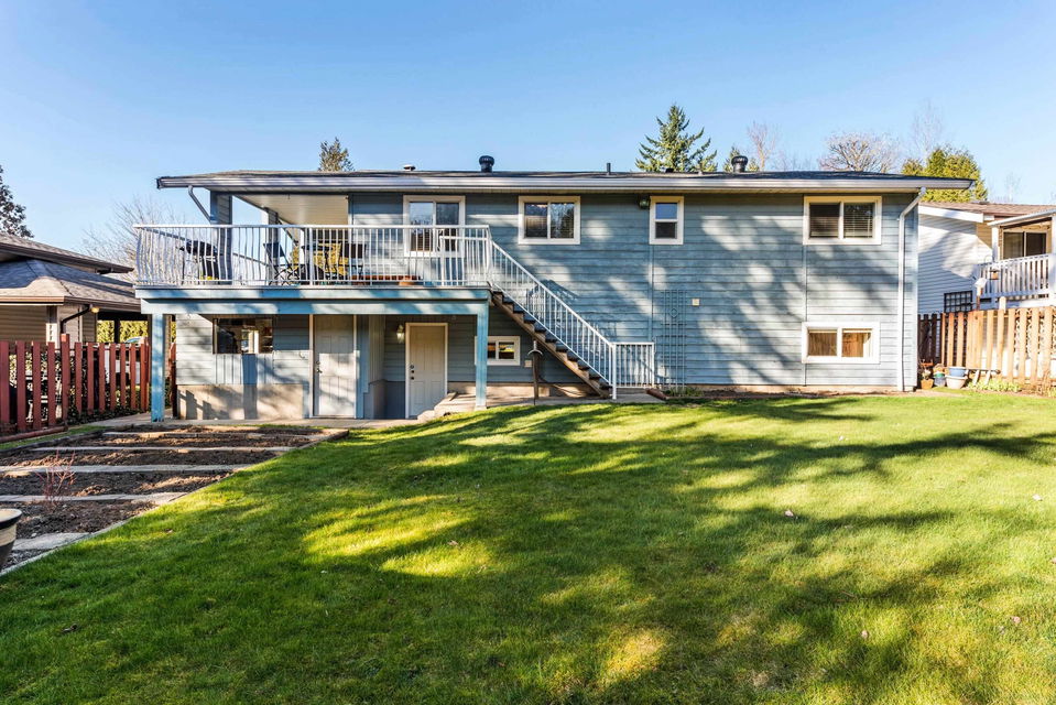 FANTASTIC NEIGHBORHOOD! Located in the beautiful catchments for Prince Charles Elementary & Robert Bateman Secondary, this charming 4 bdmr & 2 bath home awaits! Renovated main floor w/ open concept kitchen featuring quartz counters, shaker cabinets, & SS appliances. HUGE entertainers deck off the dining area to enjoy year round. Step out back to the beautiful FENCED BACKAYRD w/ garden area & storage shed. Vinyl windows 2010, 2017 asphalt roof, upgraded HWT, new kitchen 2012, & new decking 2019. Finished bsmt w/ wet bar kitchette, 2 bdrms, laundry area, & full bathroom. Great space for the teens, man cave, or inlaws! Single car garage, double driveway, & quiet WIDE streets for ample guest parking. We welcome offers and they’ll be reviewed as presented!