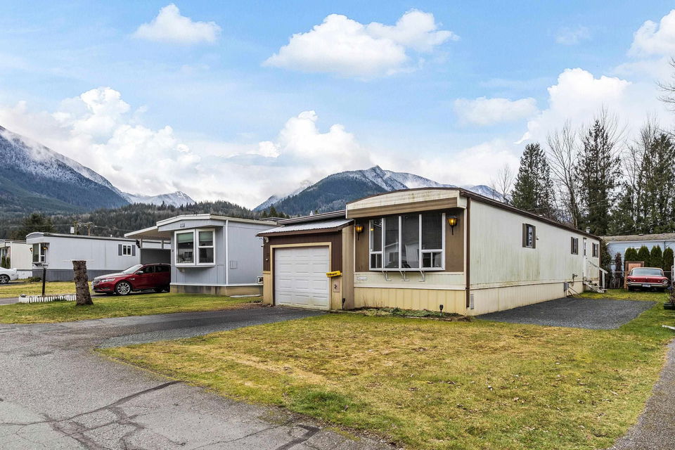 Nestled in picturesque Chilliwack River, this 2 Bed 1 Bath home offers the perfect blend of PEACE & outdoor adventure, with NATURE and world class FISHING right at your doorstep. While the mobile home offers a comfortable living space, it also presents an EXCITING OPPORTUNITY for renovations & customization. The spacious GARAGE/WORKSHOP, provides ample STORAGE SPACE or the perfect setup for hobbyists. Spend your days relaxing on your deck & enjoying the views of the surrounding mountains. This is your opportunity to escape to nature while still having local gems like GARRISON CROSSING, The Eddy & CULTUS LAKE just a short drive away! 19+ community & ONE small pet allowed w/ approval!