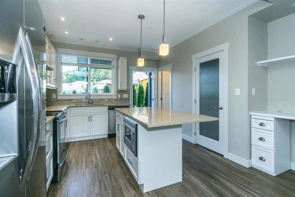 Fabulous DEAL @ The Ridge! This nearly new 3 level townhome features HIGH END finishes and is VACANT and move-in ready! Open concept main level with modern indestructible vinyl plank flooring, white shaker soft close cabinets, tiled backsplash, stainless steel appliances, & built in desk nook! Step right out the kitchen to your cute fenced yard w/ covered patio area for year round BBQ enjoyment. THREE bedrooms upstairs and master has a private ensuite w/ walk in shower PLUS a walk in closet. Fully finished bsmt area w/ rec room- great for media room or kids play area! LARGE single car garage and full driveway for secondary vehicle/truck. Low $212 per month strata fees! Pets and rentals welcome- don’t miss out!