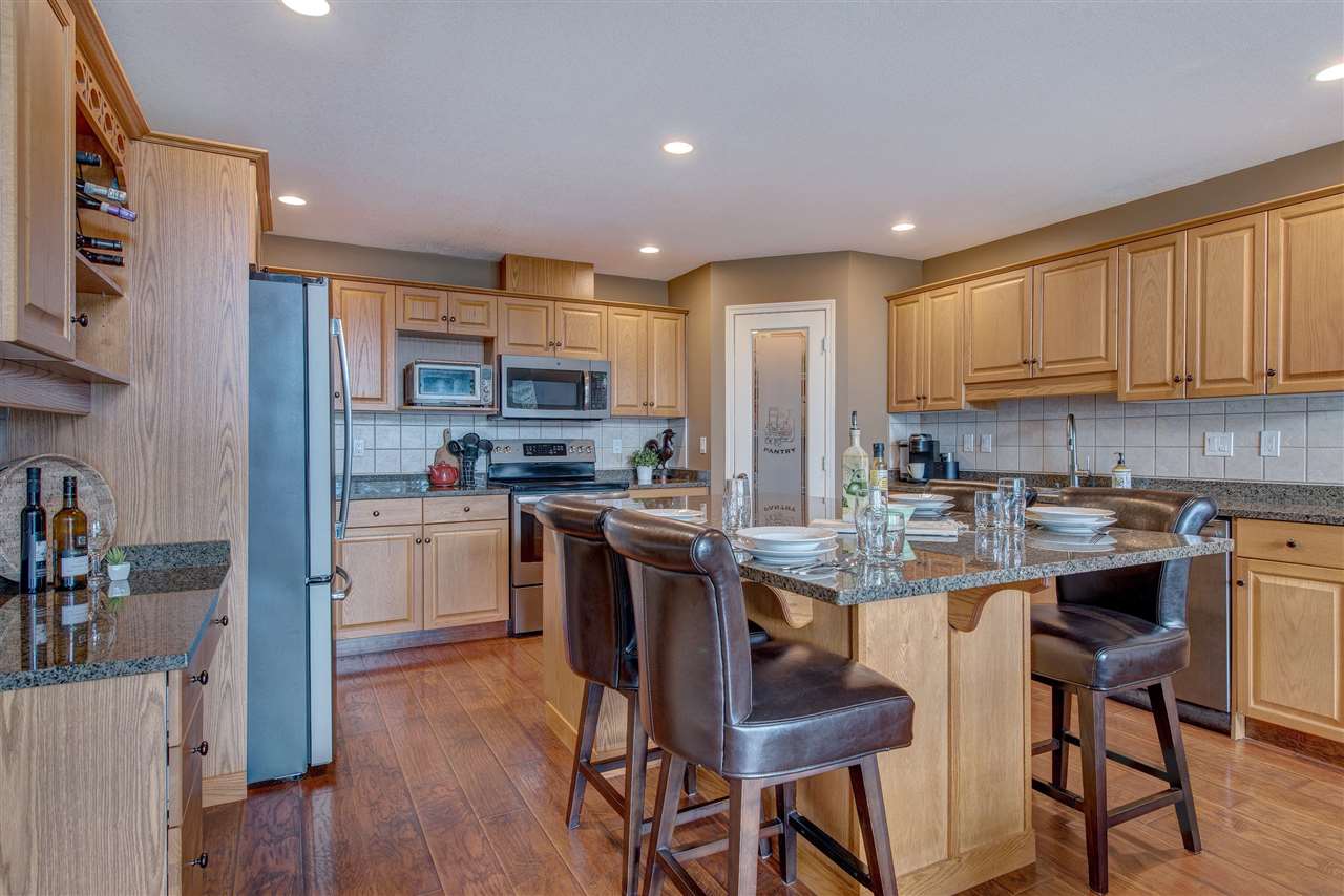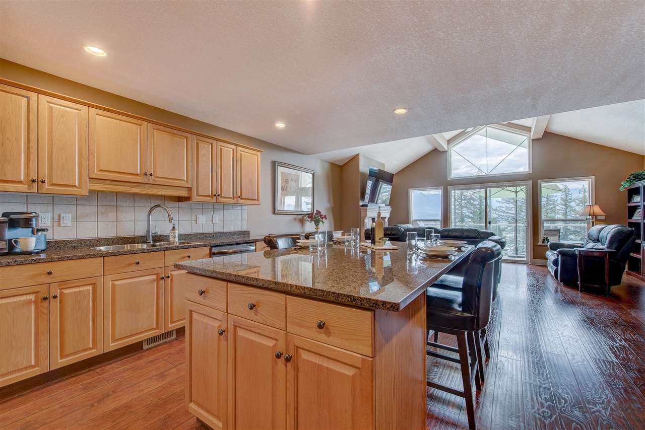 Million Dollar Views! This stunning 3319 sq ft 3 bdrm plus den RANCHER w walkout bsmt is the place you’ll want to call home. Level entry main floor with vaulted ceilings, tall picture windows, updated laminate flooring, and modern paint colors. Supersized kitchen w/ entertainers island, granite countertops, and updated SS appliances. Grand master suite w/ walk in closet, full en-suite, and private patio access to the HUGE covered VIEW PATIO. Full finished bsmt w/ 13’ ceilings, in-law kitchen, rec room w/ pool table, gas fireplace, spacious bdrm, den, & full bathroom. Wow! Add on dbl car garage, AC Heat Pump system, b.i vac, & more! Rare find here. Excellent location near green space & visitors parking. RV parking available, gated community, & nice clubhouse.