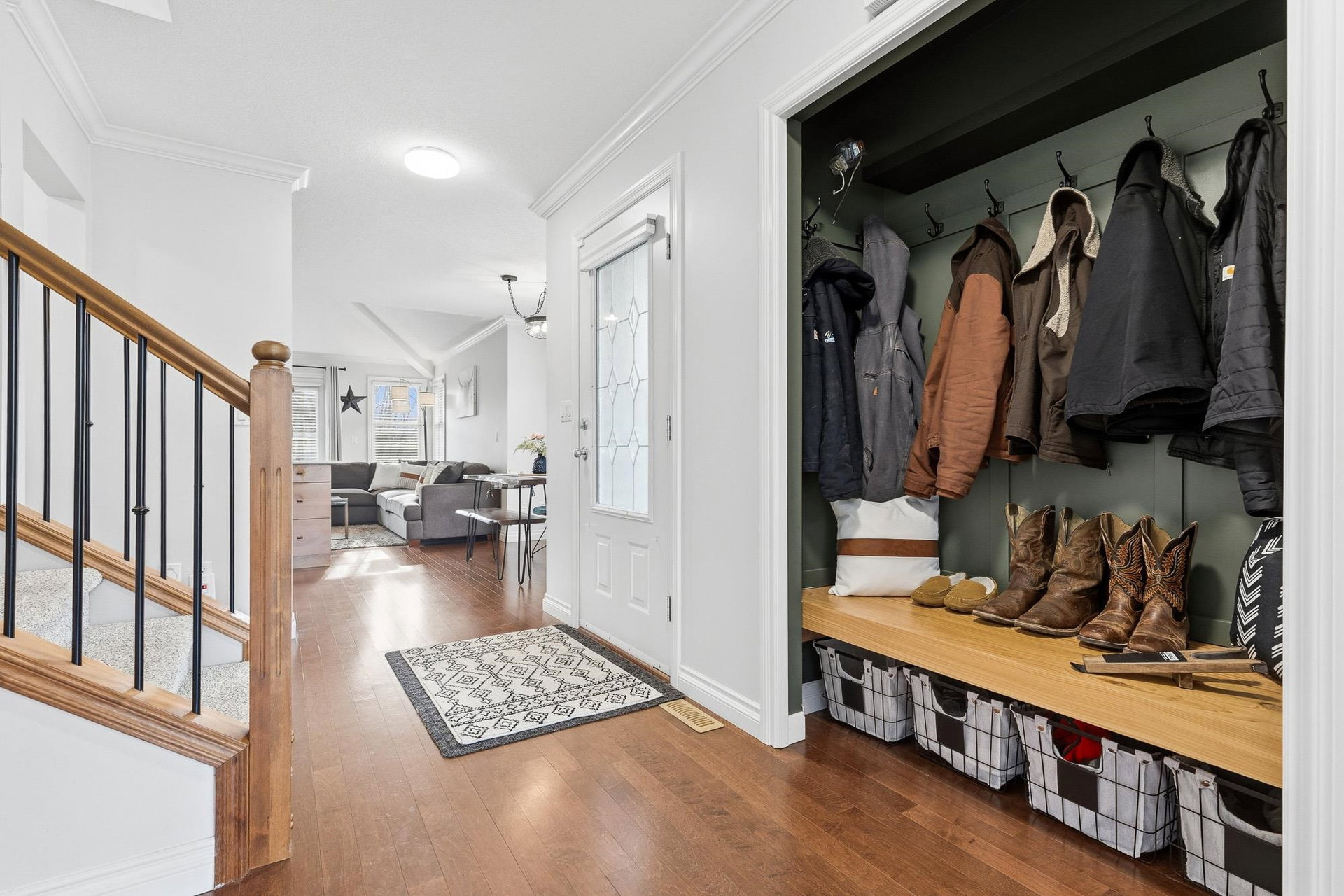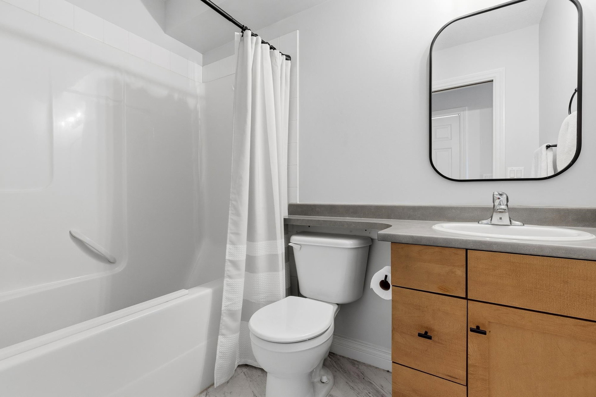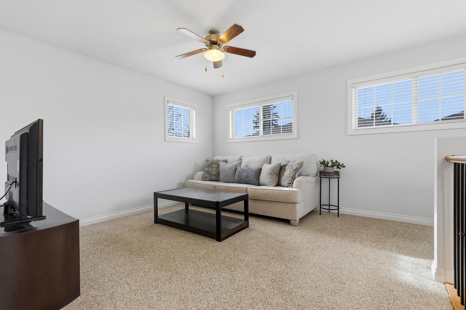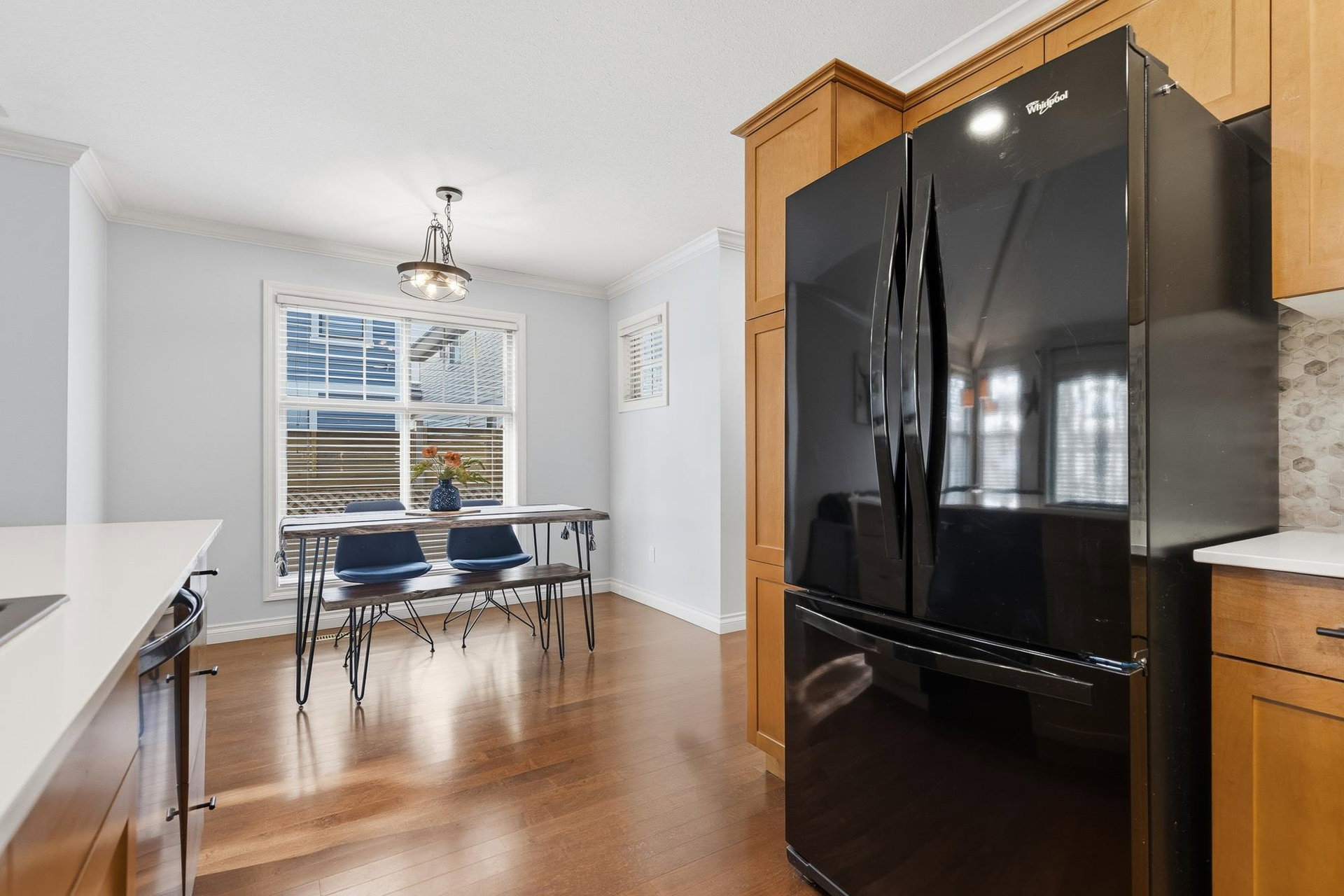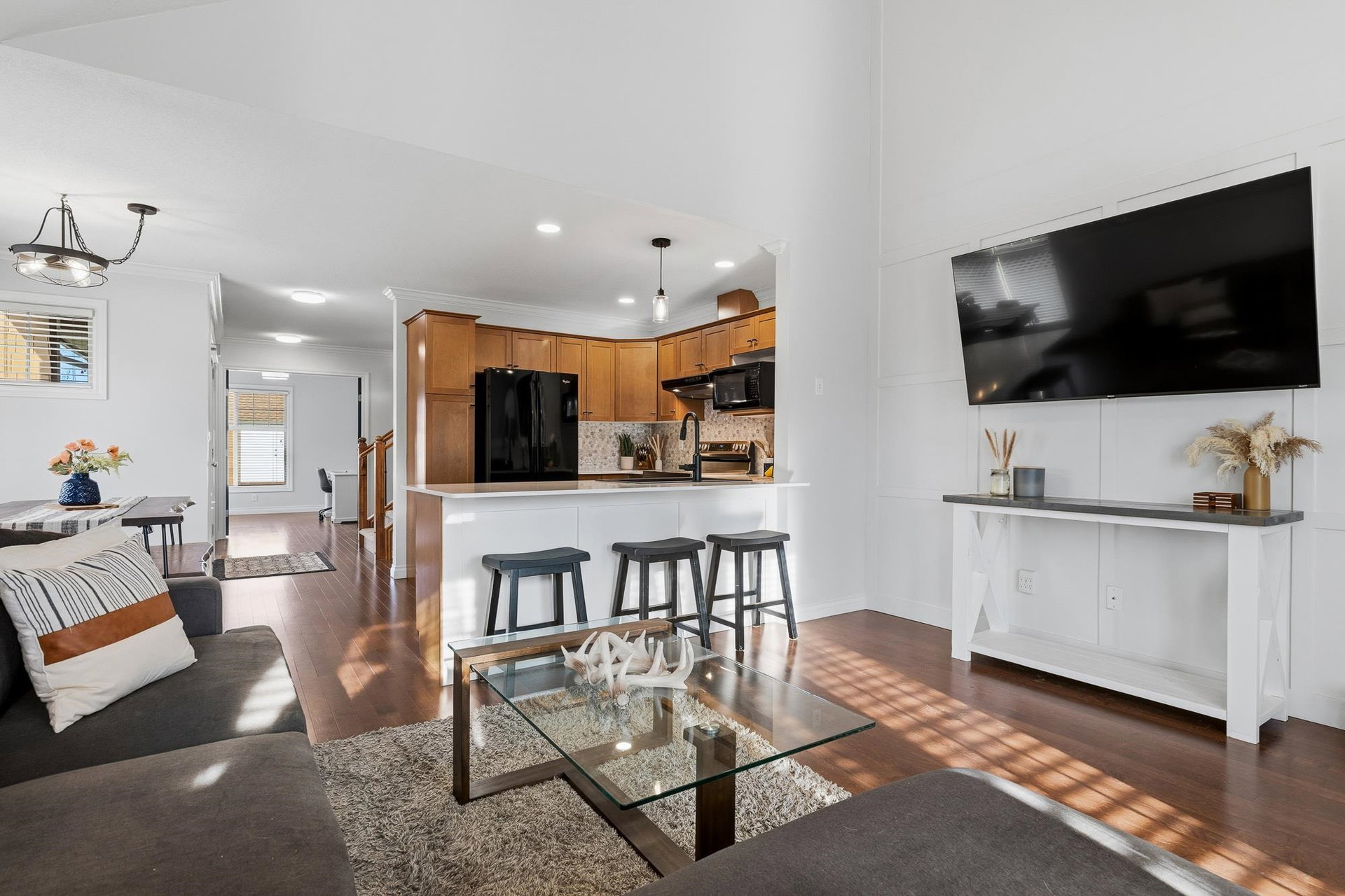 UPDATED MASTER ON MAIN END UNIT townhome backing onto BONNY PARK on QUIET Riverside Drive! All living on ONE LEVEL with an updated KITCHEN (new Quartz C/Tops, Backsplash & Fixtures!), Hardwood floors, Modernized N/G Fireplace all with Sunny SOUTHERN exposure bringing in NATURAL LIGHT! Main floor Primary bedroom featuring a spacious walk in closet + 4 piece ensuite, supported by a second bedroom or Den option for a home office or visitors. Upstairs has a large loft/living area with another 2 beds & FULL bathroom. Recent updates include CUSTOM wainscotting + NEW AC Unit! Great parking available with large Double garage, full length driveway & abundance of visitor parking in this sleepy 9 unit complex. Low density neighbourhood, fantastic access back to District 1881, amenities + HWY 1!
