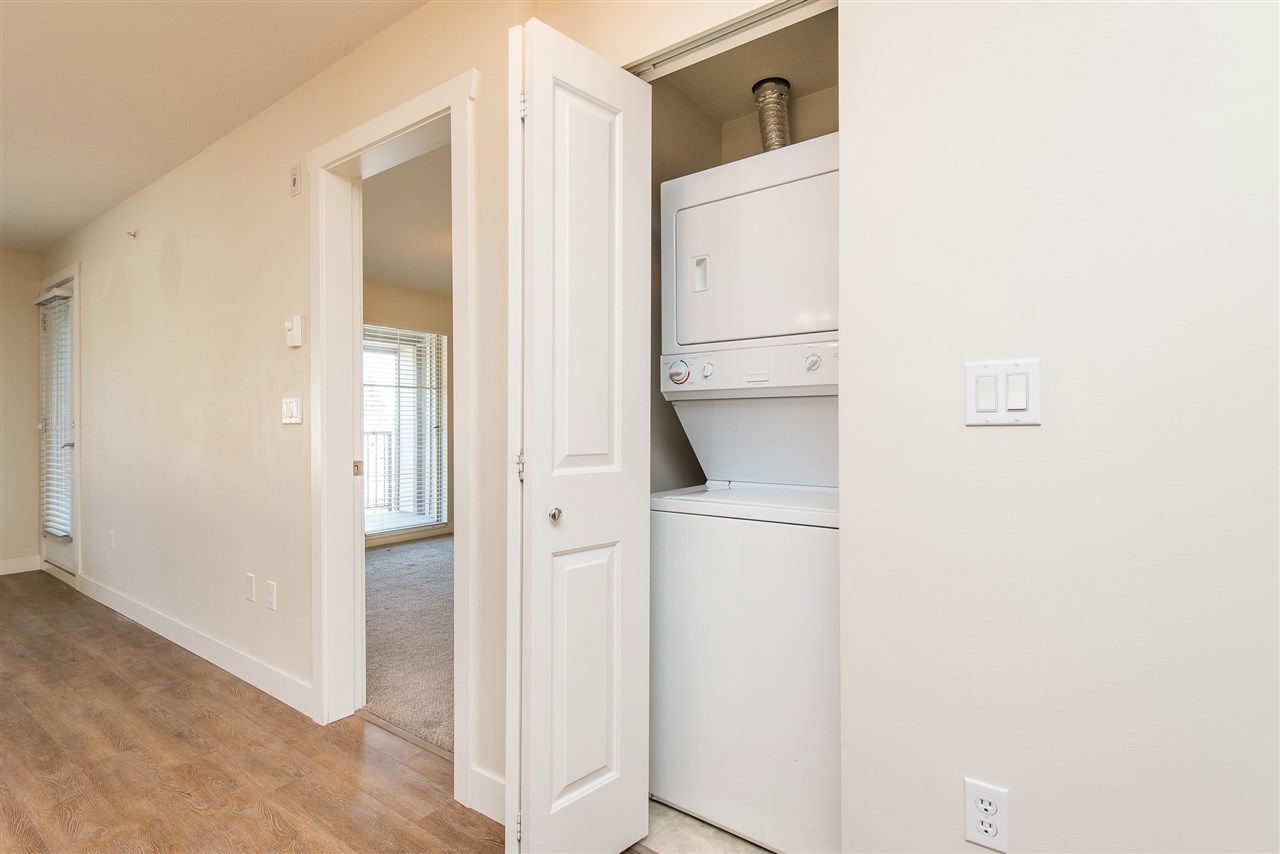 TOP FLOOR RENOVATED RENTABLE CONDO! Great opportunity here for investors and first time buyers! This highly desirable location in a quiet building overlooks the courtyard w/ mountain views. The TOP FLOOR location provides for less noise & more enjoyment w/ only one neighbouring unit! Master bdrm w/ walk-through closet & access to the main bathroom (cheater ensuite). 2nd bedroom doesn’t have a closet and can double as an office if desired. Updated flooring, new stove & garburator. In-suite laundry, elevator, & secure underground parking. Steps to transit, 3 blocks from HWY #1 for commuting, & only 5 minutes to UFV or the PTRC. Call for a tour and MOVE IN FAST- immediate possession! This condo is a winner!