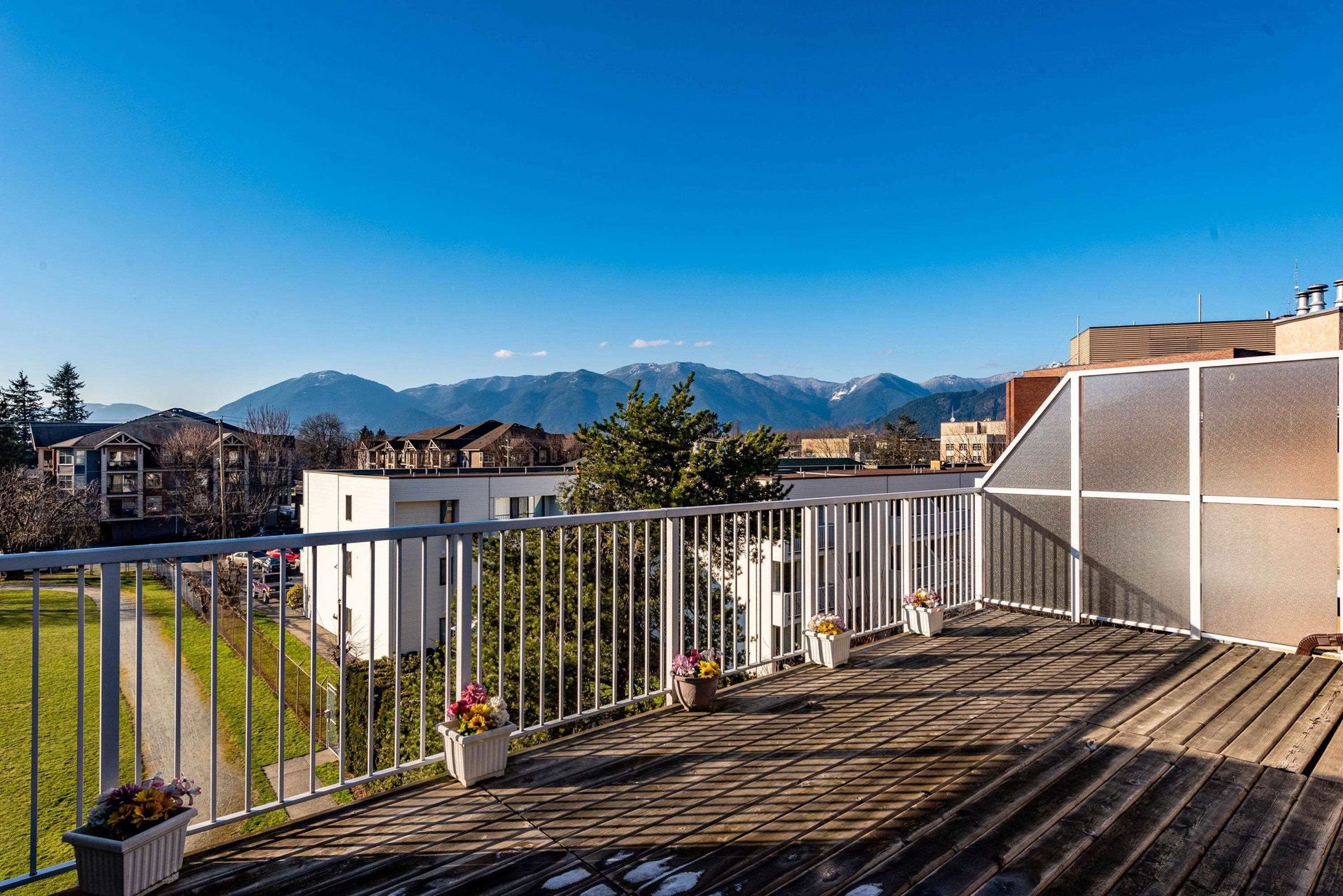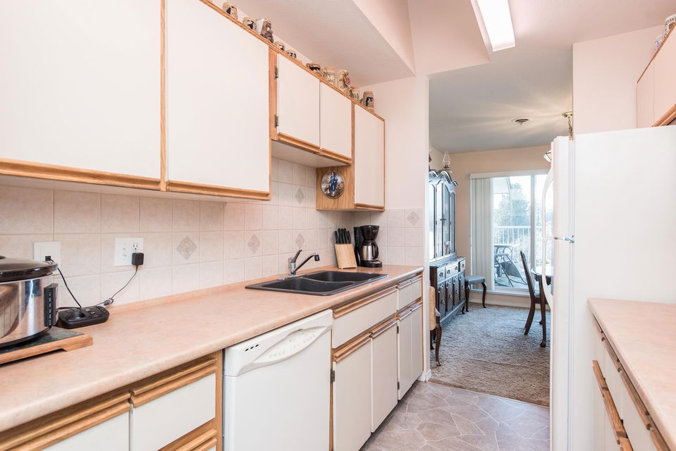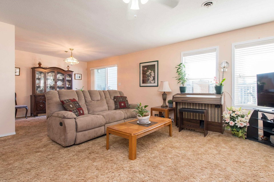 PENTHOUSE SUITE @ Hazelmere! RARE FIND, this 1447 sq ft 2 bdrm & 2 bathrooms CORNER SUITE is the premier condo in this sought after 45+ age restricted building. Backing onto a protected field w/ sunset views over the mountains, extreme PRIVACY is what you have. Walking distance to all amenities such as shopping, doctors, & the Cultural Center. Live large in this spacious layout featuring CENTRAL AIR CONDITIONING (only 1 in the building), oversized living room w/ gas fireplace, & generous sized master w/ private ensuite washroom. 16×24 patio to enjoy the views, beautiful afternoons, & room for the veggies & flowers! This building has undergone multiple renovations w/ vinyl windows, updated roof, common areas- wonderful! No rentals + no pets. Fabulous strata! Your PENTHOUSE awaits!
