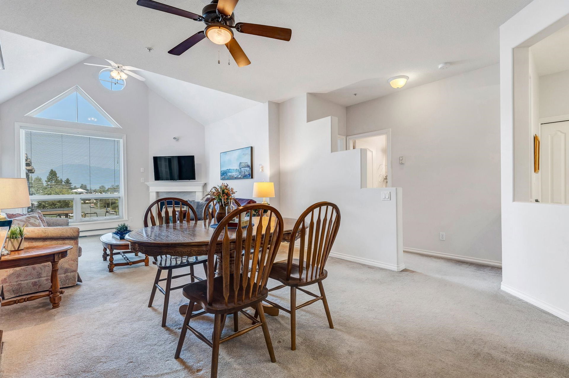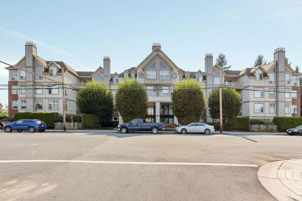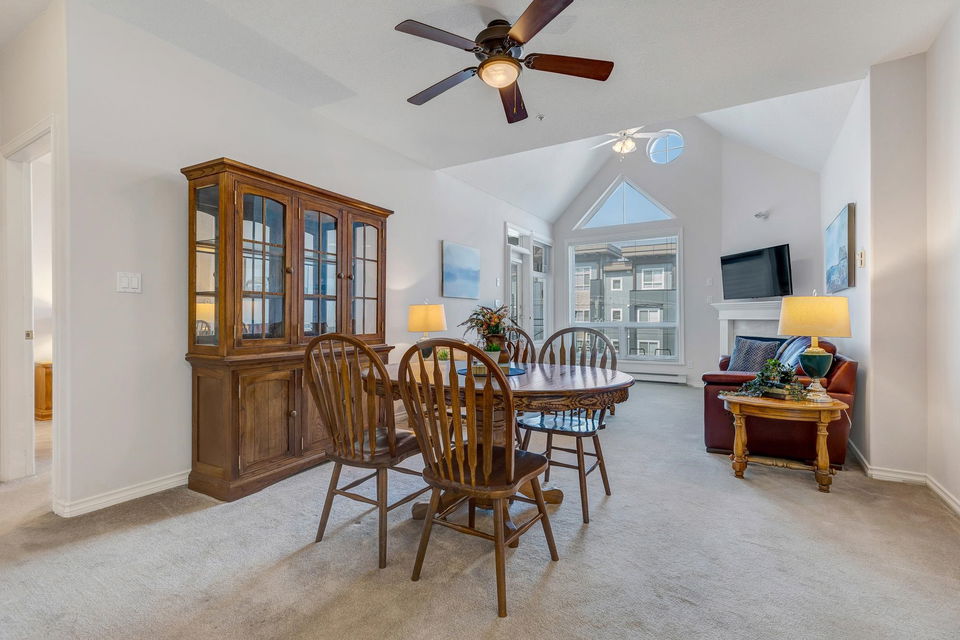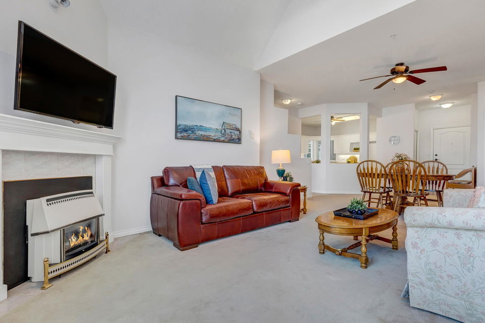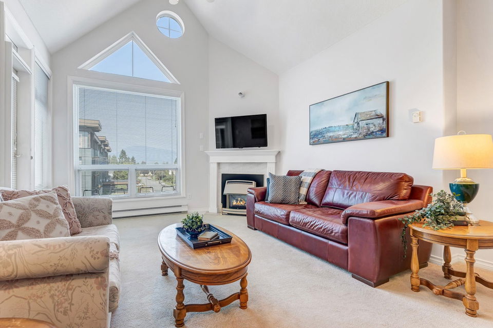 TOP FLOOR PENTHOUSE @ The Devonshire! Fabulous 2 bedroom and 2 bathroom condo in walking distance to the trendy DISTRICT 1881 with ample shops and restaurants. This building backs onto a park and is blocks from the Chilliwack Cultural Center, the Landing Leisure Center, Chilliwack curling club, pickleball courts- you name it! Step inside this PENTHOUSE unit and be amazed at the 12′ vaulted ceilings, abundance of natural light, and great layout. Large rooms, spacious kitchen, & primary suite w/ dual closets & ensuite washroom. Well maintained home ready for your decorating touches! This building features underground parking, amenities, a guest suite, & is very well managed. 2 small pets allowed up to 15 lbs each and all ages welcome.