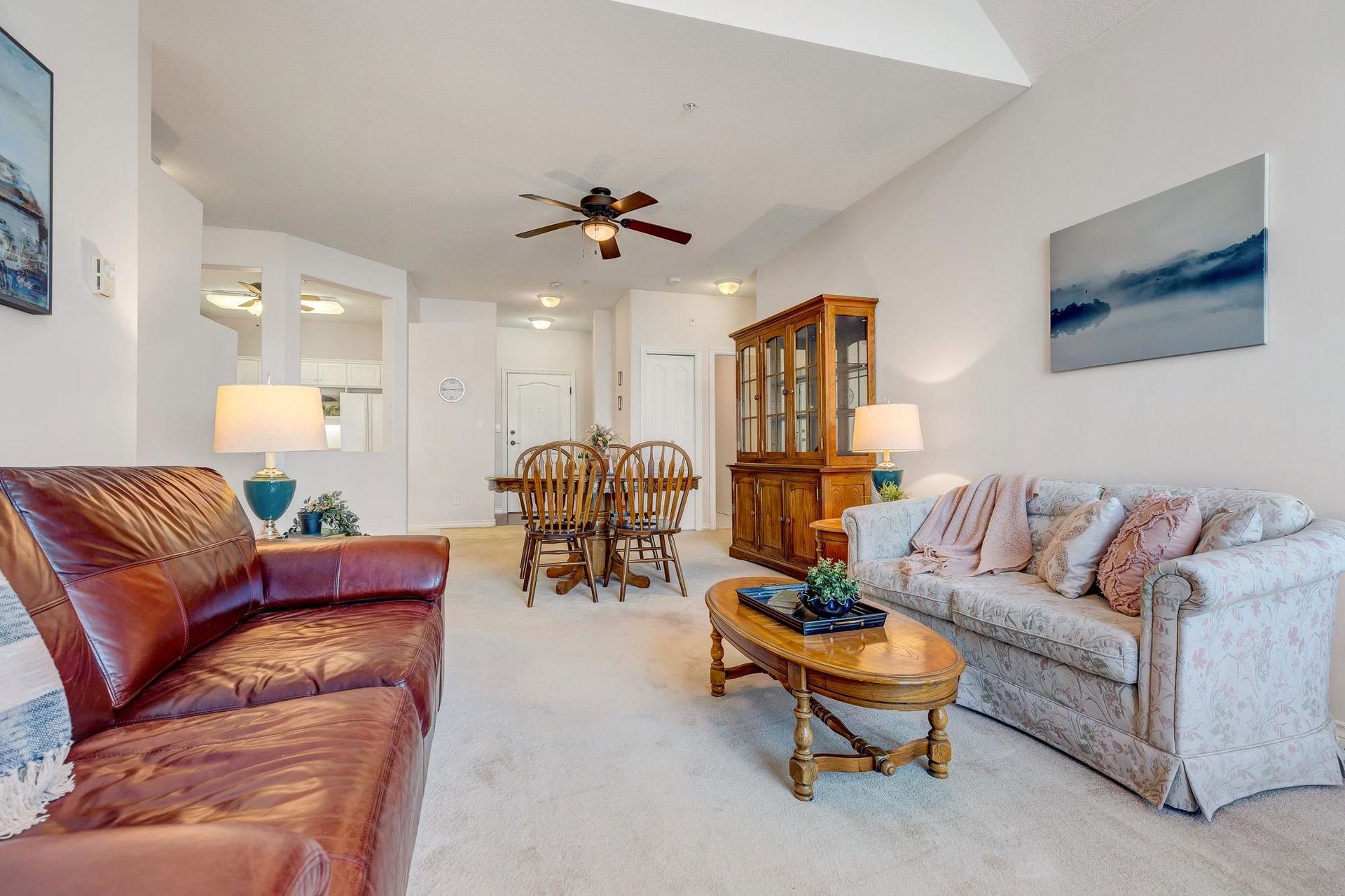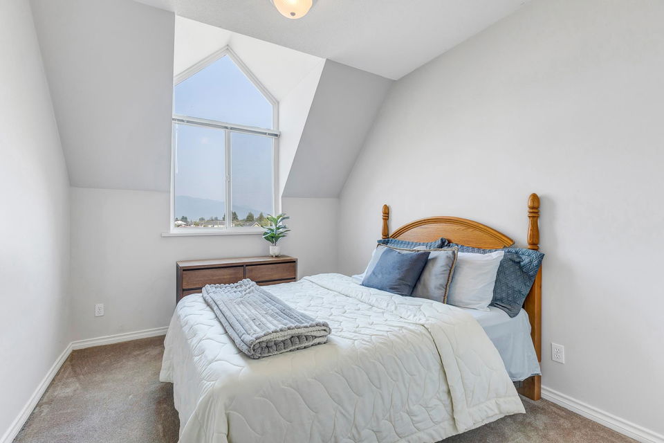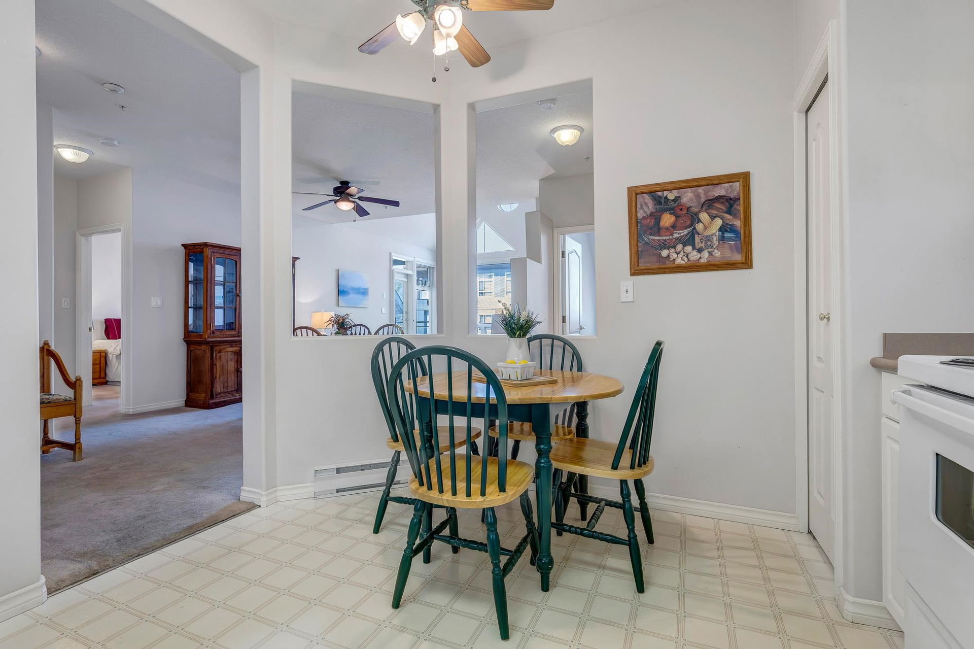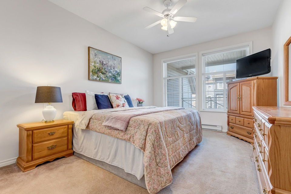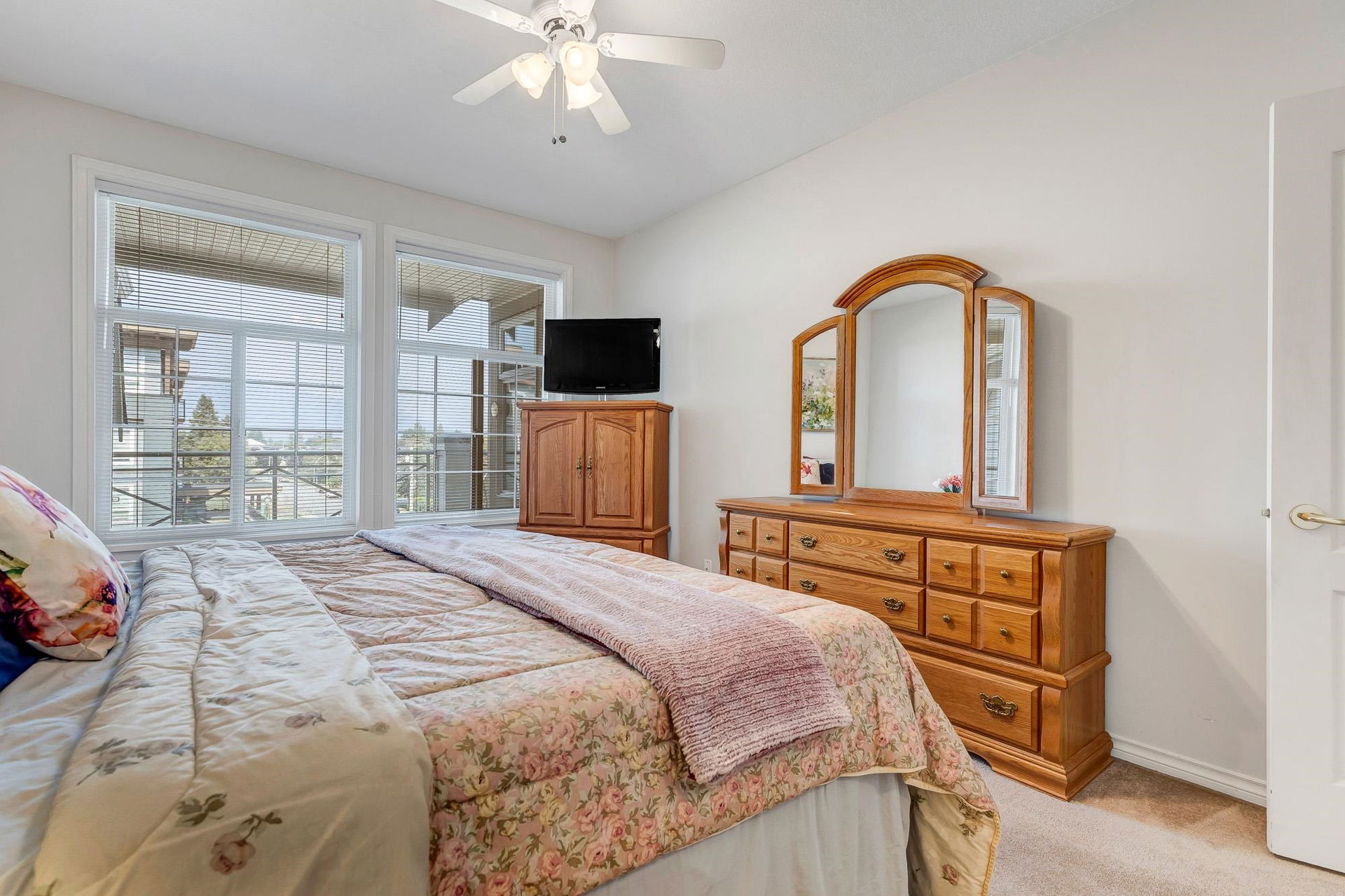 TOP FLOOR PENTHOUSE @ The Devonshire! Fabulous 2 bedroom and 2 bathroom condo in walking distance to the trendy DISTRICT 1881 with ample shops and restaurants. This building backs onto a park and is blocks from the Chilliwack Cultural Center, the Landing Leisure Center, Chilliwack curling club, pickleball courts- you name it! Step inside this PENTHOUSE unit and be amazed at the 12′ vaulted ceilings, abundance of natural light, and great layout. Large rooms, spacious kitchen, & primary suite w/ dual closets & ensuite washroom. Well maintained home ready for your decorating touches! This building features underground parking, amenities, a guest suite, & is very well managed. 2 small pets allowed up to 15 lbs each and all ages welcome.