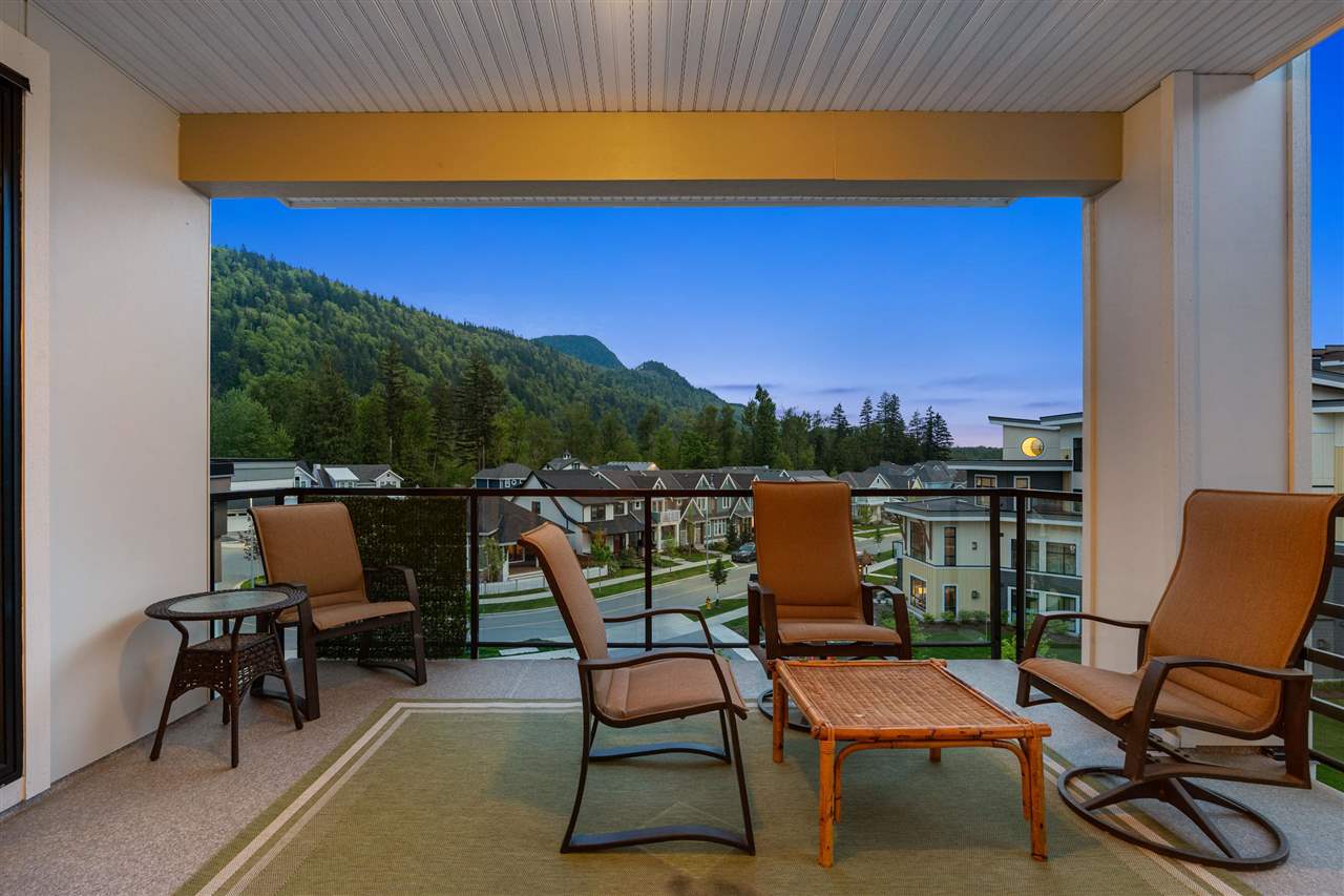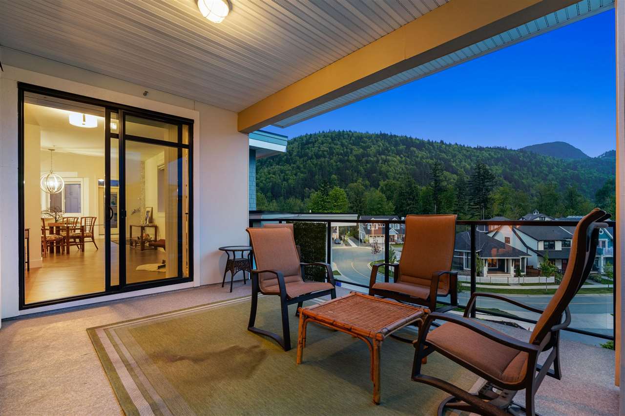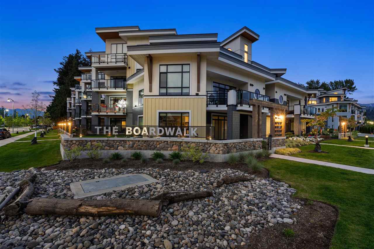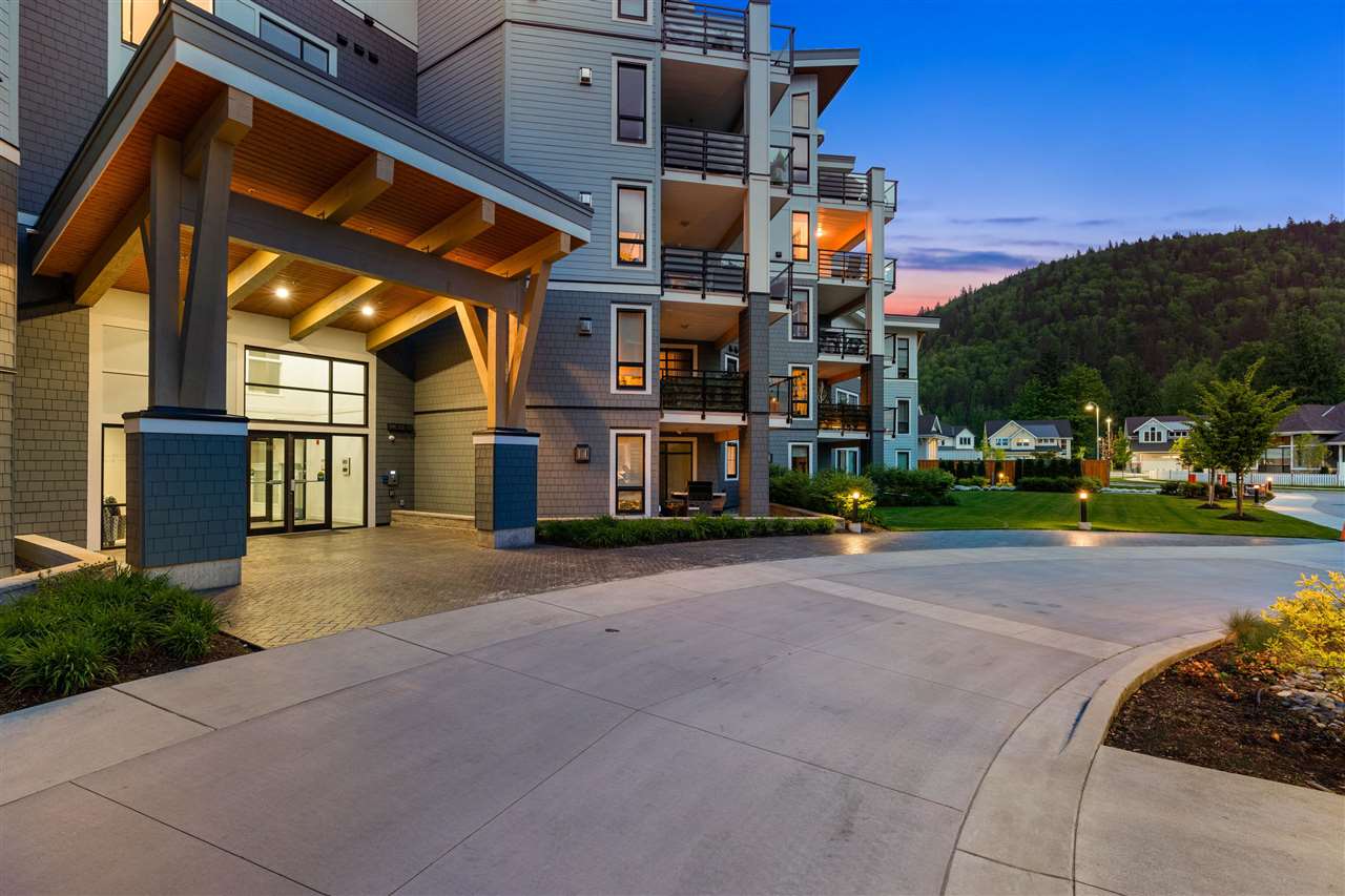 Tranquility & Elegance @ it’s FINEST- the “BOARDWALK” at River’s Edge is the place to call your next HOME. Steps to the Vedder River Trail & located on an incredible SOUTHWEST CORNER, this location cannot be beat. Sitting at over 1841 sq ft, this 2 bdrm & den feels GRAND & is designed for ENTERTAINMENT & optimal mountain & river views. Stunning kitchen w/ high end appliances incl GAS RANGE, maple cabinetry, designer quartz counters, & a large w.i pantry. Luxurious master suite w/ 5 piece ensuite w/ heated tile floors & freestanding tub. Vaulted great room w/ gorgeous floor to ceiling rock fireplace. 2 PATIOS, 2 PARKING STALLS, & a large storage unit. This corner suite is for the most discerning of buyers- you won’t want to leave! View at https://vimeo.com/544762812