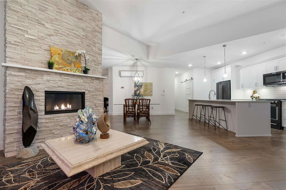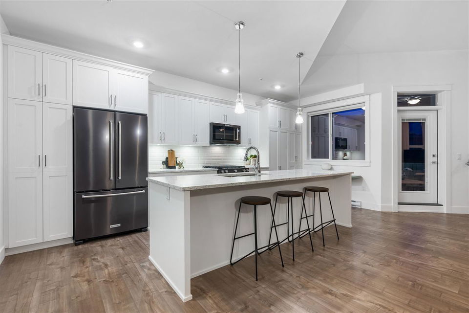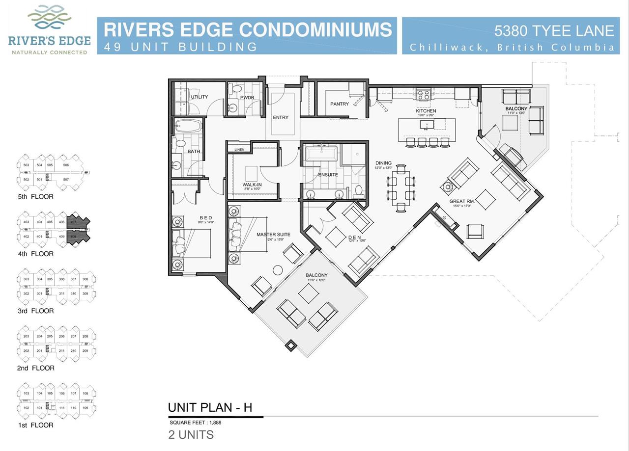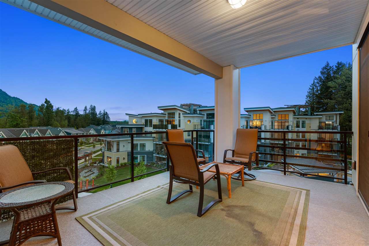 Tranquility & Elegance @ it’s FINEST- the “BOARDWALK” at River’s Edge is the place to call your next HOME. Steps to the Vedder River Trail & located on an incredible SOUTHWEST CORNER, this location cannot be beat. Sitting at over 1841 sq ft, this 2 bdrm & den feels GRAND & is designed for ENTERTAINMENT & optimal mountain & river views. Stunning kitchen w/ high end appliances incl GAS RANGE, maple cabinetry, designer quartz counters, & a large w.i pantry. Luxurious master suite w/ 5 piece ensuite w/ heated tile floors & freestanding tub. Vaulted great room w/ gorgeous floor to ceiling rock fireplace. 2 PATIOS, 2 PARKING STALLS, & a large storage unit. This corner suite is for the most discerning of buyers- you won’t want to leave! View at https://vimeo.com/544762812