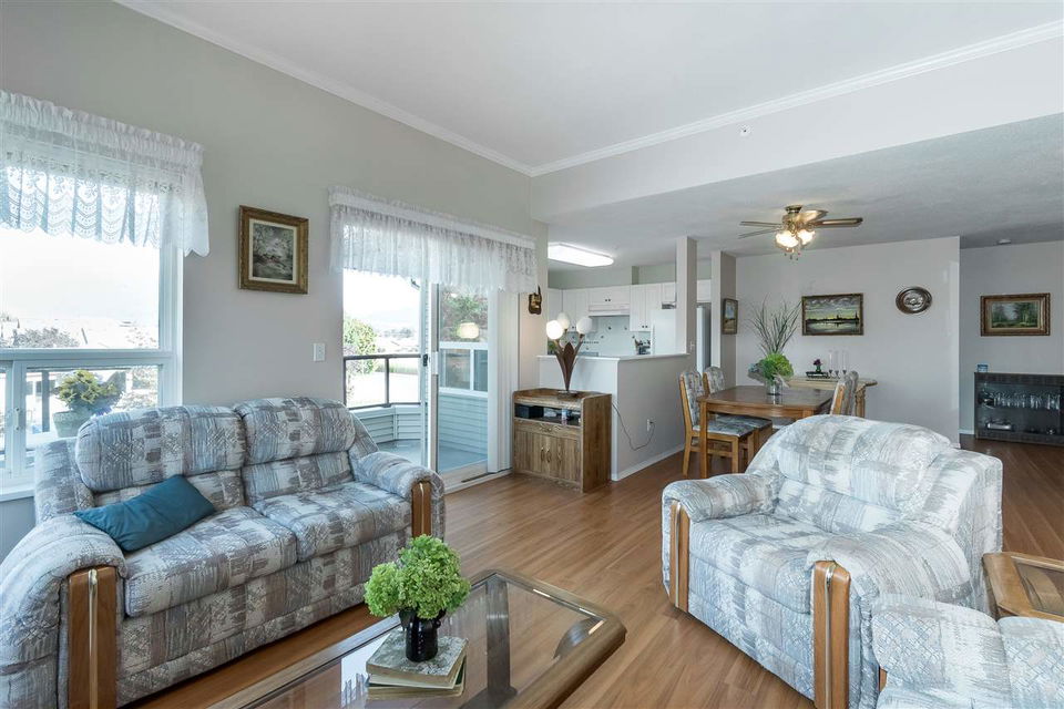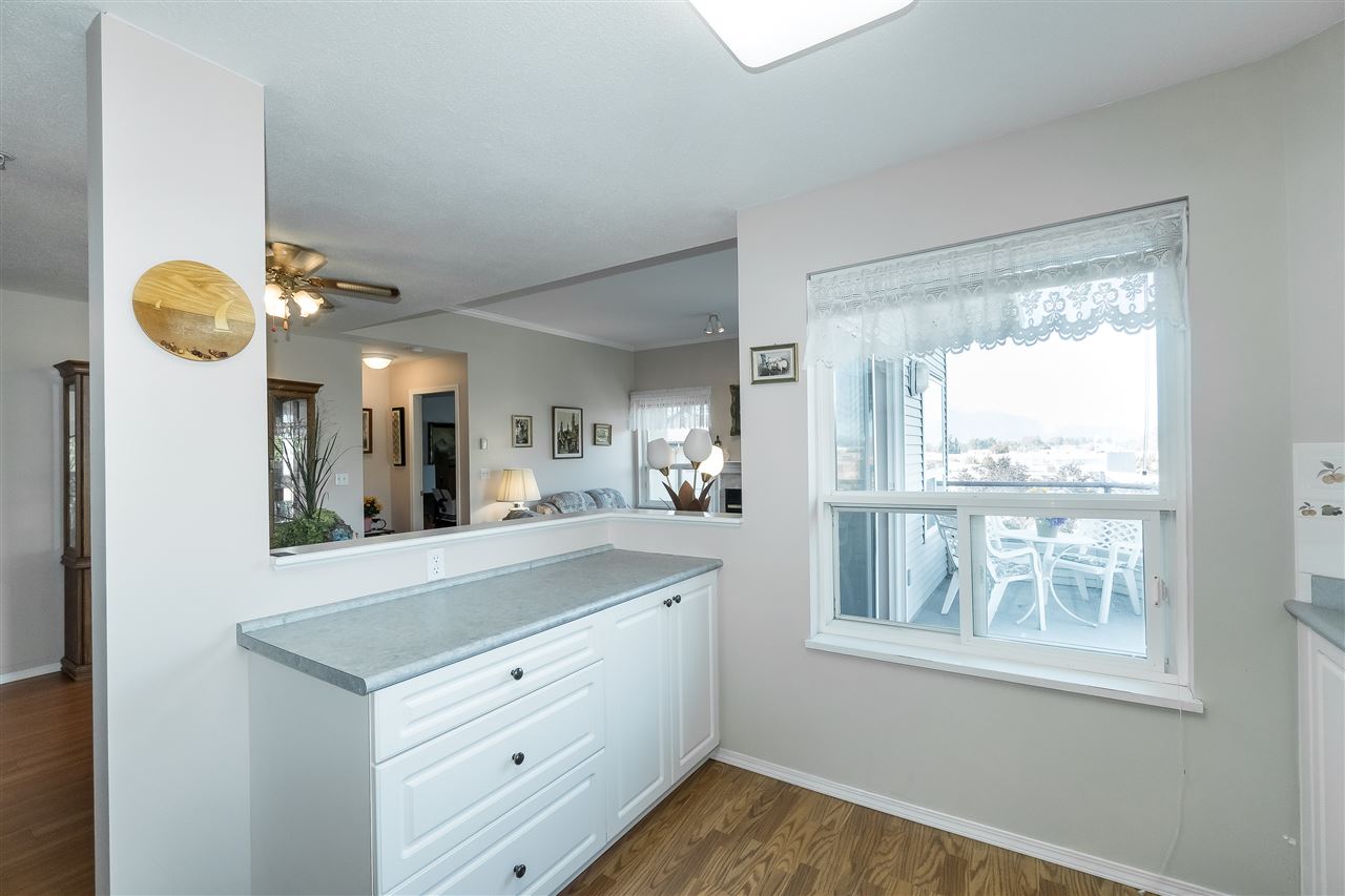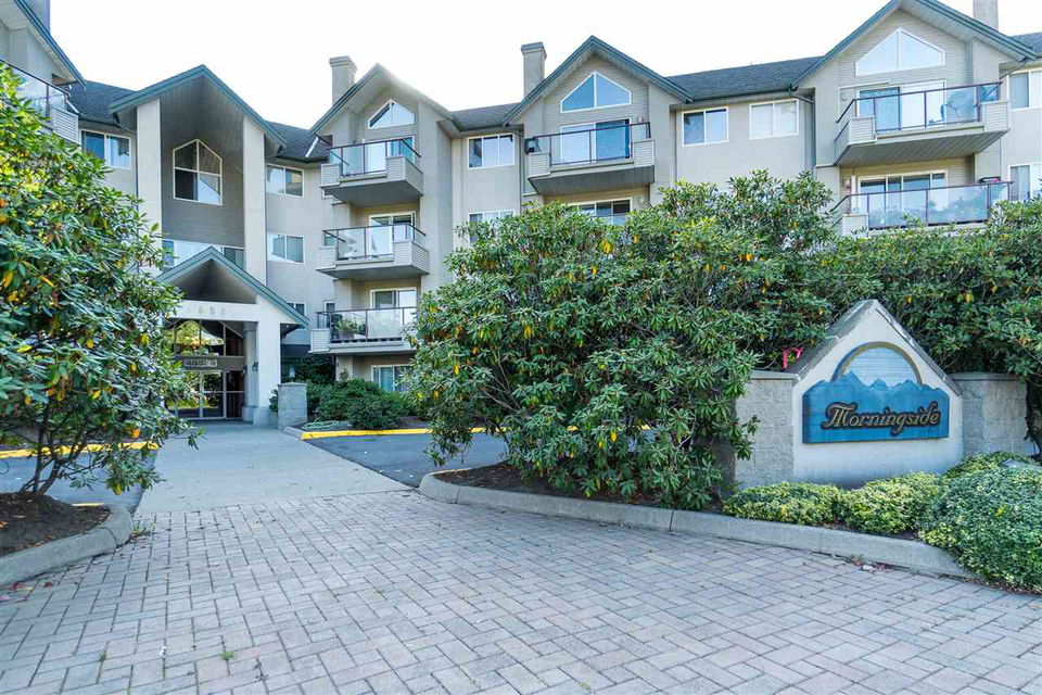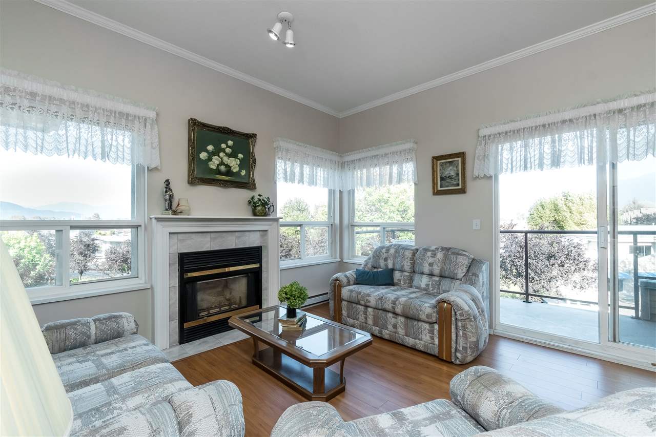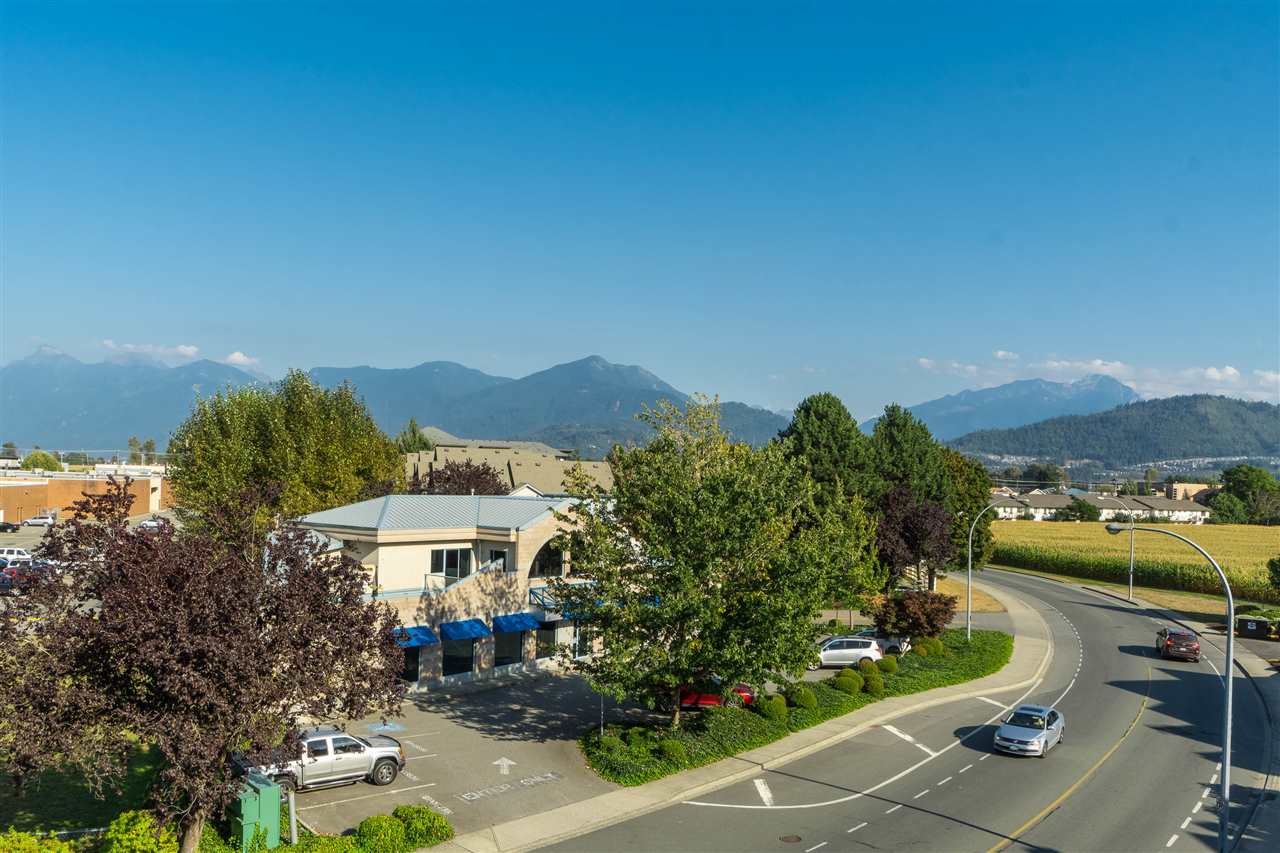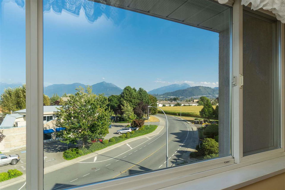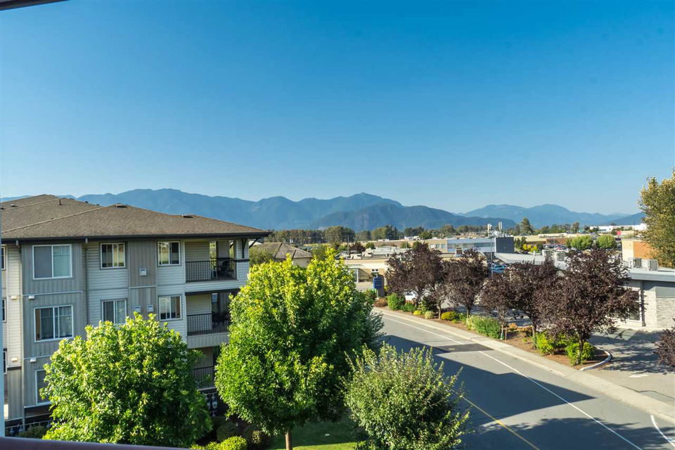 PENTHOUSE CORNER SUITE@ MORNINGSIDE in gorgeous Sardis! This original owner home sits in a prime location with EASTERN MOUNTAIN VIEWS from the large balcony and master bedroom. Enjoy the TALL CEILINGS and ample windows- very bright and cheerful. The suite features laminate flooring, crown mouldings & modern paint colors. Spacious kitchen w/ white cabinets & ample counter space that opens up to the dining area & living space- a great layout for entertaining. Master bedroom w/ walk through closet & an ensuite washroom w/ tiled walk in shower. Secure underground parking, secure storage locker, elevator, guest suite, games room, & common library area. A few bylaws: 19+ age restrictions, 2 pets allowed (size restrictions of 10″ at shoulders) & no rentals. Call today!
