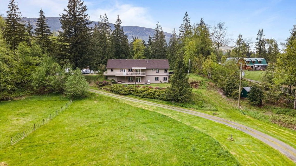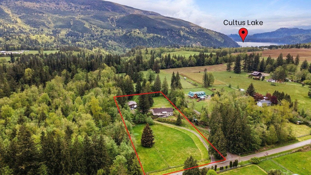 COLUMBIA VALLEY ACREAGE! 5 mins from CULTUS LAKE, this 3.5 acre USEABLE parcel is fenced, gated, & PRIVATE! Enter through the gate to your CUSTOM DESIGNED 3024 sq ft home constructed in 2005- a FABULOUS RANCHER w/ WALKOUT BSMT layout! Main floor w/ vaulted ceiling, spacious kitchen, MASTER ON MAIN w/ walk-in closet & ensuite. Dual patios off main; partially covered view patio off the kitchen overlooking the front pasture & access to the back patio overlooking the HUGE BACKYARD. Lower level features a games room, family room, ample room for additional bdrms- easily suiteable! House w/ newer H/E furnace & HEAT PUMP! Shop has WATER + POWER- great for hobbyists. Ample flat land for horses & all farm animals PLUS school bus pickup in front of the house! Floorplan & additional photos on website!