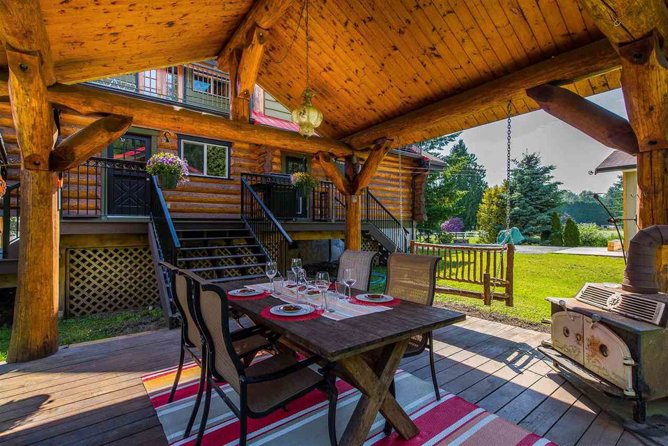 Custom LOG HOME on a picturesque .42 acre FLAT lot w/ DETACHED 20×32 WORKSHOP & fenced RV parking! Outdoor PARADISE w/ ample gardens, 2 sheds (1 w/ power), large DOUBLE CARPORT, & an amazing 20×20 GAZEBO. This 2075 sq ft 3 bedroom & 2 bathroom home features real hardwood flooring, soaring vaulted ceilings in the great room w/ upgraded GAS FIREPLACE, open concept kitchen w/ gas range, & spacious laundry room w/ newer W/D. 5′ insulated crawl space for ample STORAGE! Upstairs you’ll find an incredible master bedroom w/ private view patio overlooking the mountains. The open loft space is great for an office! ONLY 5 mins to Garrison Crossing & steps to the Vedder River for fishing- the best of both worlds. This is a dream property not to be missed- call for floorplans & additional pictures!