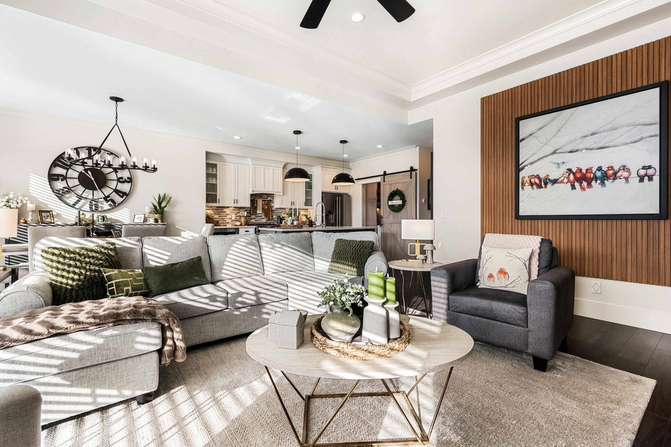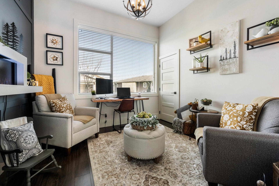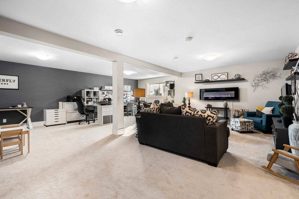 IMPECCABLY maintained & beautifully decorated rancher w/bsmt—the MOST coveted layout in Elysian Village! This STUNNING home offers endless upgrades & elegant touches throughout. Bright open-concept main floor features extra cabinets in dining area + pantry, stylish wall panels, chic kitchen backsplash, SS appliance-all flowing seamlessly into the living area w/f/p & MASSIVE windows providing AMPLE natural light. The primary bedroom offers a calm, luxurious feel w/5pc ensuite incl. dual sinks, sep. soaker tub & W.I. shower. Downstairs boasts a HUGE rec room w/electric f/p, entertainment & hobby space, PLUS another bedroom & full bath—ideal for guests. Outside enjoy the INCREDIBLE landscaped backyard w/pond & awning—your own private retreat. An exceptional home that truly stands apart.