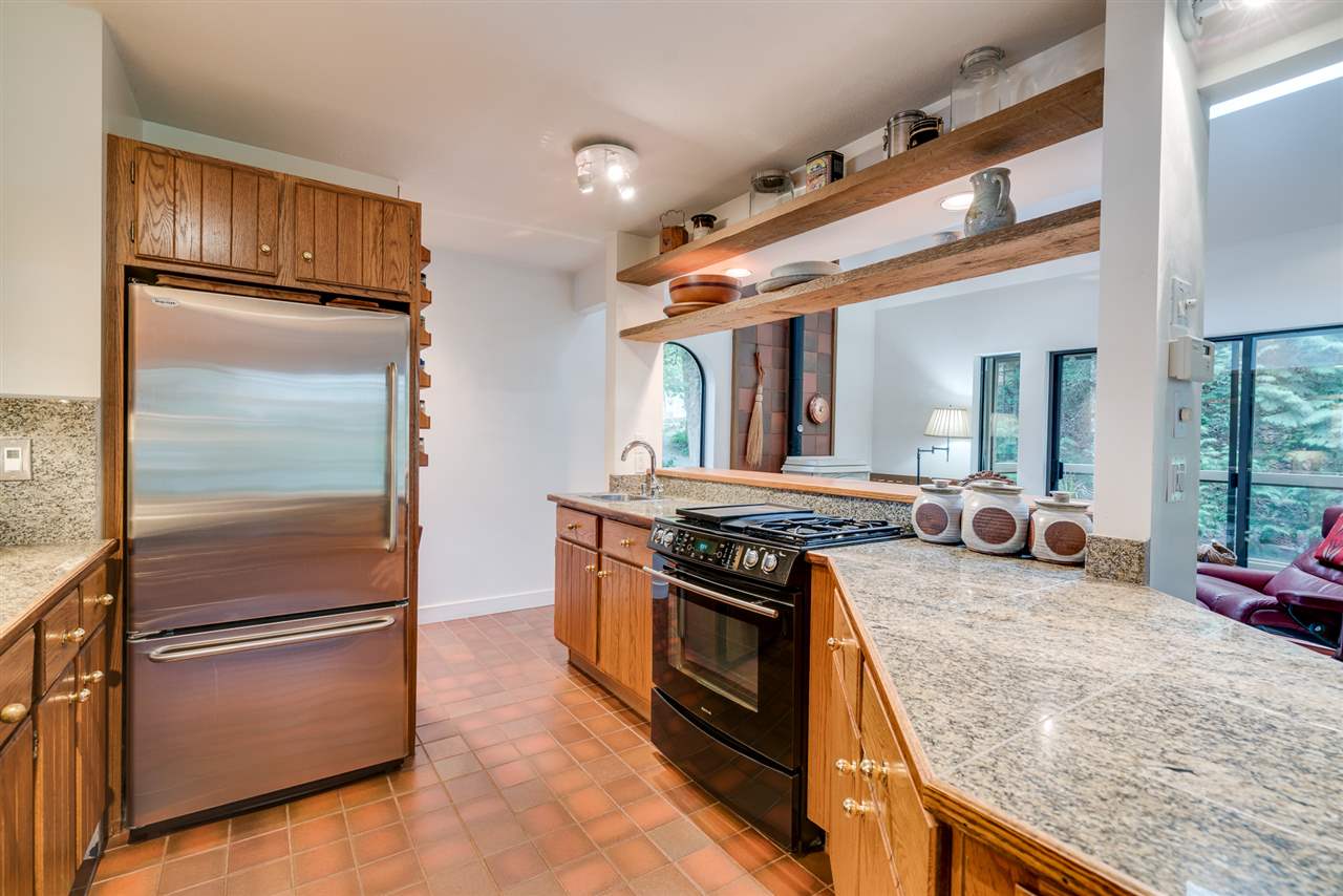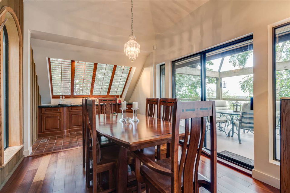 WATERFRONT VIEW PROPERTY w/ attached 870 sq ft workshop! This 4740 sq ft 5 home boasts natural charm w/ Jatoba hardwood flooring, vaulted ceilings, & ample windows. Main floor feat. 2 living spaces, lrg kitchen w/ gas range & granite tile counters, & solid oak cabinets w/ pull outs. You will fall in love with the large covered patio w/ gas hookups & stunning river views! Upstairs find your private master suite w/ ensuite. Downstairs consists of rec room, storage (or 6th bdrm), family room w/ built in speakers, & access to private patio w/ hot tub. 200 amp service. Lots of flat parking and endless views!