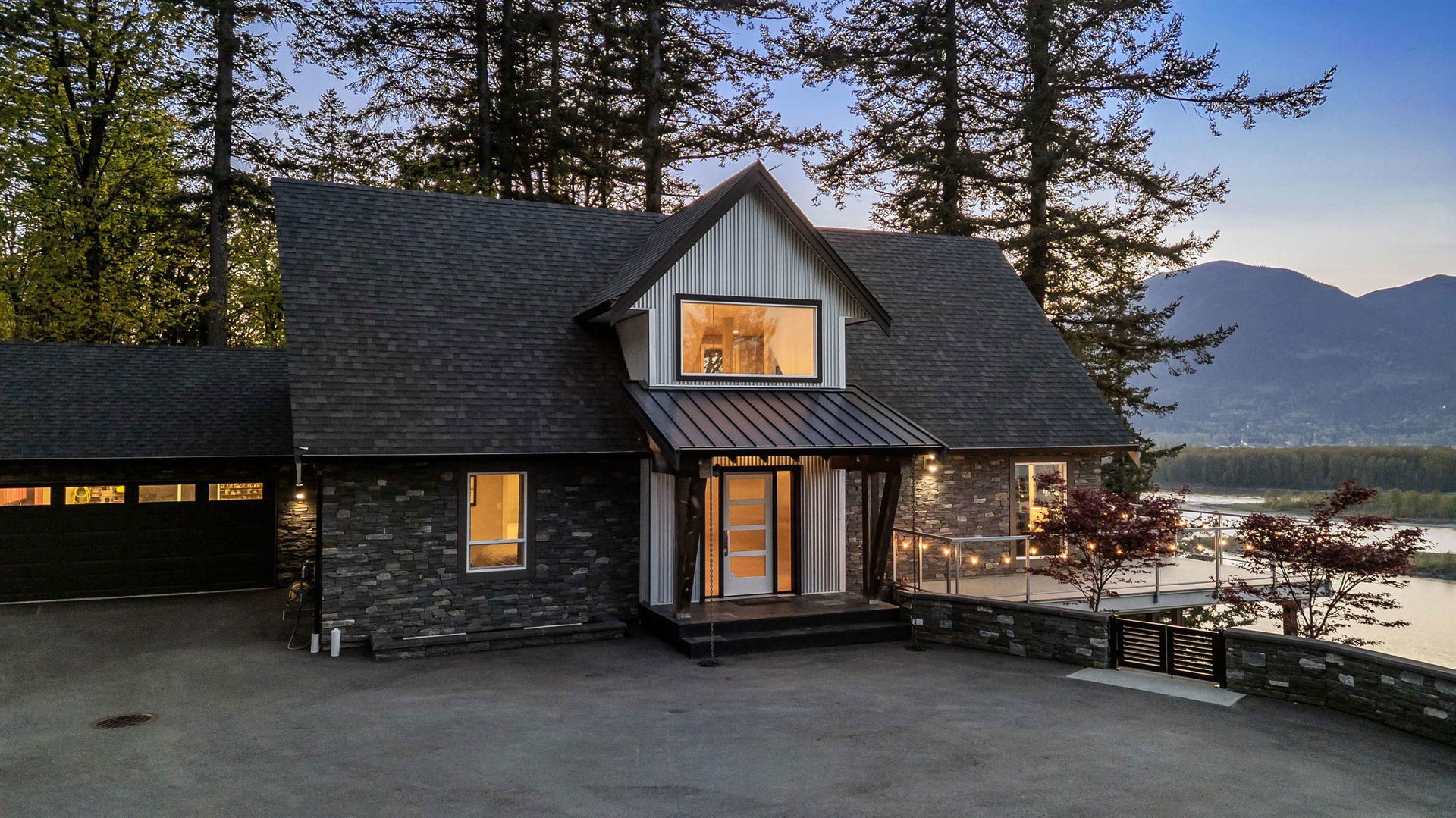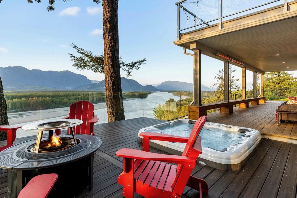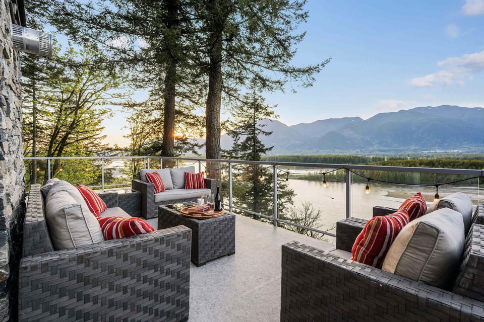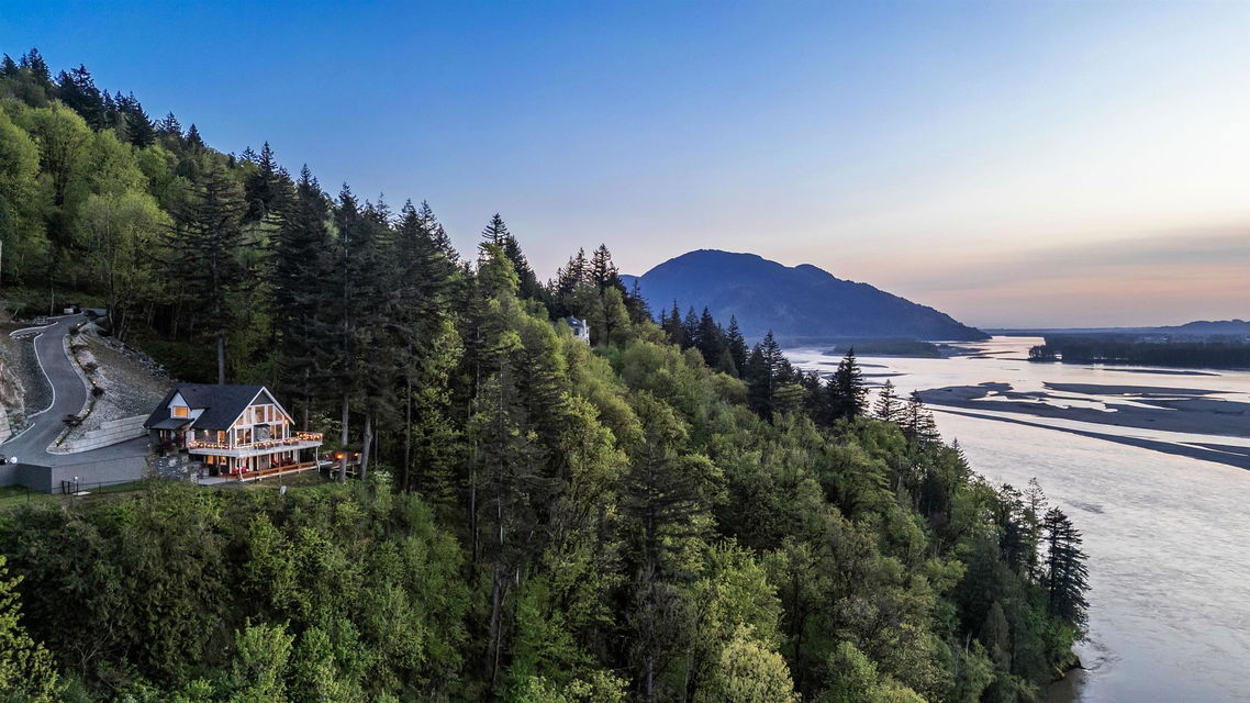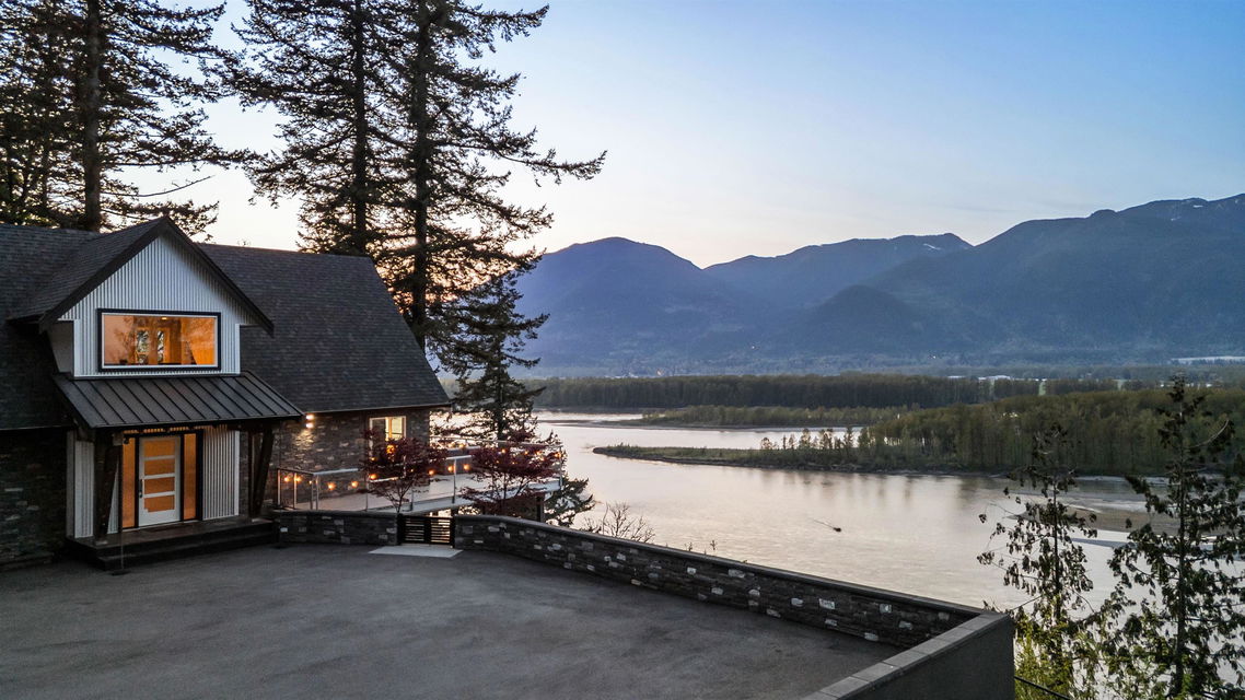 PANORAMIC FRASER RIVER VIEWS from this STUNNING MODERN MOUNTAIN HOUSE perched on a 3 ACRE WATERFRONT LOT! Incredibly crafted, this home was designed for ULTIMATE VIEWS and entertainment with a focus on serenity and privacy. As you enter the GATED ESTATE, you’ll be amazed at the crafted landscaping complete with an engineered suspended patio w/ HOT TUB, ample stone work & gated lower yard w/ astroturf. Step inside and enjoy the vaulted ceilings w/ floor to ceiling windows, engineered hardwood floors, & open concept kitchen w/ QUARTZ & SS appliances. MASSIVE entertainment patio off the kitchen w/ 180 degree views. Walkout bsmt is complete w/ lrg rec room w/ WET BAR & access to the covered lower patio w/ built in benches & heaters for year round enjoyment. HEAVEN!