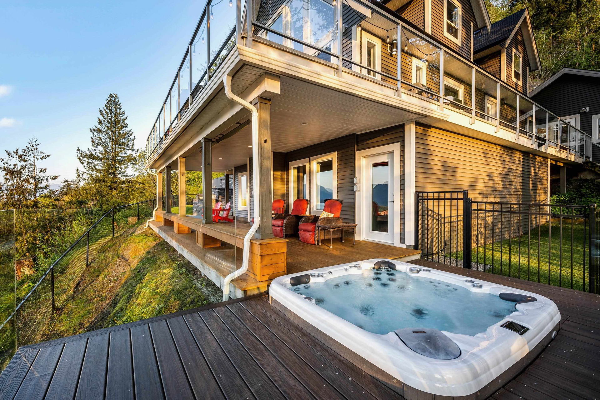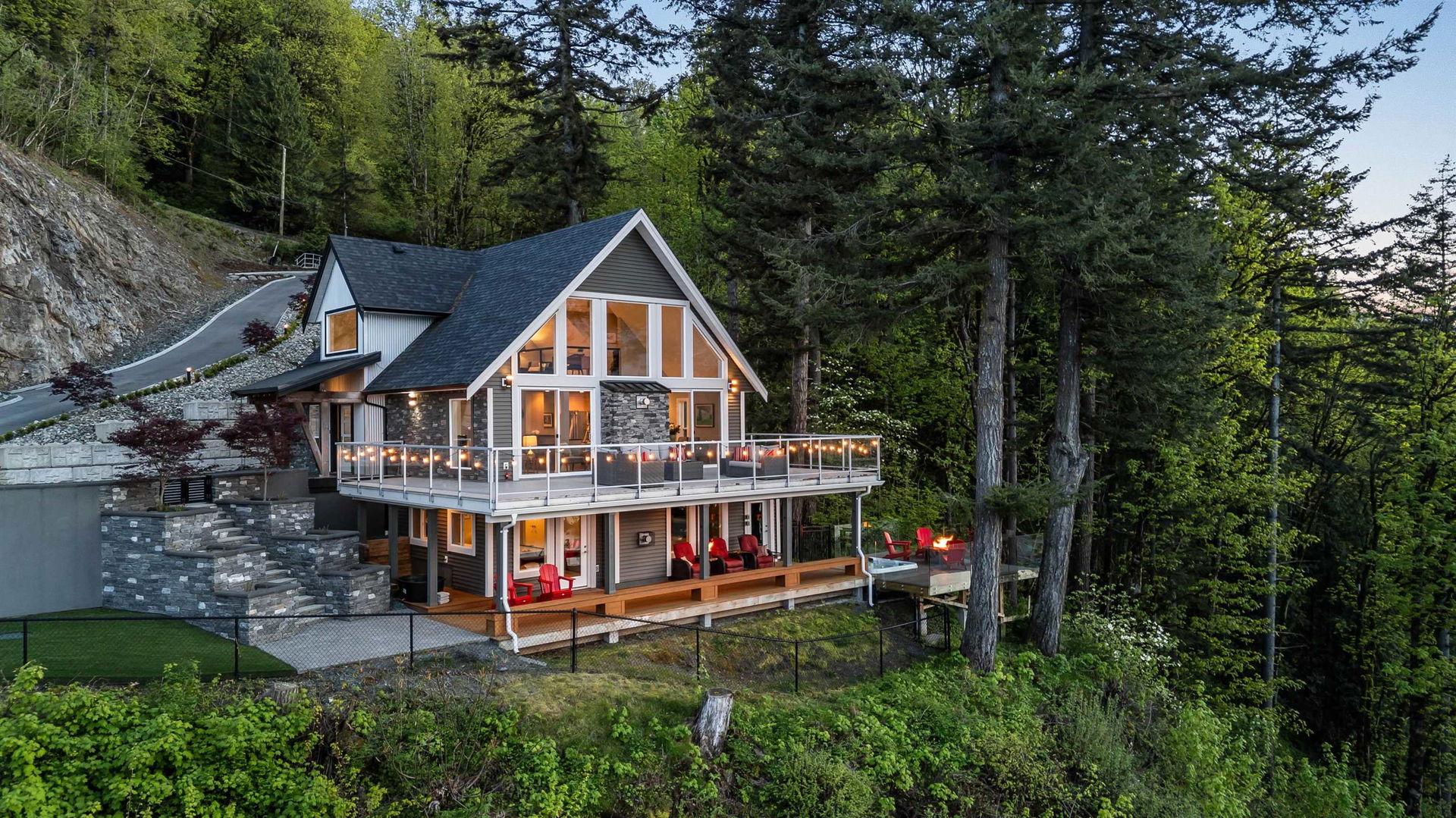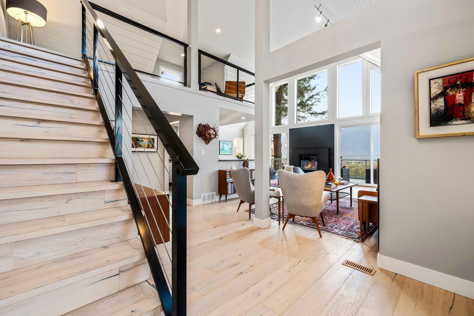 PANORAMIC FRASER RIVER VIEWS from this STUNNING MODERN MOUNTAIN HOUSE perched on a 3 ACRE WATERFRONT LOT! Incredibly crafted, this home was designed for ULTIMATE VIEWS and entertainment with a focus on serenity and privacy. As you enter the GATED ESTATE, you’ll be amazed at the crafted landscaping complete with an engineered suspended patio w/ HOT TUB, ample stone work & gated lower yard w/ astroturf. Step inside and enjoy the vaulted ceilings w/ floor to ceiling windows, engineered hardwood floors, & open concept kitchen w/ QUARTZ & SS appliances. MASSIVE entertainment patio off the kitchen w/ 180 degree views. Walkout bsmt is complete w/ lrg rec room w/ WET BAR & access to the covered lower patio w/ built in benches & heaters for year round enjoyment. HEAVEN!