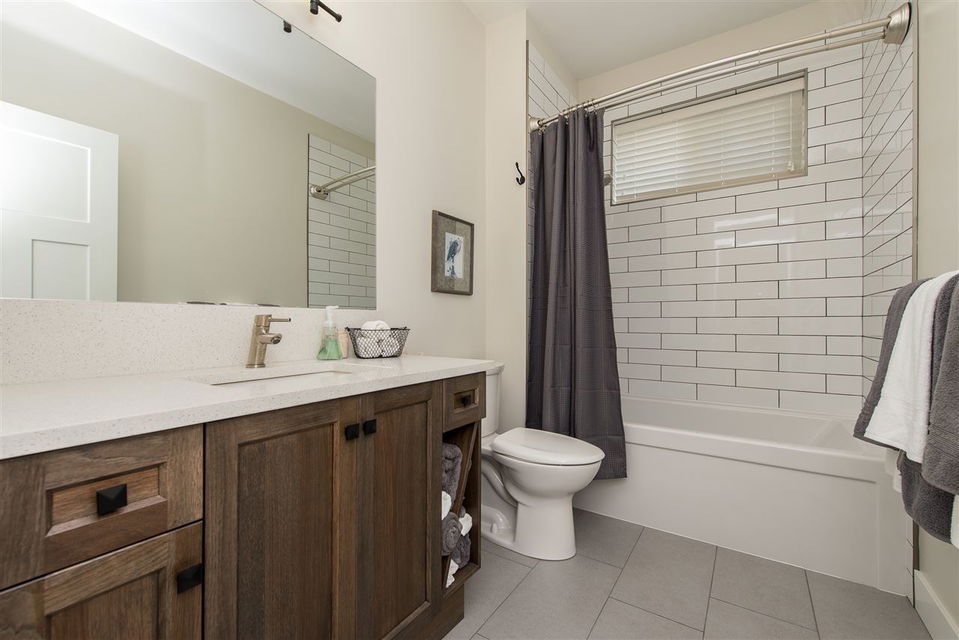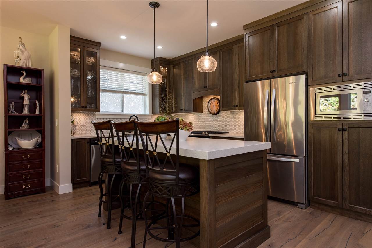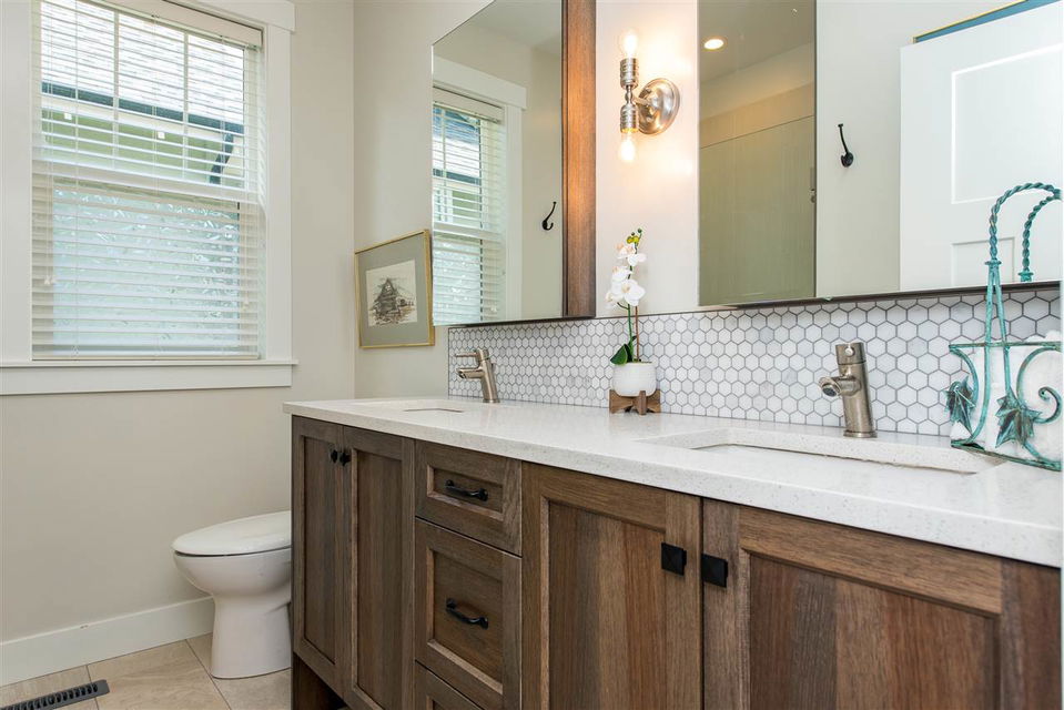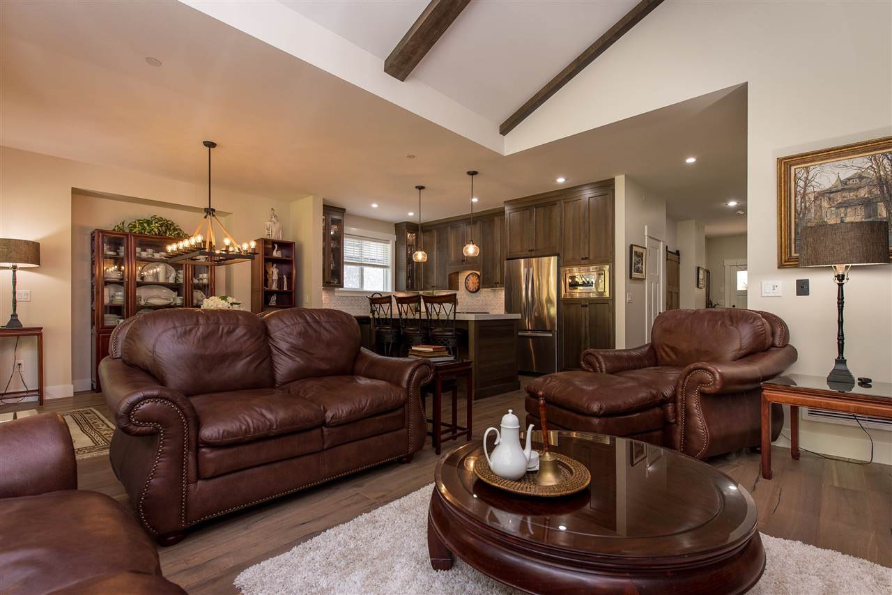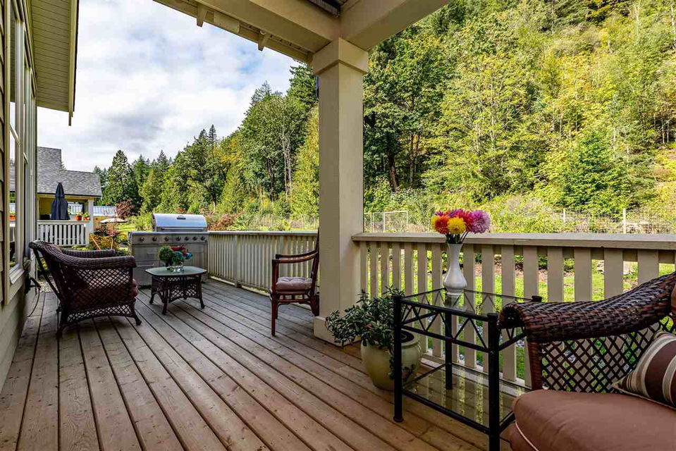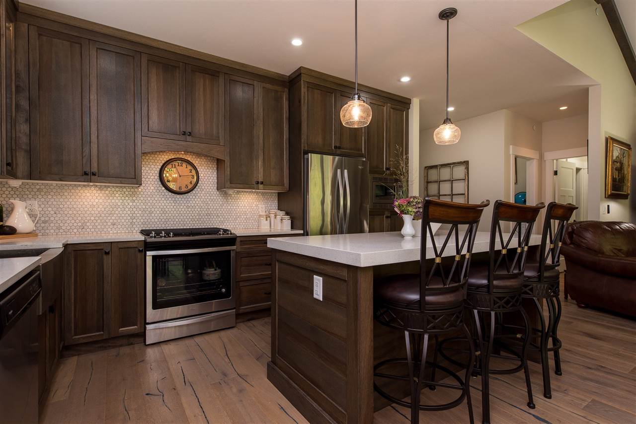 Gorgeous FULLY LOADED 2 bdrm plus den RANCHER in the exclusive gated community of Creekside Mills. You’ll LOVE the elegant great room w/ vaulted beamed ceilings, hardwood flooring throughout, designer feature walls, upgraded lighting & fans, & the oversized covered back patio w/ GAS FIREPLACE! Bright kitchen w/ soft close cabinets to the ceilings, upgraded granite counters & backsplash, & high end SS appliances including a gas range! Spacious master bdrm w/ walk in closet & private ensuite w/ heated tile flooring. Insulated & finished garage, easy access storage in the crawl space, b.i. vac, gutter guards, gas bbq outlets – you name it! Nestled into nature, this home is located on a PRIVATE lot backing the serene orchards and is only a 3 min walk to the clubhouse w/gym, pool, & sauna!