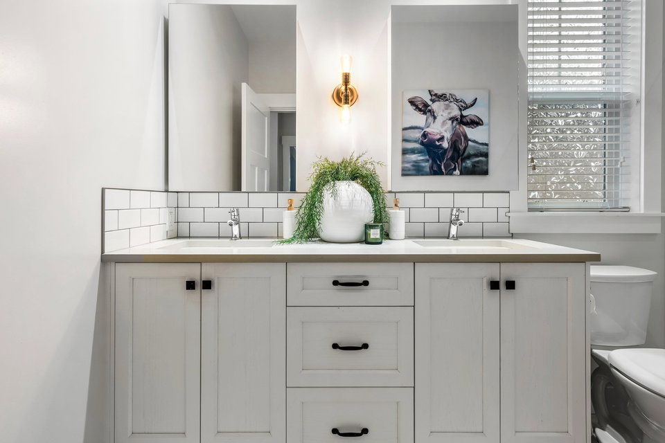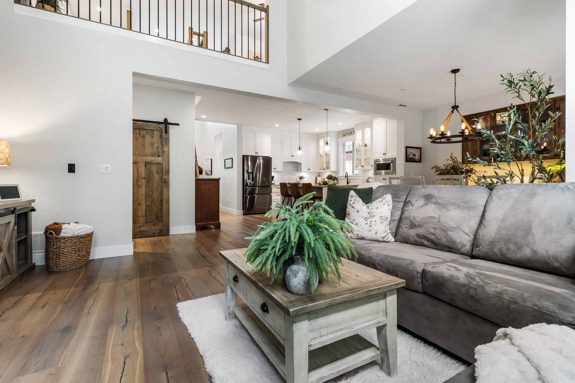 FABULOUS 2-storey modern farmhouse located in the HIGHLY coveted Creekside Mills complex! Step into the stunning open-concept main floor featuring engineered hardwood floors & a vaulted living room w/MASSIVE windows allowing AMPLE natural light throughout. The PRISTINE kitchen showcases quartz counters, high-end appliances & a large island, seamlessly flowing into the cozy dining area w/B.I. hutch & French doors that open onto a serene covered patio w/privacy screen. Plus, enjoy a sought-after master-on-main w/spacious W.I.C. & a 4pc ensuite offering dual sinks & a walk-in shower. Upstairs features a versatile loft, 2 more GENEROUS bedrooms & a full 4pc bath. Additional highlights include B.I. vacuum, water softener, phantom screens, heat pump with AC & INCREDIBLE amenities!