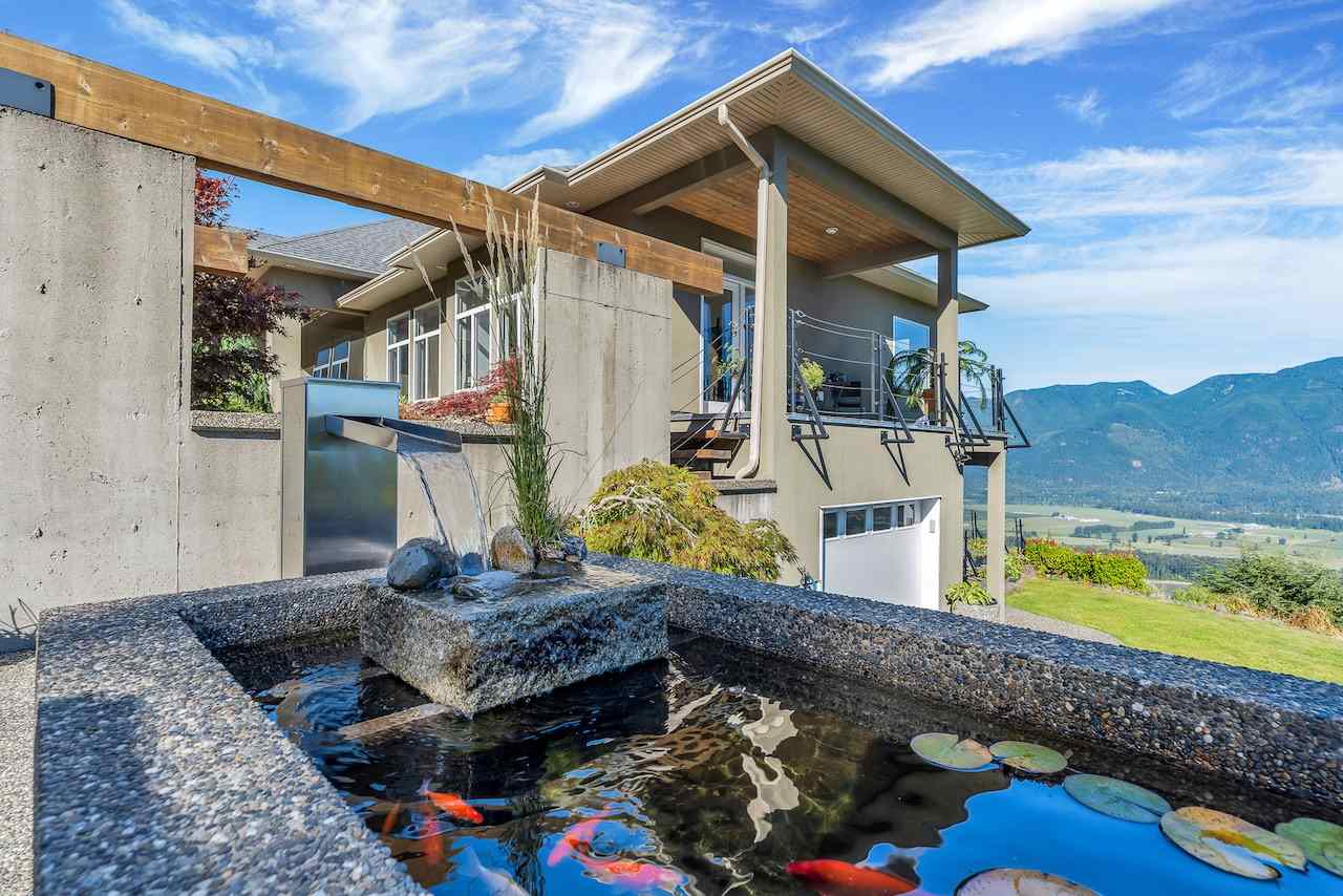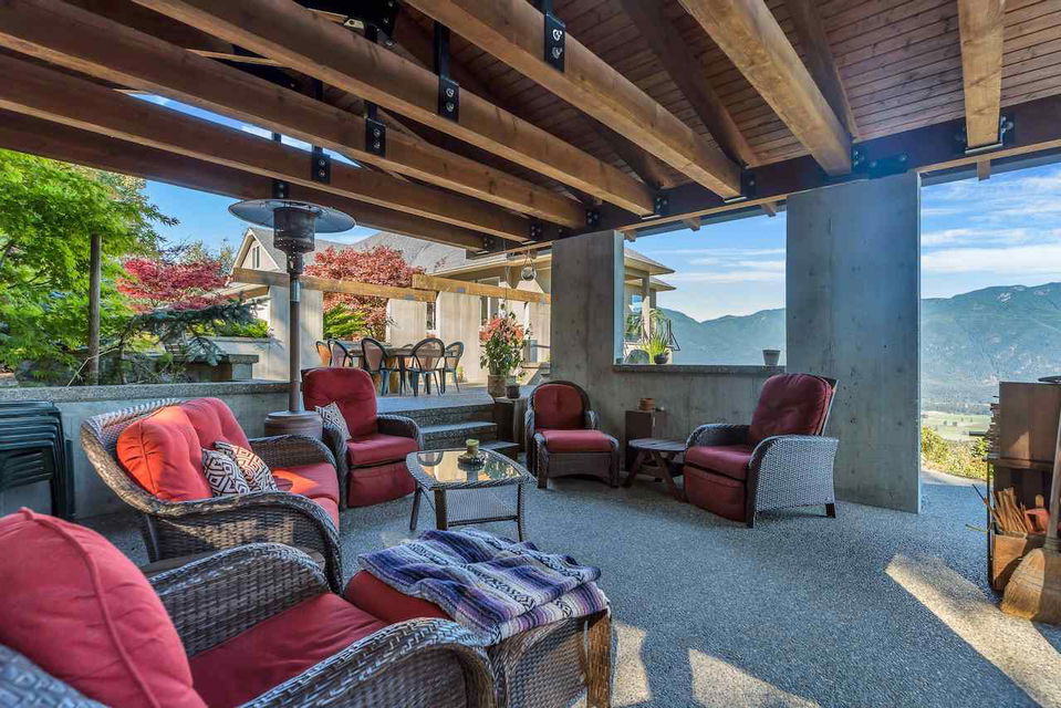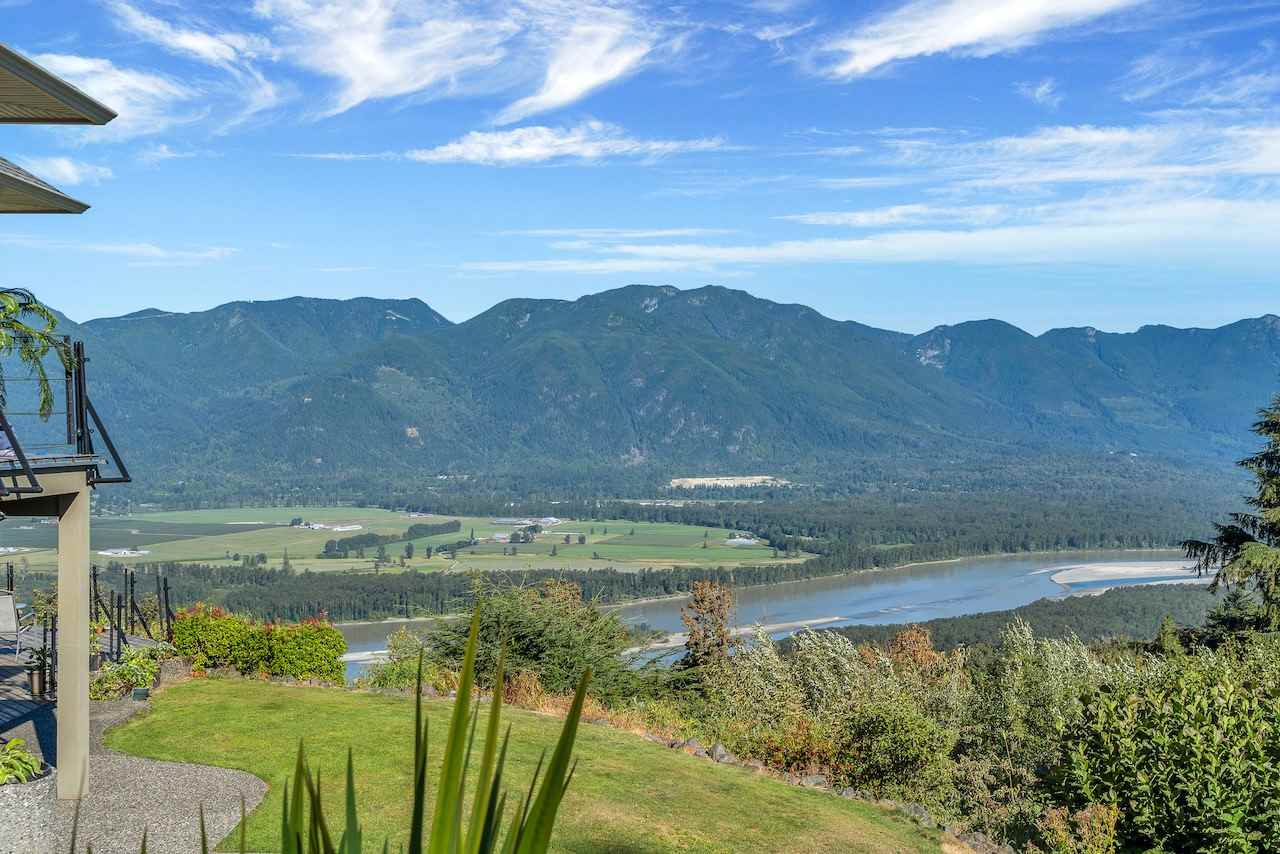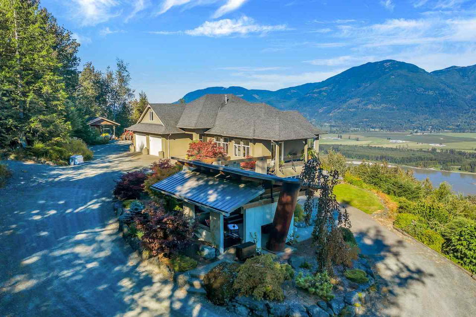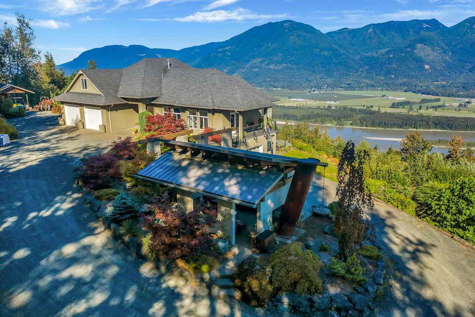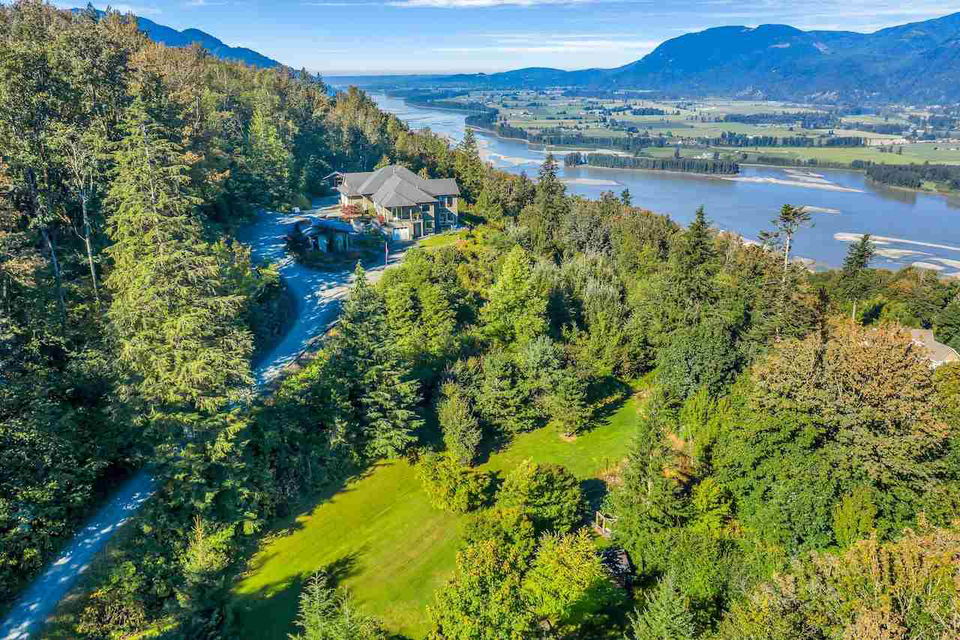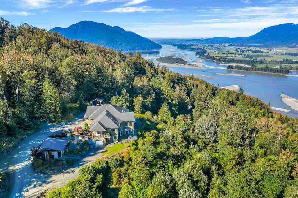 Escape the everyday w/ UNOBSTRUCTED RIVER VIEWS from a private 4.3 acre manicured parcel perched atop Chilliwack Mountain. Carefully crafted with function, daylight, & VIEWS in mind, this 5502 sq ft contemporary home features tile & bamboo flooring, modern fixtures & decor, european flat panel cabinetry & quartz. Large master retreat w/ access to a wrap around composite tile patio. Walkout daylight 2 bdrm BSMT SUITE w/ private garage. Soundproof media/man cave & large office w/ built in desks & shelving. Radiant & Forced Air heating w/ A/C. INCREDIBLE westcoast outdoor living space feat. a wood burning fireplace, dining area, Koi pond, & incredible river views. Gently rolling lands w/ over an acre of lawns and gardens. This is a RETREAT PROPERTY like no other- private tours available.