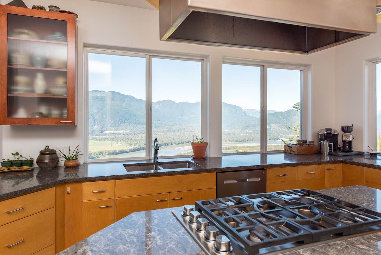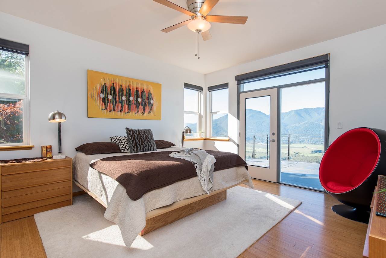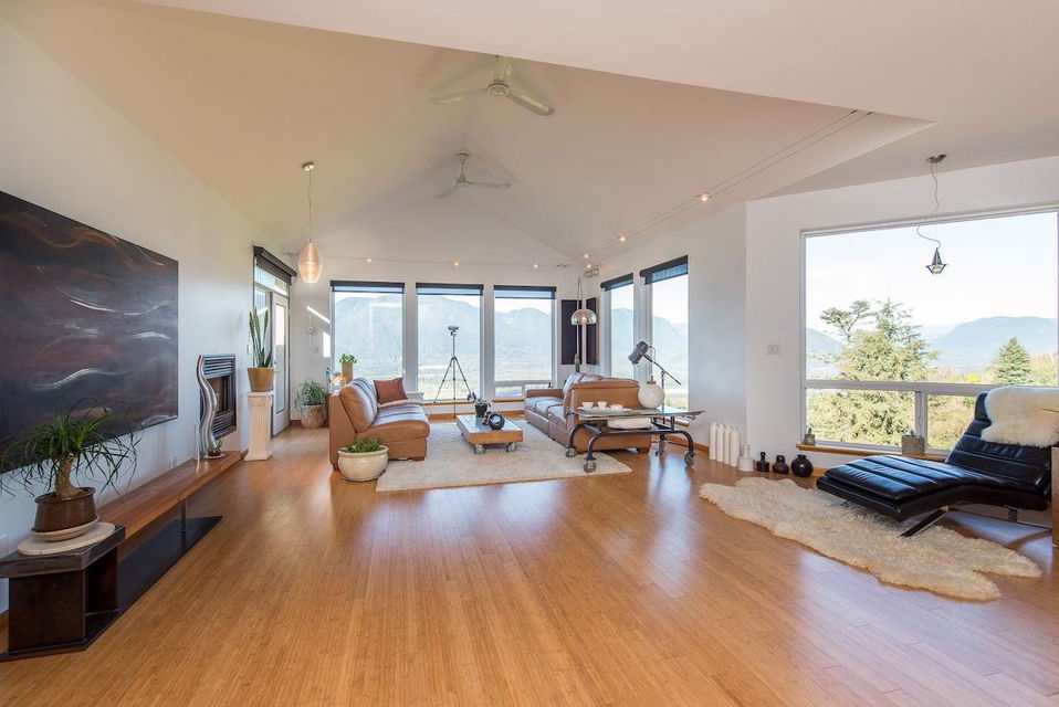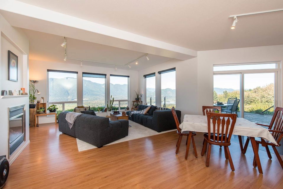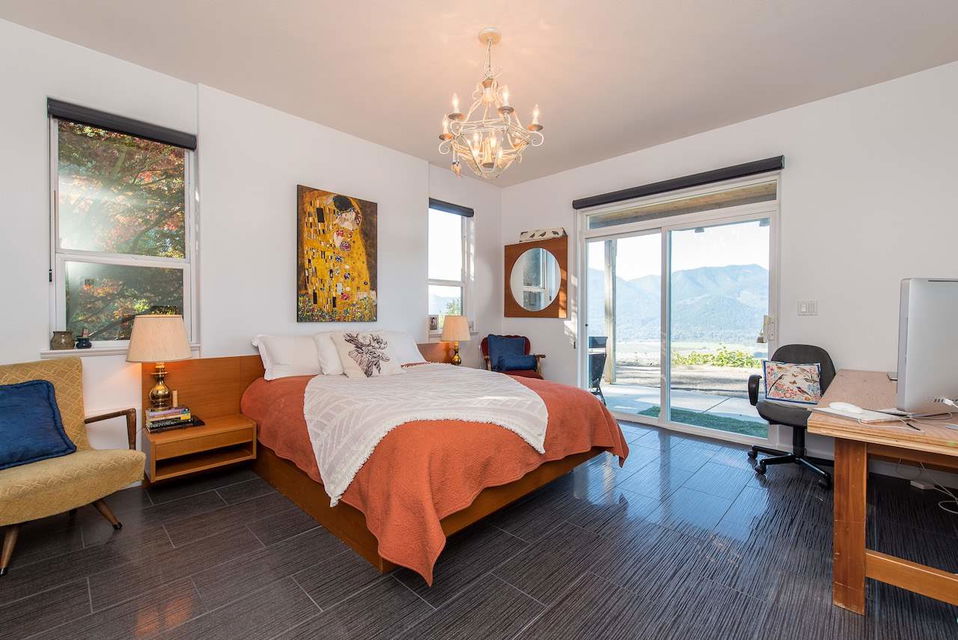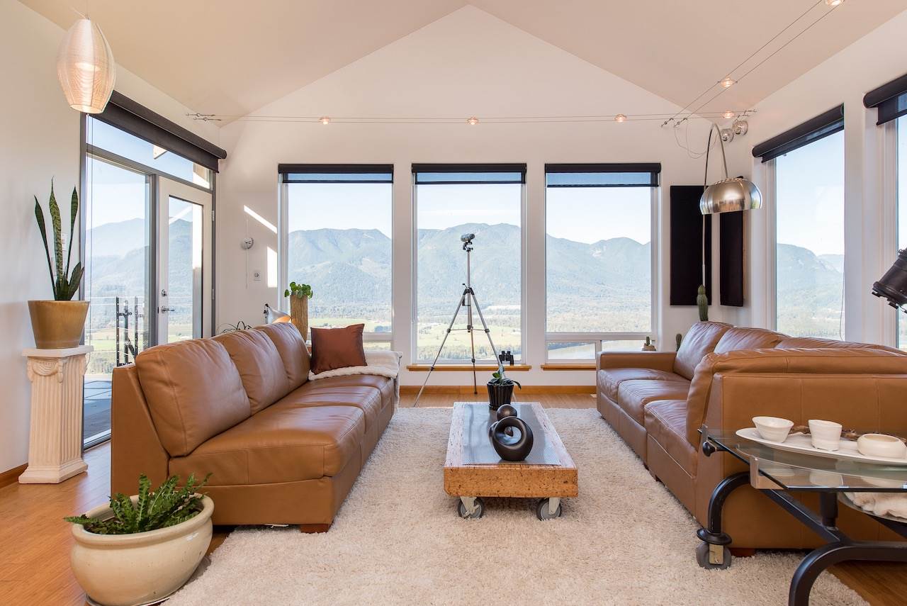 Escape the everyday w/ UNOBSTRUCTED RIVER VIEWS from a private 4.3 acre manicured parcel perched atop Chilliwack Mountain. Carefully crafted with function, daylight, & VIEWS in mind, this 5502 sq ft contemporary home features tile & bamboo flooring, modern fixtures & decor, european flat panel cabinetry & quartz. Large master retreat w/ access to a wrap around composite tile patio. Walkout daylight 2 bdrm BSMT SUITE w/ private garage. Soundproof media/man cave & large office w/ built in desks & shelving. Radiant & Forced Air heating w/ A/C. INCREDIBLE westcoast outdoor living space feat. a wood burning fireplace, dining area, Koi pond, & incredible river views. Gently rolling lands w/ over an acre of lawns and gardens. This is a RETREAT PROPERTY like no other- private tours available.