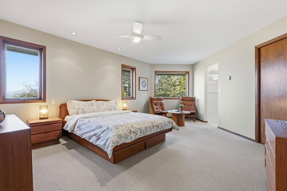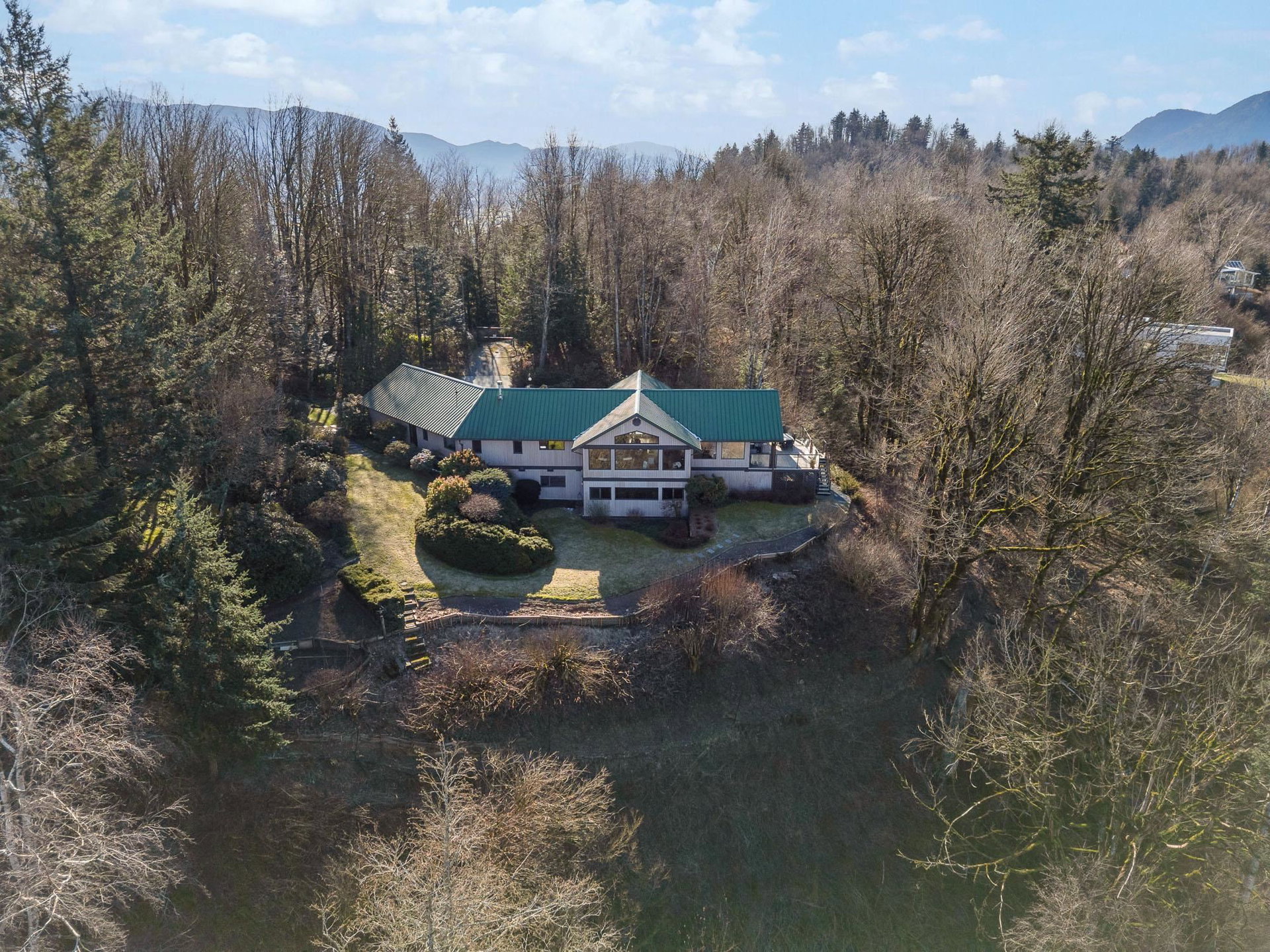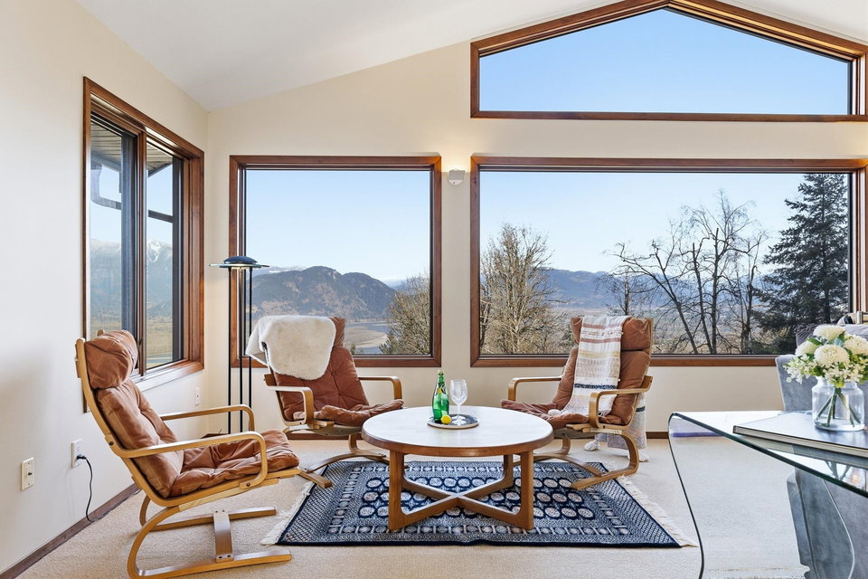 STUNNING 4,086 sq ft RANCHER W/ WALKOUT BSMT on a stunning 2.27 ACRE VIEW LOT atop prestigious Chilliwack Mountain. This ORIGINAL OWNER HOME has been lovingly maintained for DECADES and is now ready for a new owner. Designed for ultimate daylight with massive picture windows, this 4 bdrm + 3 bathroom home is perfect for all stages of life. All main floor living w/ a grand primary suite, oversized laundry/mudroom off the DOUBLE garage, VAULTED LIVING ROOM w/ gas f/p, and a spacious kitchen w/ upgraded counters & SS appliances. Walkout bsmt w/ ample storage, 2 guest rooms, family room w/ gas f/p, R.I wet bar, & full washroom. Radiant heating, metal roof, 200 amp service, CITY WATER, gated driveway, and manicured yard with beautiful gardens. This is a RARE find and one for the MUST SEE LIST!