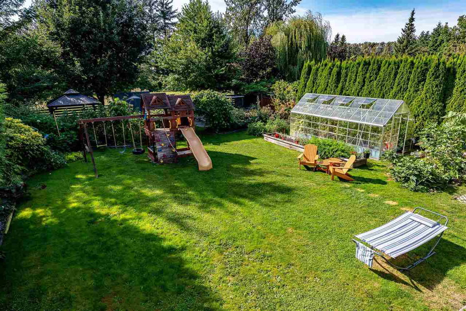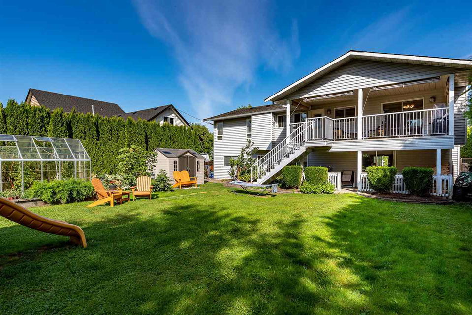 QUIET FAMILY CUL-DE-SAC in YARROW! Sitting on a manicure 10,454 sq ft SUNNY lot, this 2106sq ft 4 bdrm & 3 bathroom home w/ DOUBLE CAR GARAGE & RV PARKING awaits! Just steps to Yarrow Elementary and the beautiful Vedder River, this location is the BEST! Functional floorplan w/ 3 bdrm up, including master w/ ensuite, a large living room w/ gas fireplace & mountain views, & a spacious kitchen overlooking the pristine backyard. Lovely renovation to the main bathroom. Fully finished bsmt w/ 4th bdrm, bathroom, flex area (can be 5th bdrm), PLUS a recreation room w/ gas f/p! Step outside to your personal vegetable gardens, greenhouse, & fruit selections for all tastebuds! Irrigation all set up! BONUS- stamped concrete back patio w/ gazebo & CHICKEN COOP. Make your family memories start HERE!
