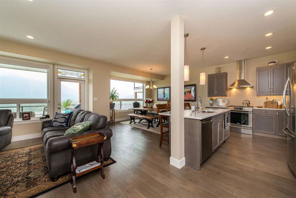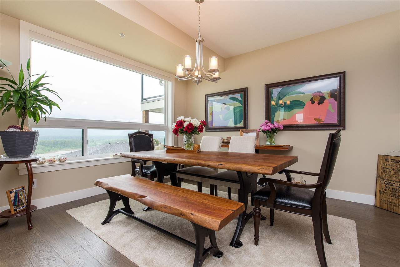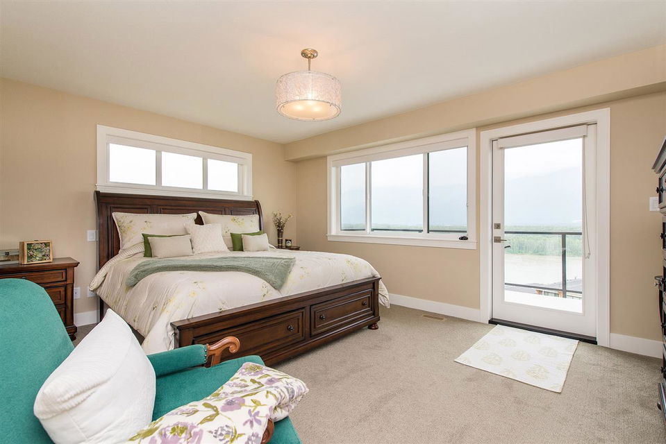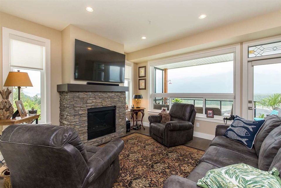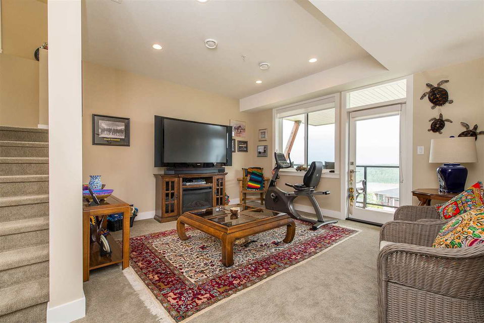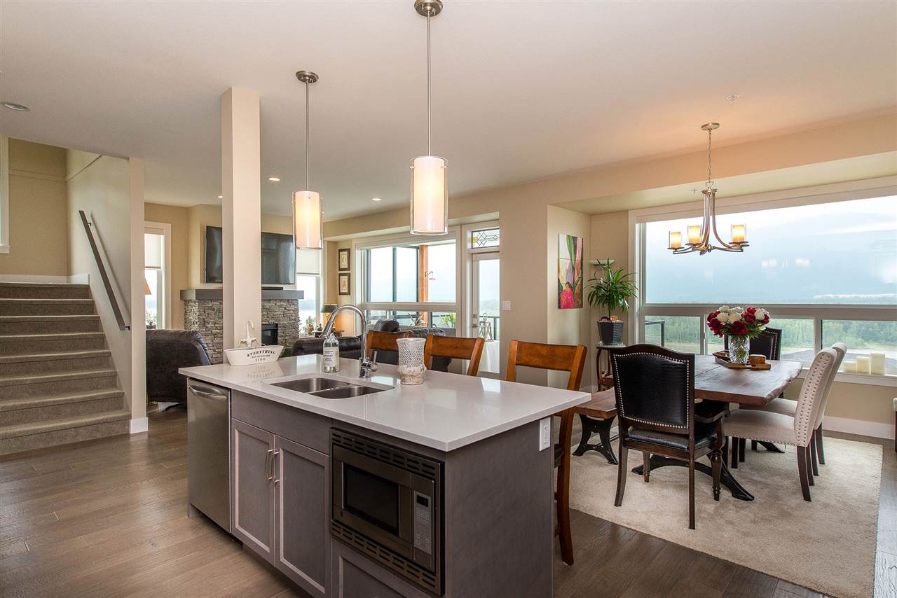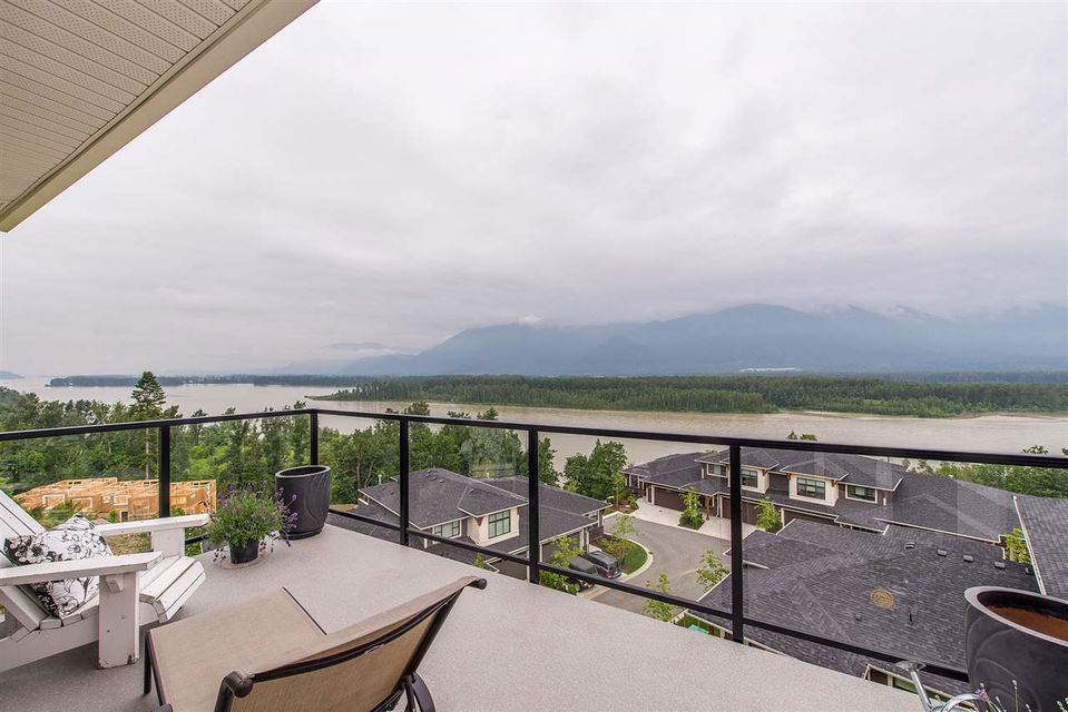 SPECTACULAR 180 DEGREE VIEWS from every floor in this beautifully finished 2800+ square foot townhome. With patios on every level, this bright and open concept floor plan cannot be beat. Take in the mountains and mighty Fraser River from the living room with rock face fireplace, dining room or the GOURMET kitchen featuring quartz counters & stainless steel appliances including natural gas range & garburator. Full laundry room & 3 large bedrooms upstairs including the master bedroom with private view patio, walk-in closet, and an ensuite that boasts double sinks, separate shower and spa-like soaker tub. Fully finished basement level with another bedroom, full bathroom and spacious rec room.