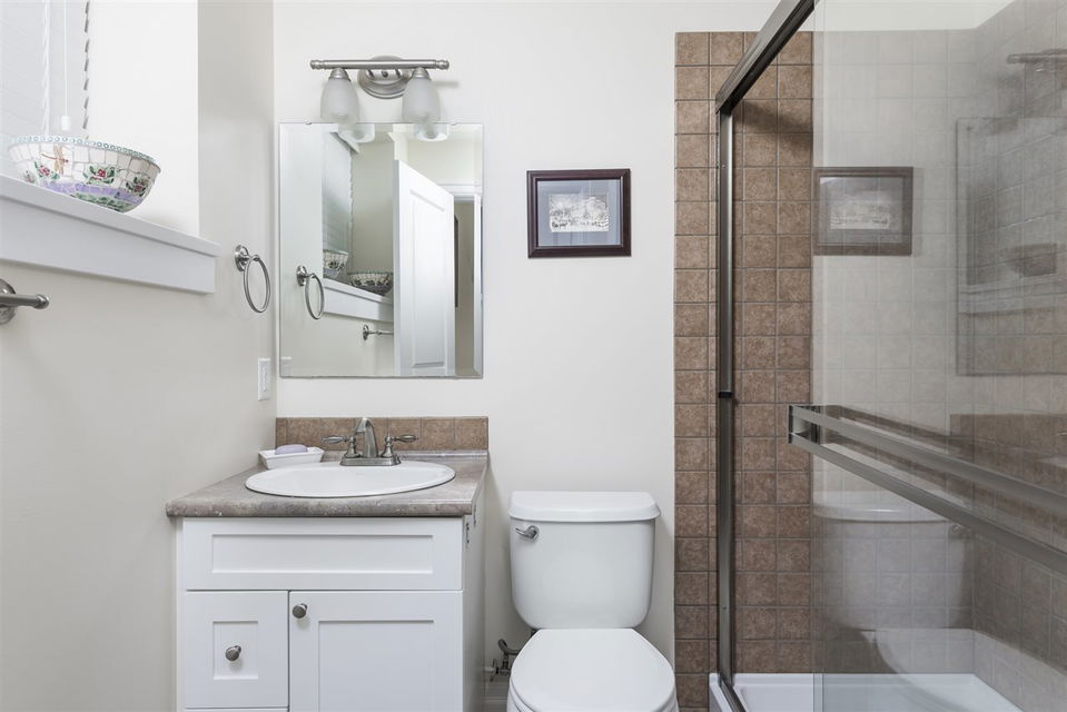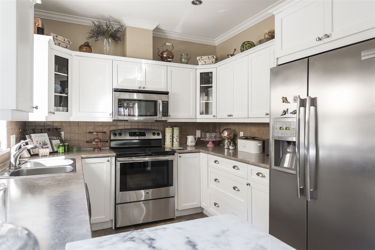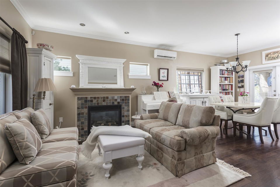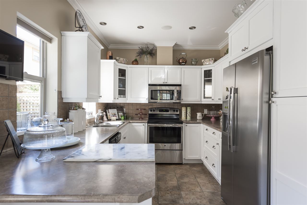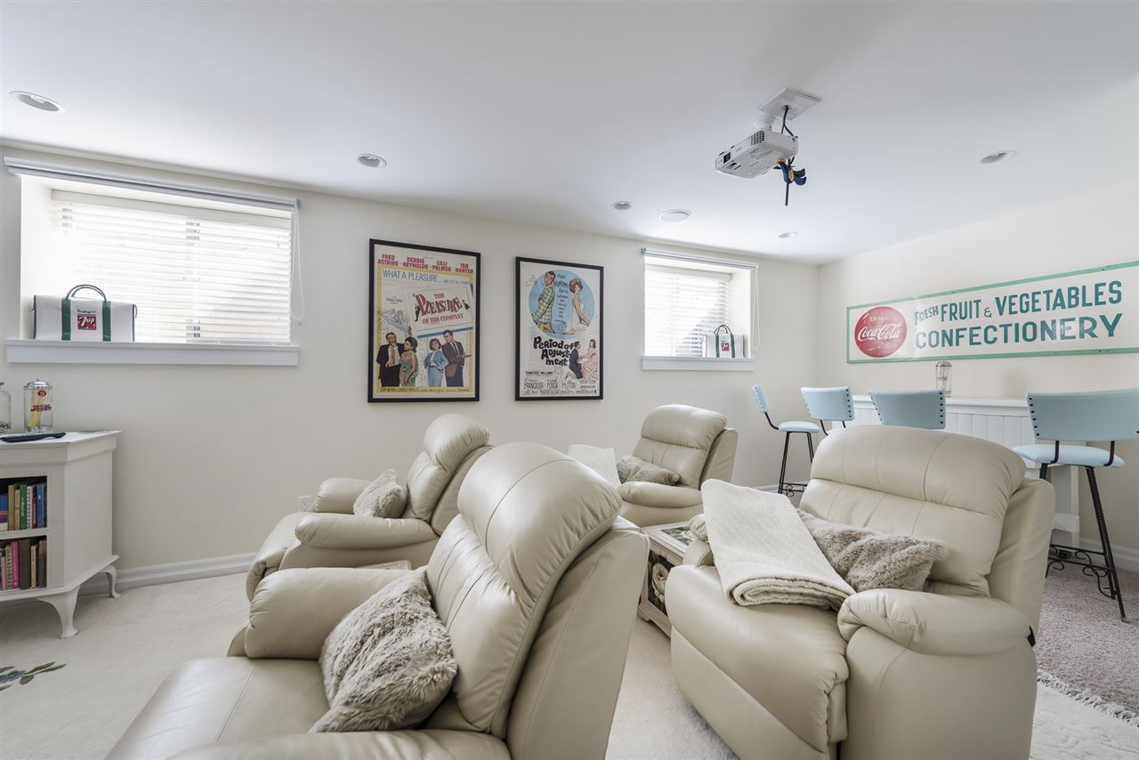 STOP THE CAR! 5 bdrm, 3 full bathroom 2117 sq ft family home w/ detached DOUBLE GARAGE in award winning Garrison Crossing! Main floor features hardwood flooring, AIR CONDITIONING, living room w/ gas fireplace, & beautiful kitchen w/ white cabinets & SS appliances. Step right out back to your fully fenced SOUTH FACING low maintenance yard. LARGE DBL GARAGE w/ storage above (drop down stairs) AND 2 more spots beside (easy to accomodate an RV). Upper 2 floors w/ 4 large bdrms, including welcoming master w/ full ensuite and walk in shower! Fully finished bsmt w/ MEDIA ROOM (complete with projector, motorized screen, & b.i. speakers), bedroom, storage room & full bathroom. Whole home audio w/ smart panel, b.i. vac, updated paint… WOW! Steps to the river, UFV, & Garrison Village!