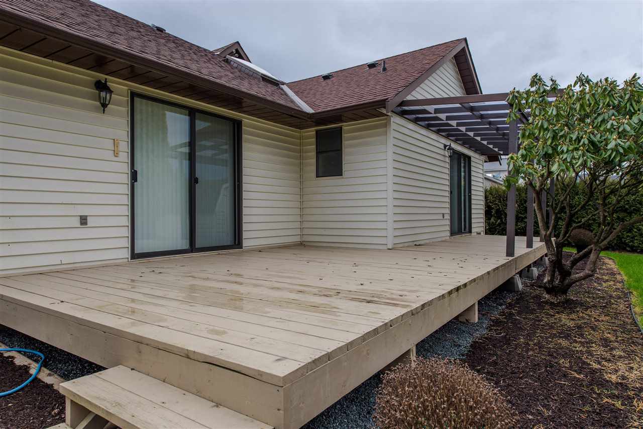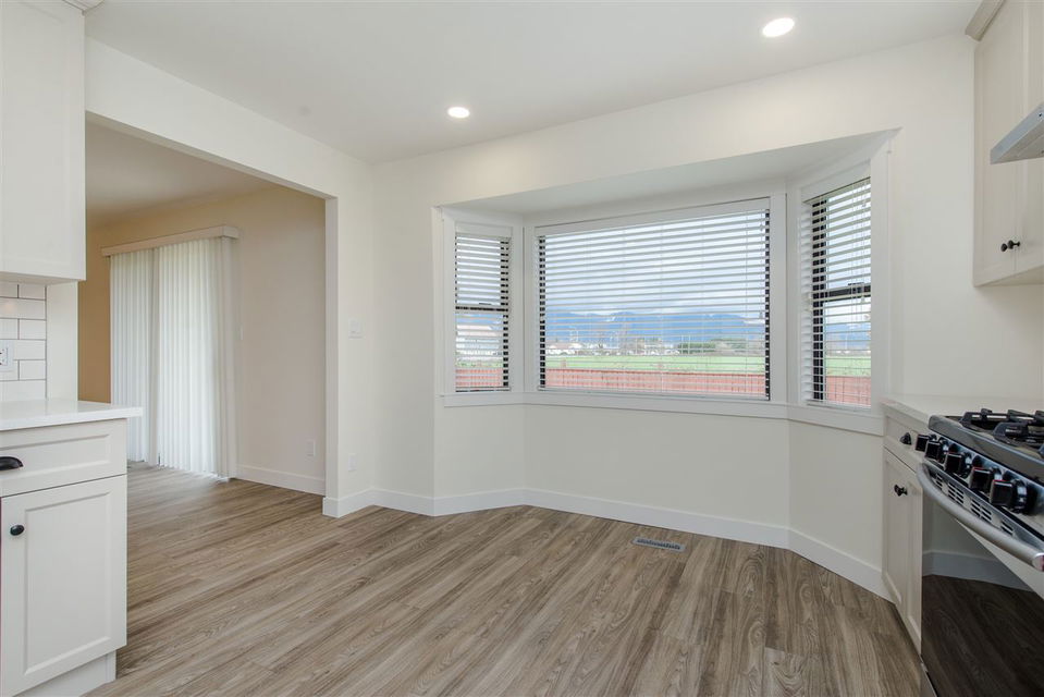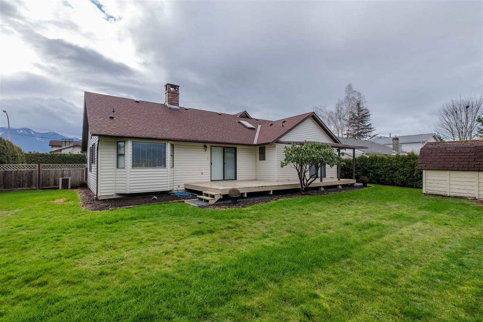 RENOVATED 4 BDRM SARDIS RANCHER! Completely remodelled interior in 2018, this 1902 sq ft home is a DREAM to move into. Brand new kitchen w/ high end custom cabinets, quartz counters, all new stainless steel appliances w/ gas range, & gorgeous mountain views from your eating area. Indestructible vinyl plank flooring, new window coverings, new bathroom vanities & toilets, new high efficiency FURNACE, gas hot water tank, new HE washer/dryer, new insulation in attic, LED lighting throughout, all fresh paint- you name it! Fully fenced backyard w/ large entertainers deck & storage shed. Walking distance to the Vedder River, all levels of schools, Garrison Crossing, & only 3 mins to Hwy 1 and the shops @ Eagle Landing!