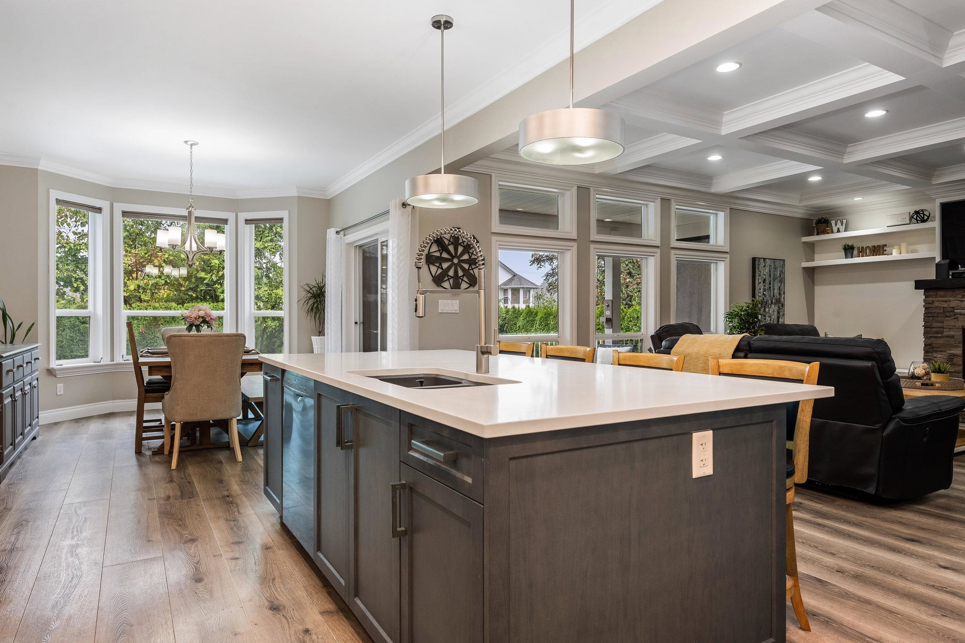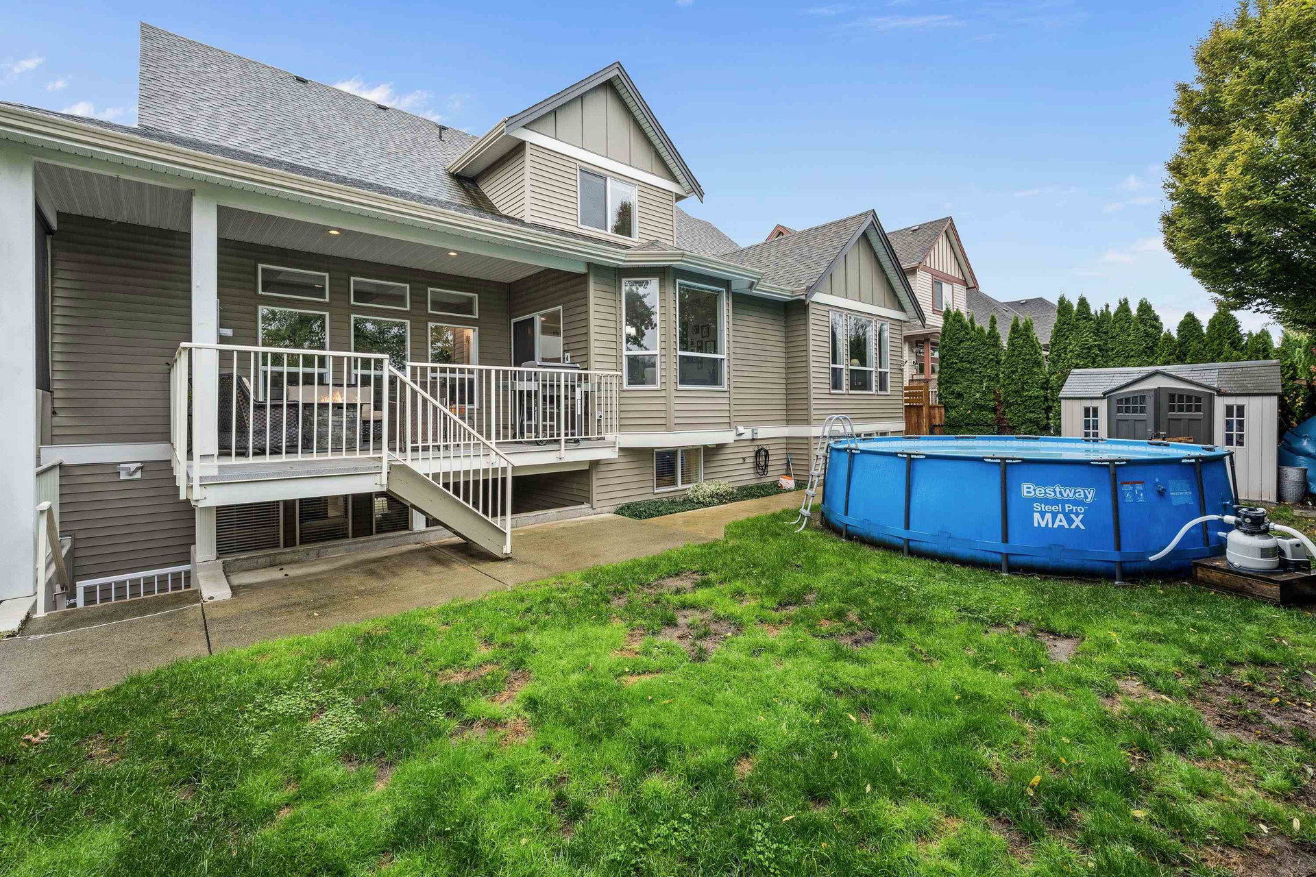 Incredible opportunity to own a RARE multi-generational home that is move-in ready in central SARDIS! This 4,074 sq.ft home features the perfect layout; Primary suite on MAIN, 3 bdrms UP, plus a 2 bdrm (& 2 Bthrm) + DEN in-law suite! Large lot w/ TRIPLE garage feat side bay w/18′ ceilings for the BOAT or HOIST! Welcoming vaulted foyer, bright office, lrge living room w/ coffered ceilings, & RENOVATED open concept kitchen w/ SS appliances, shaker cabinets, quartz counters, and walk-in pantry. Covered patio overlooking the private fenced yard with above-ground pool. Primary SUITE w/ 5 piece ensuite, spacious mud/laundry. Upper floor great for the teens – 3 Bdrms & full bathroom. Bright professional 1,509 sq. ft suite fit for the best of relatives – this is a sweet suite!