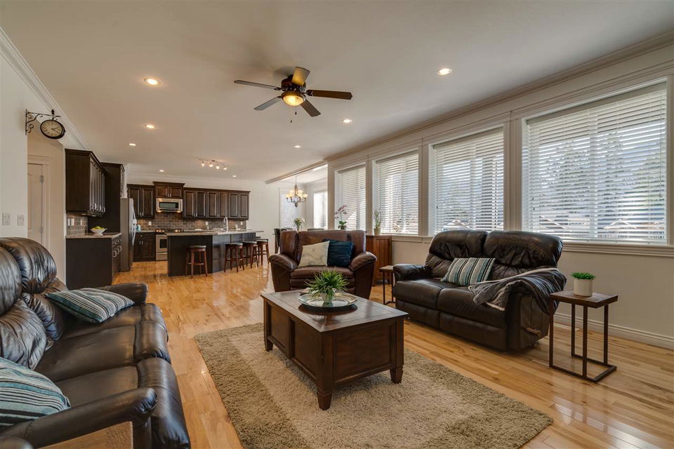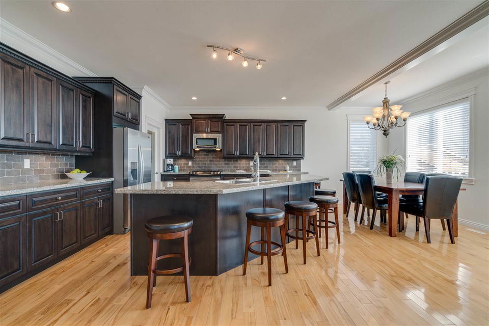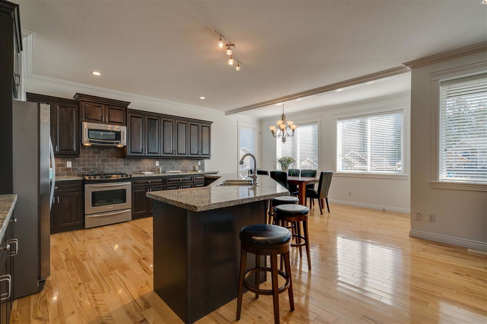 REMARKABLE 3695 sq ft HOME w/ QUAD GARAGE & RV PARKING! That’s right- 4 car garage AND room for 6 more out front! Sitting on a large FLAT lot w/ a south facing fenced backyard w/ 25×12 patio, this 4 bedroom & den family home has room for the WHOLE family + more! Open concept BRIGHT kitchen with 4 person eating bar, maple cabinets, large walk in pantry, SS appliances, GRANITE counters, & a lovely tiled backsplash. Vaulted foyer w/ slate floors, hardwood on main & fresh designer paint throughout. 4 LARGE BEDROOMS UPSTAIRS incl master suite w/ full ensuite & large walk in closet. Fully finished bsmt has seperate entry & is set up with a MEDIA ROOM, flex area, & full guest bathroom. Floorplans & additional photos avail- call today!