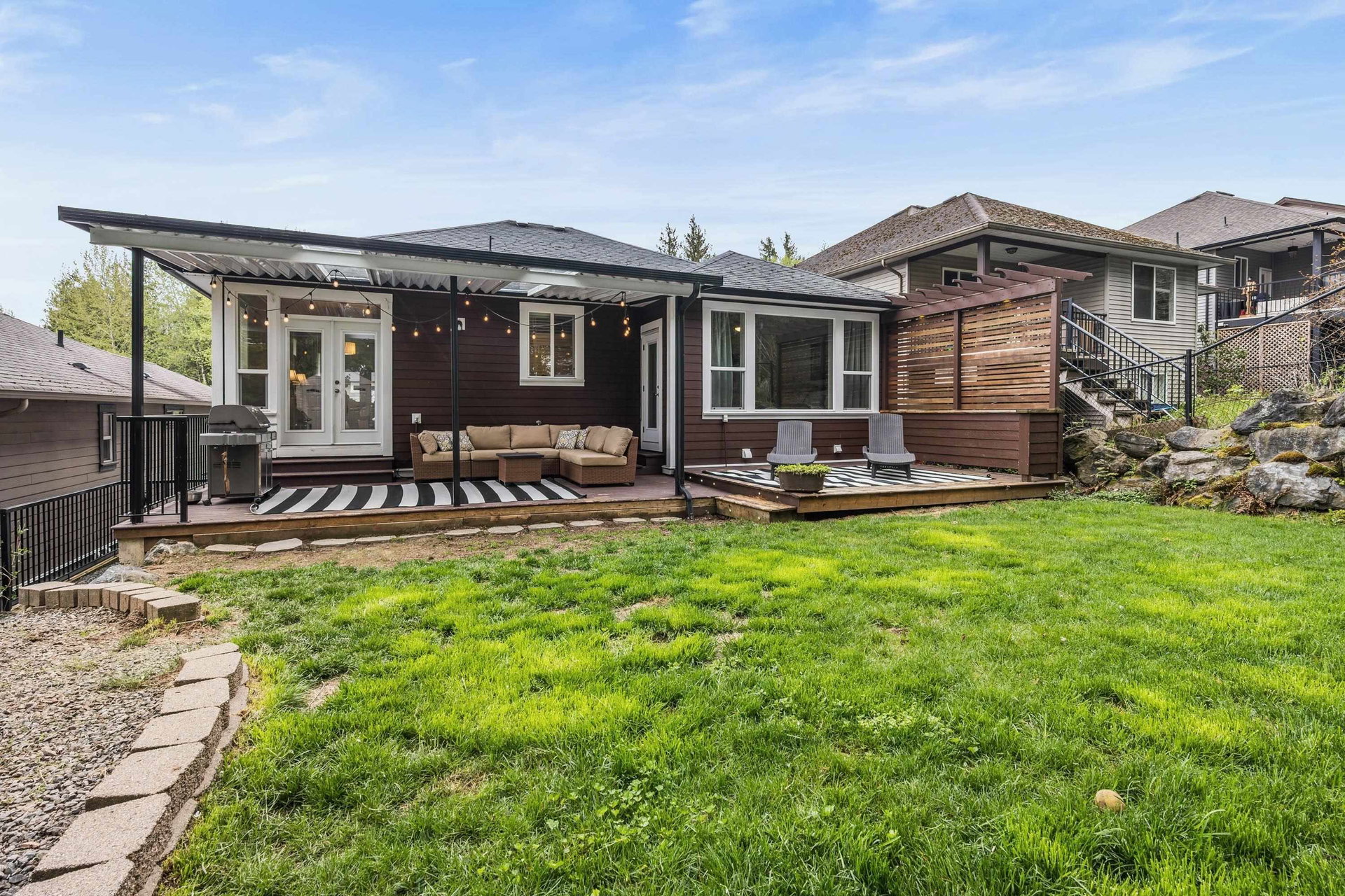 IMMACULATE 5 bdrm MODERN family home in the prestigious area of Bear Creek on family friendly PROMONTORY! Backing GREENSPACE & has a beautiful 1 bdrm BRIGHT ground level suite fit for a queen! This nearly new stunner is a perfect layout- main floor offers 3 large bedrooms, gorgeous white kitchen w/ granite, large great room w/ gas fp & front east facing patio w/ mtn views. HUGE manicured backyard accessed right off the dining room and master bdrm. Covered tiered cedar patio w/ gas BBQ outlet & b.i. lighting. Western sunset views through the trees over the valley- PARADISE FOUND! Over-sized double garage fits a truck w/ wide driveway for 3 cars. A/C. Fast possession possible for the new school year (5 min walk away!).