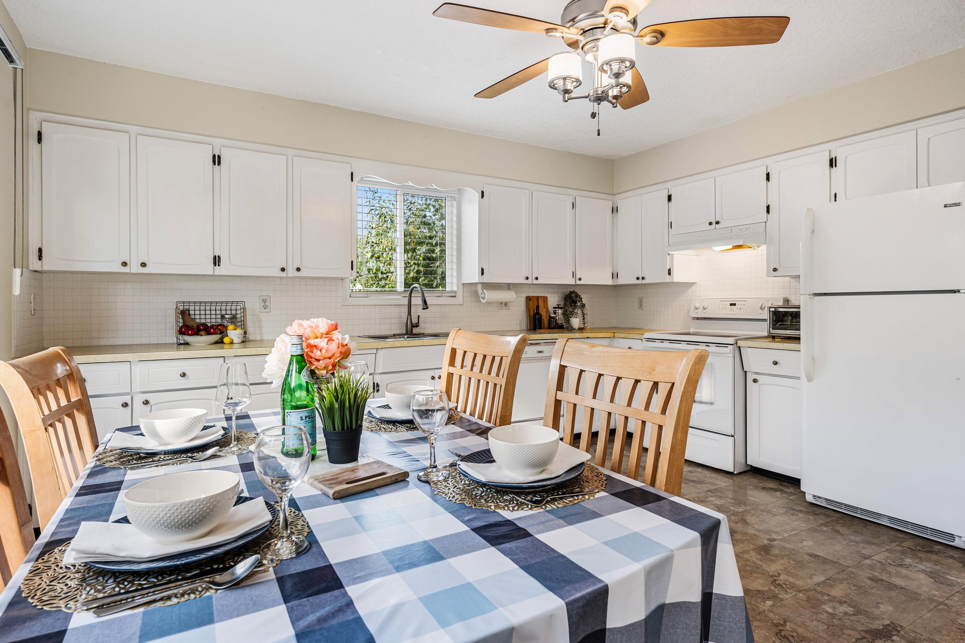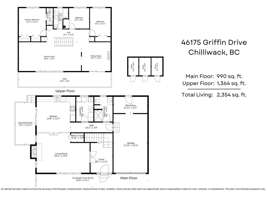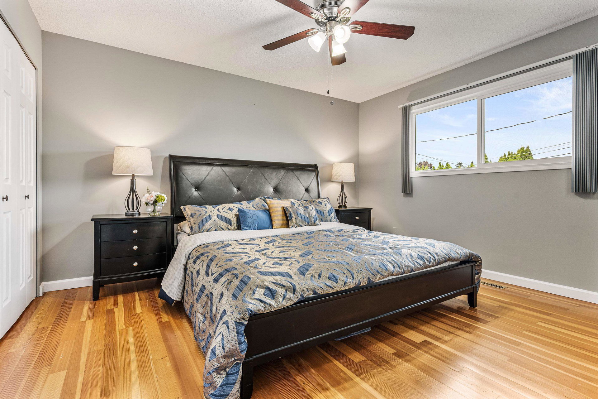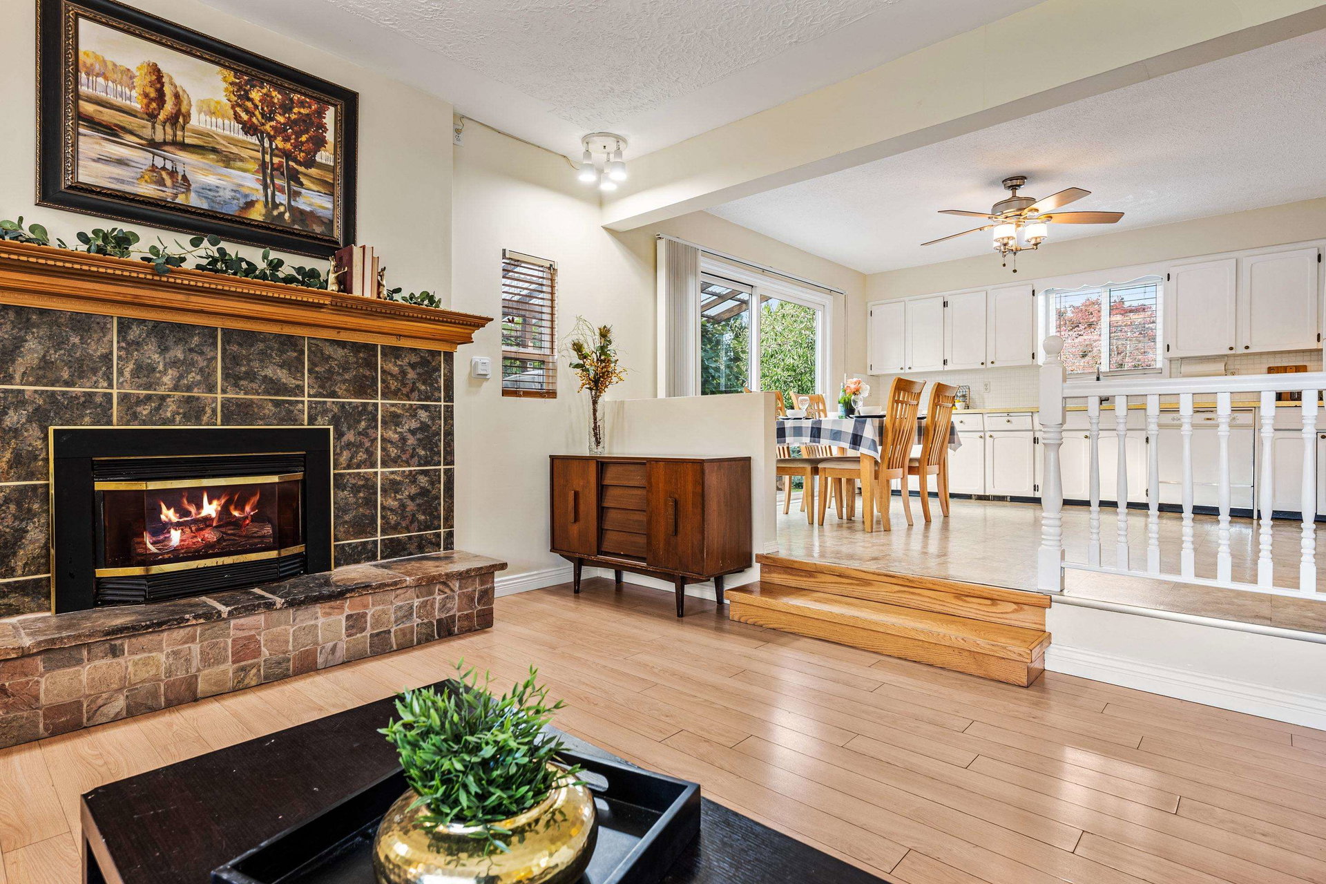 Sardis Park Gem! This 2354 sq ft home is a spacious 2 story home with 4 bdrms up, 2 large family rooms, & a large kitchen awaiting your ideas! Step right from the kitchen to a large side patio w/ grape vines & yard access! Cherry, peach, & plum trees- plus a lovely garden plot and mature privacy hedges. Welcoming foyer opens up to the family room w/ gas fireplace. Renovated modern washrooms on main & upper floor incl tiled walk-in shower. 2015 roof, 2008 furnace, 2020 HWT, & 2006 vinyl windows. Freshly painted upper floor & Central AC! Subdividable lot in a sought after quiet Sardis Park location! Steps to ALL levels of school, parks, & amenities!