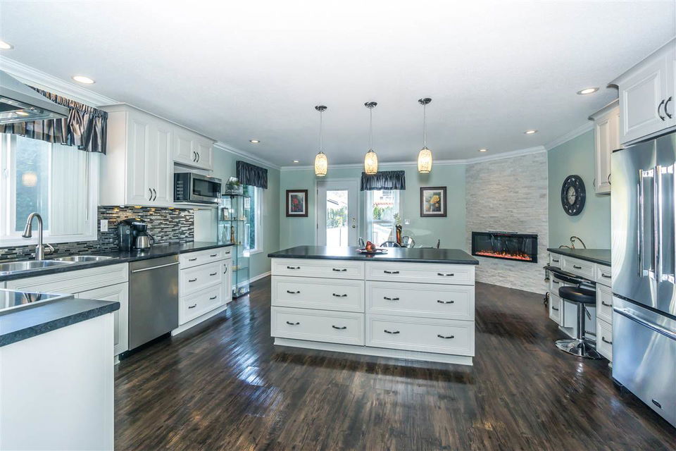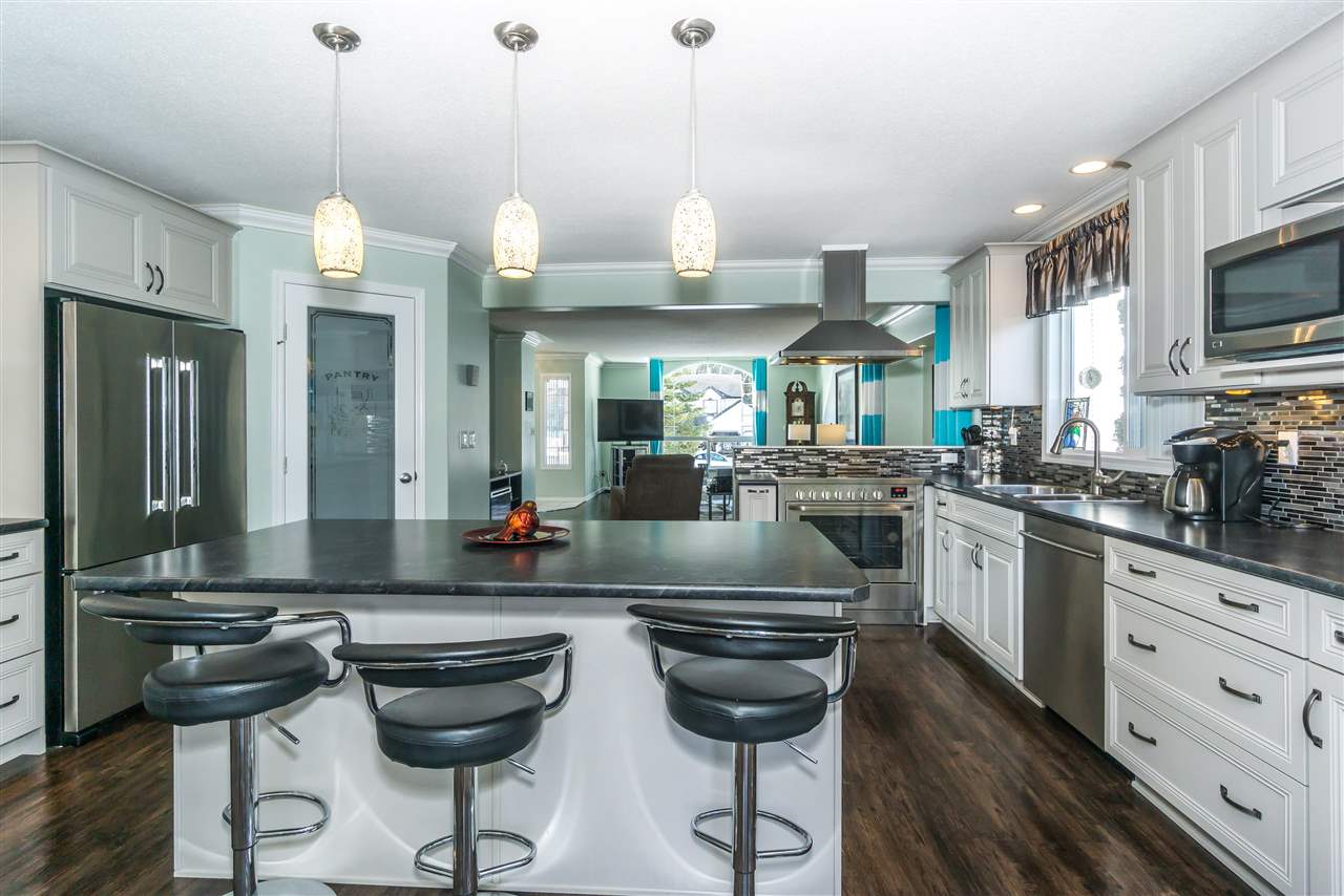 Renovated RANCHER w/ FULL BSMT SUITE + LOFT + Gated RV PARKING! This one of a kind home is situated on a LARGE 8364 sq ft FLAT lot on a quiet established CUL-DE-SAC. Open concept kitchen w/ Martha Stewart cabinets (pull outs, speciality drawers- the works!), high end European appliances, glass tiled backsplash, & under cab lights. HEAT PUMP A/C, vinyl plank flooring, floor to ceiling rock faced fireplace, crown mouldings throughout, & updated light fixtures. HUGE master suite w/ walk in closet & renovated ensuite. BRIGHT 2 or 3 bdrm bsmt suite (master w/ walk in closet) w/ sep entry, electrical panel, storage, & laundry! Fully fenced manicured yard w/ hot tub, shed, & pond! Double car garage & parking for 6 cars PLUS the RV!