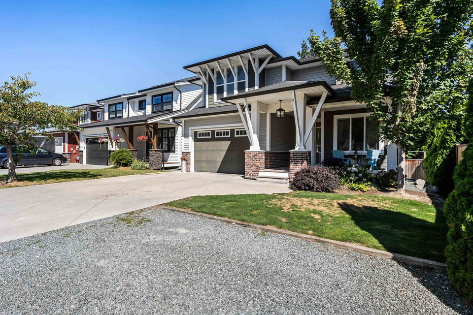 BEAUTIFUL 3600+ sq.ft home w/sep. entry 2 bed bsmt suite in the HEART of Sardis! Boasting SPACIOUS open concept living, this home has everything you need! Bright living room w/shiplap ceiling, stone faced gas f/p, & MASSIVE windows allowing AMPLE natural light throughout. A gourmet kitchen highlighted by a HUGE island w/eating bar, two-tone cabinets, SS appliances, & pantry. Relax OR entertain on the MASSIVE covered patio w/vaulted ceiling, chandelier, & yard w/storage shed. Upstairs you will find the primary suite w/W.I.C & luxurious ensuite feat. dual sinks, sep. soaker tub, heated floors, & GORGEOUS walk-in shower. 3 more large bedrooms up, incl. a ‘secret room’ – FAB! Not to mention, the bsmt suite is a GREAT mortgage helper! Tons of parking & a PRIME location – book before it’s gone!!