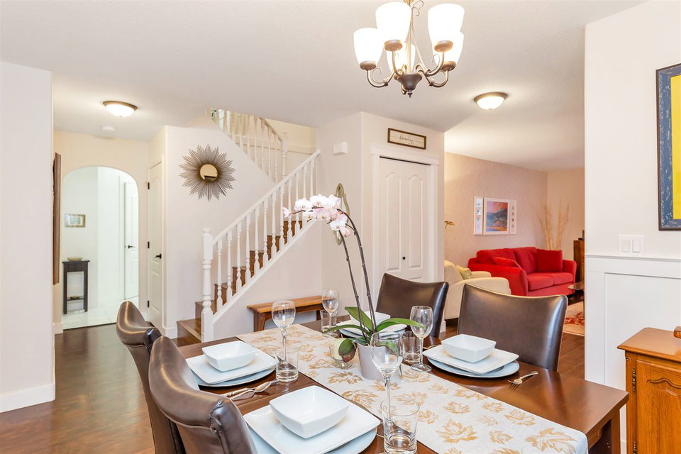 RENOVATED immaculate 3 bdrm and 4 bathroom END UNIT w/ WALKOUT BSMT in the popular complex of “Apple Creek” in beautiful Promontory. Stunning main floor w/ laminate & tile flooring, fresh paint, dual living rooms, & a BRIGHT updated kitchen w/ high quality SS appliances, new pantry, & updated flooring. Cozy family room w/ modern f/p & b.i. book shelving. Upper floor feat. 3 LARGE bedrooms, including a master suite w/ WALK-IN CLOSET & a freshly renovated 5 piece ensuite w/ dual vanities and large soaker tub. The FULLY FINISHED bsmt has a lovely WET BAR kitchen, large recreation space, & flex area that can easily accommodate a 4th bdrm. DOUBLE GARAGE, built in vac, & CENTRAL AIR CONDITIONING! Excellent complex w/ pets allowed (no rentals), & walking distance to parks & Promontory Elementary!