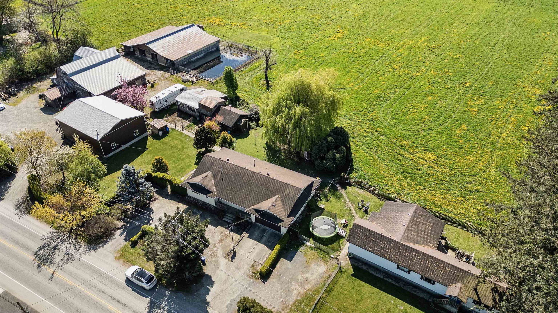 Fabulous 12.39 acre property featuring 2 HOMES & MULTIPLE OUTBUILDINGS including a massive 33 x 42 shop w/ mechanics pit. Ample parking with 3 access entries & 410′ of frontage- bring the LARGE TRUCKS and toys! Once an active dairy farm, there are 2 barns (one w/ 4 horse stalls & hayloft) w/ lean to storage, manure pit, & converted milking parlor set up as an office. PRISTINE LAND that has only been used for grass over the decades w/ southern exposure & great drainage. In addition, there are lovely gardens, privacy hedging, & shop suite perfect for the artisans. Main home features 3 bdrms, 3 bathrooms, attached double garage, & fantastic layout over 1672 sq ft. The secondary mobile home is 3 bdrms and 1 bathroom with private fenced yard and fabulous tenants that would love to stay!