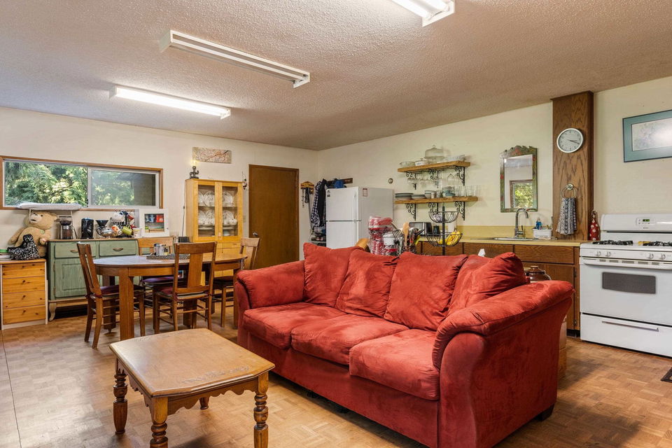 PRIVATE 4.62 acre parcel on the quiet dead end street of VOIGHT ROAD in picturesque Ryder Lake. This home has been lovingly maintained and updated over the decades by the same owners! Quaint 3 bedroom and 2 bathroom RANCHER with ample storage, large living space w/ gas fireplace, & TONS of character. Side family suite w/ open concept kitchen/living with 1 bdrm & full bathroom. Fantastic layout for multi-generational families and those who need a level entry suite (or BnB!). There is a LARGE DETACHED BARN w/ hay loft & cold cellar, PLUS a detached shelter fabulous for millwork, artisans, or added parking. With 666 sq ft of FRONTAGE, there are multiple entries for access, parking, and building! Enjoy the fantastic SOUTHERN mountain views, frolic in your personal forest, & enjoy nature!