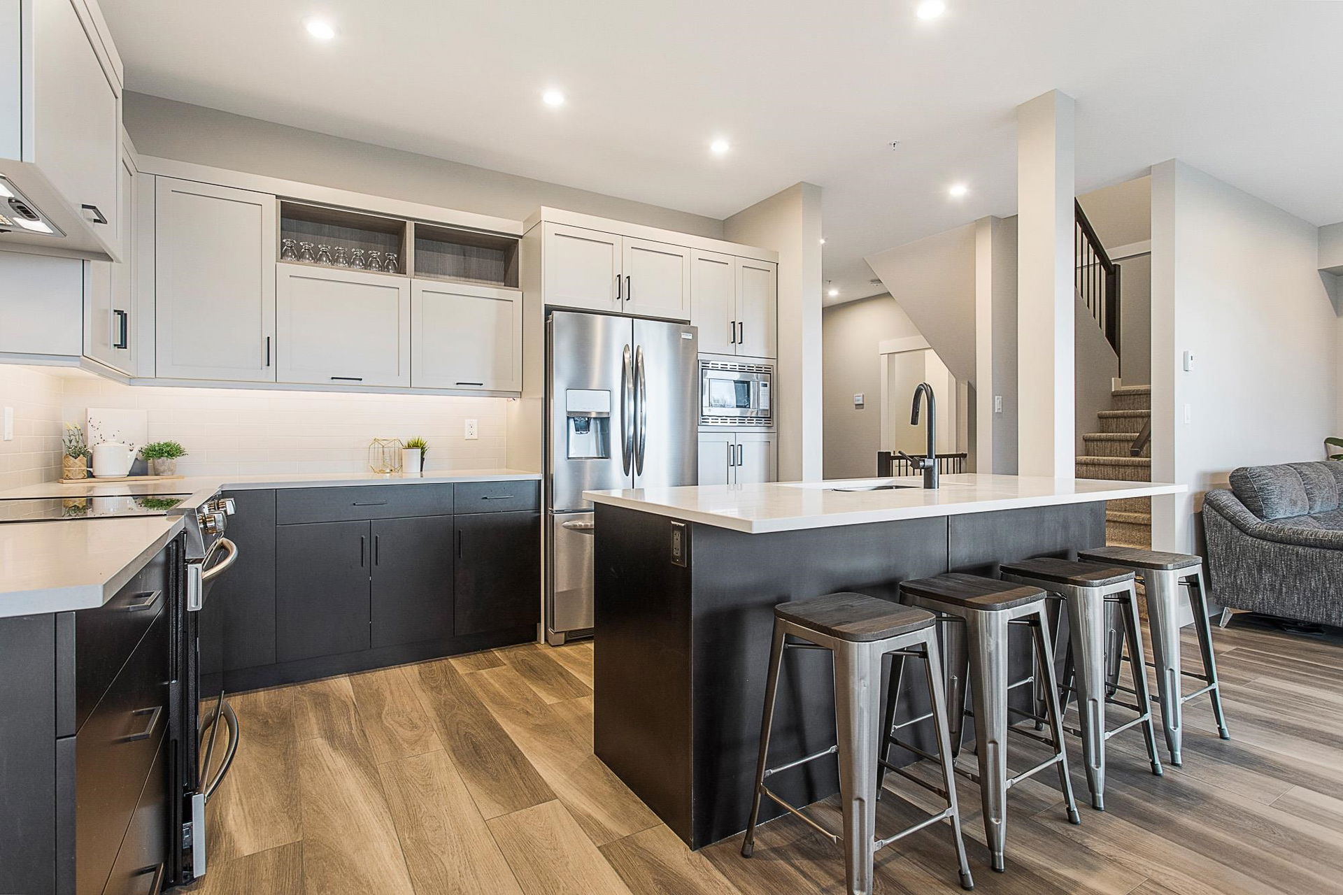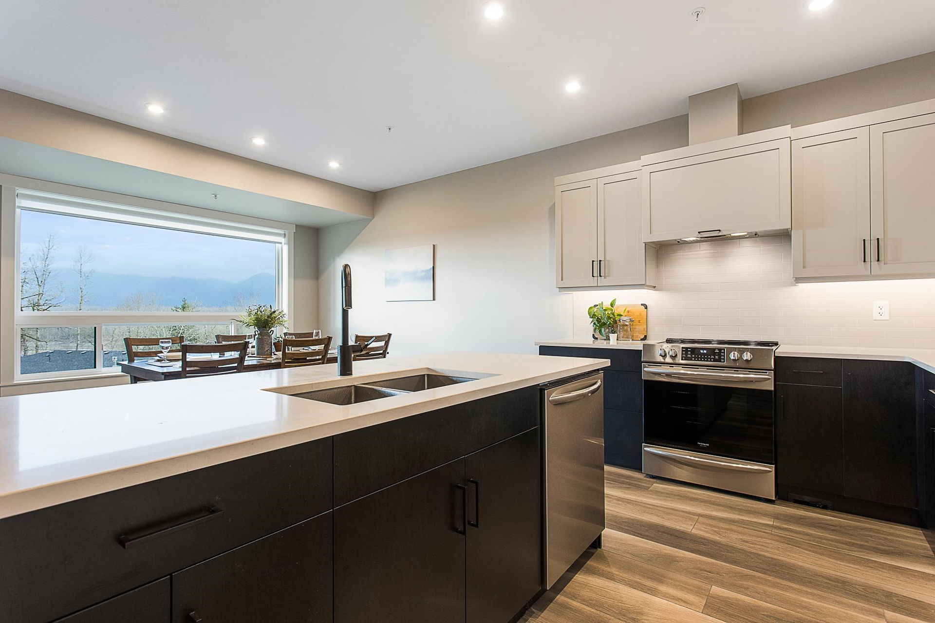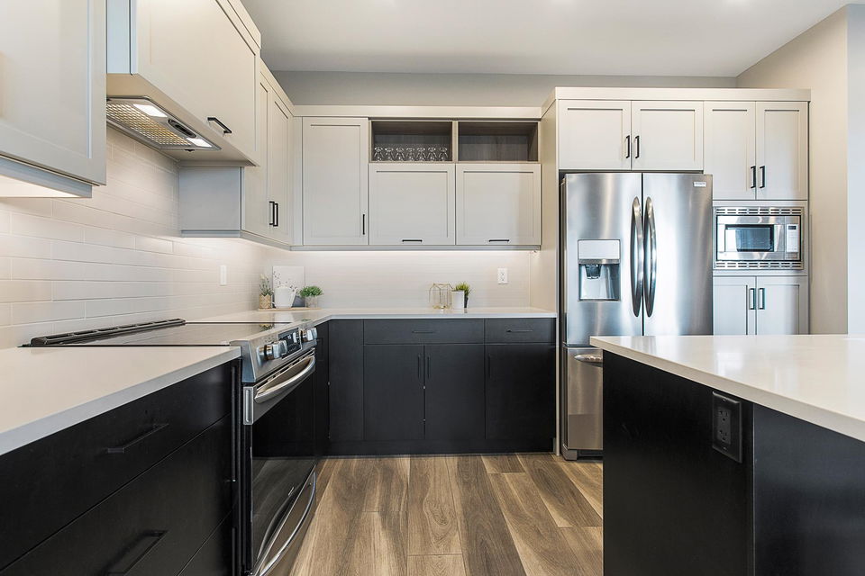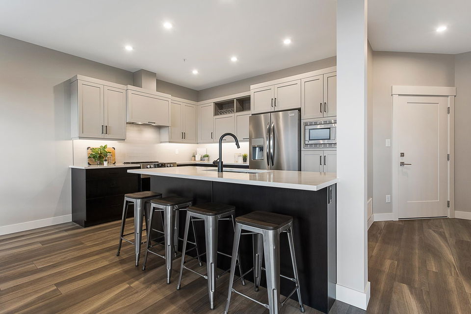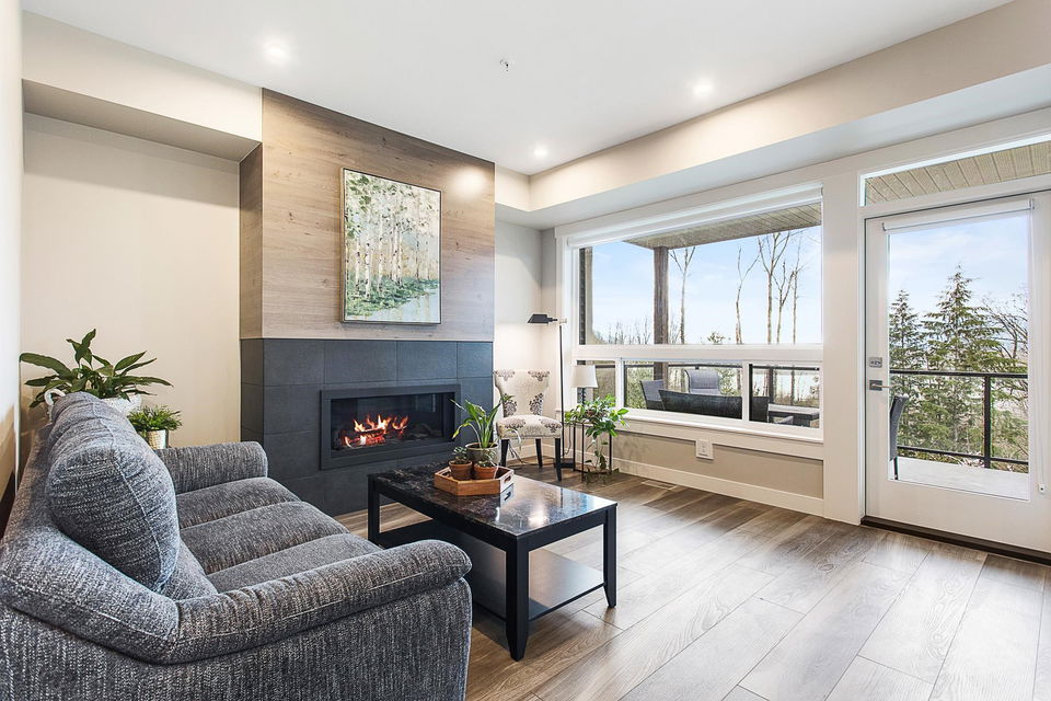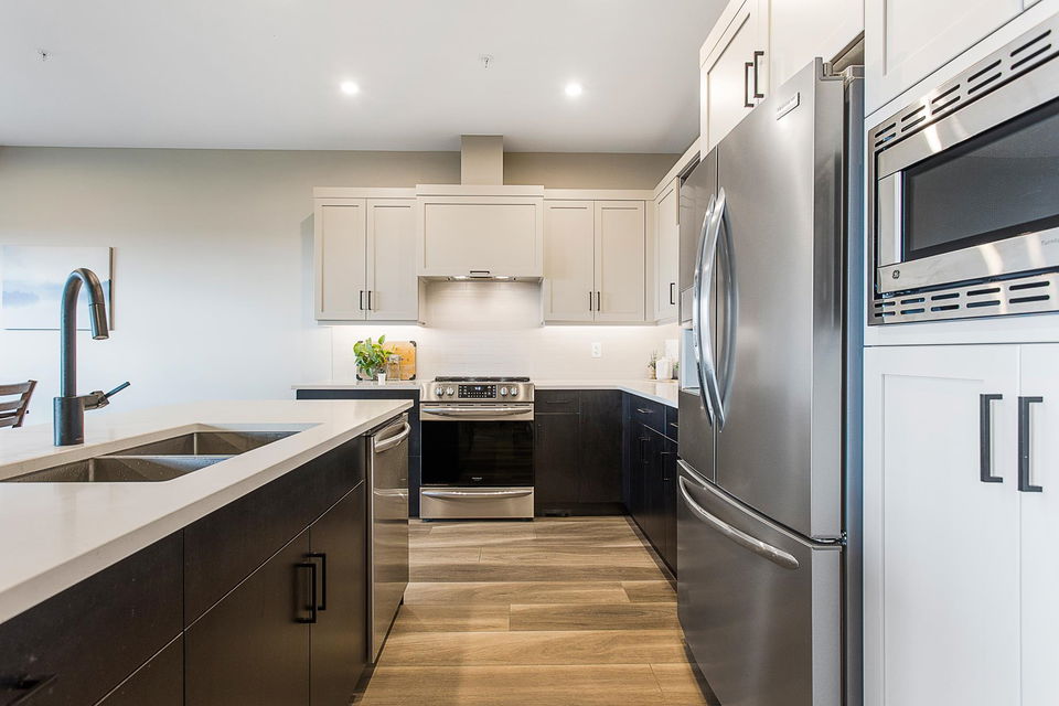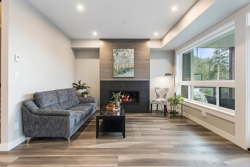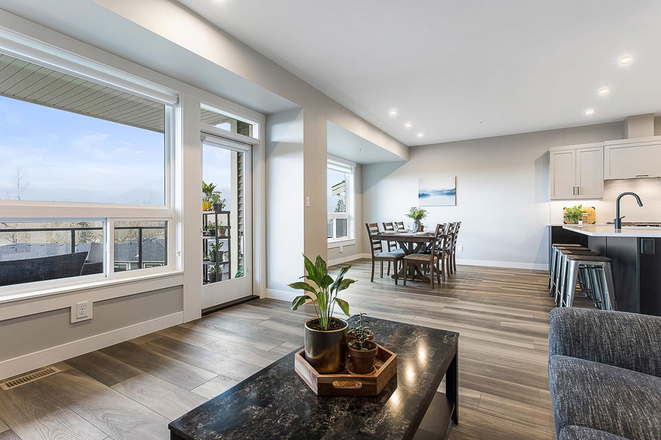 RIVER VIEWS! One of THE BEST LOCATIONS in the complex with gorgeous clear river sunset views! Backing onto the park & greenspace, this 4 bdrm & 4 bathroom nearly NEW townhome awaits! Built in 2020, the finishes are modern & stylish, including vinyl plank flooring, quartz counters, flat panel cabinets, & linear fireplace. Main floor w/ open concept kitchen w/ SS appliances, dining area w/ VIEWS, & a spacious living room w/ access to COVERED PATIO. Upper floor w/ grand master suite feat. PRIVATE SUNDECK, walk-in closet, & beautiful ensuite. The bsmt is BRIGHT & has a rec room w/ lower patio access (walkout!), 4th bdrm, FULL bathroom, & storage room. Double car garage & long driveway for a truck! Quality Built + AMAZING VIEWS!