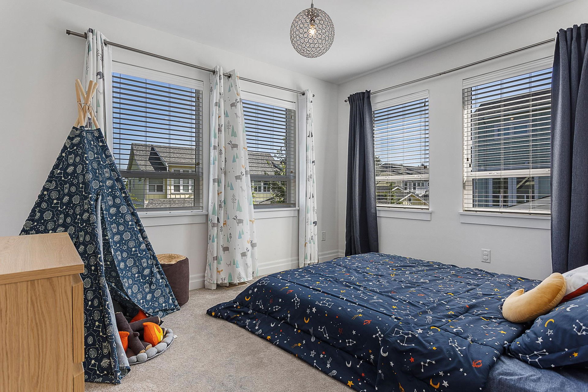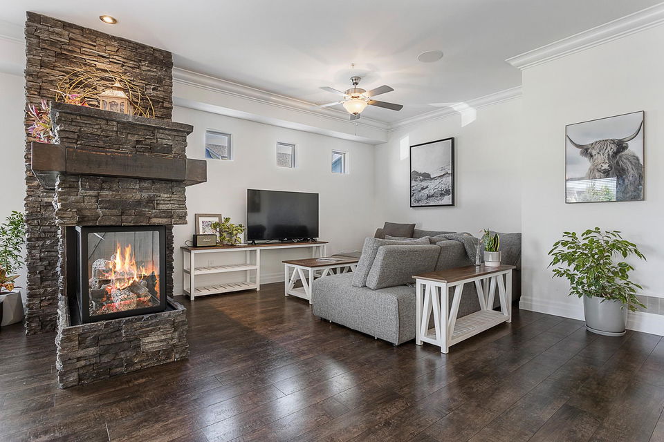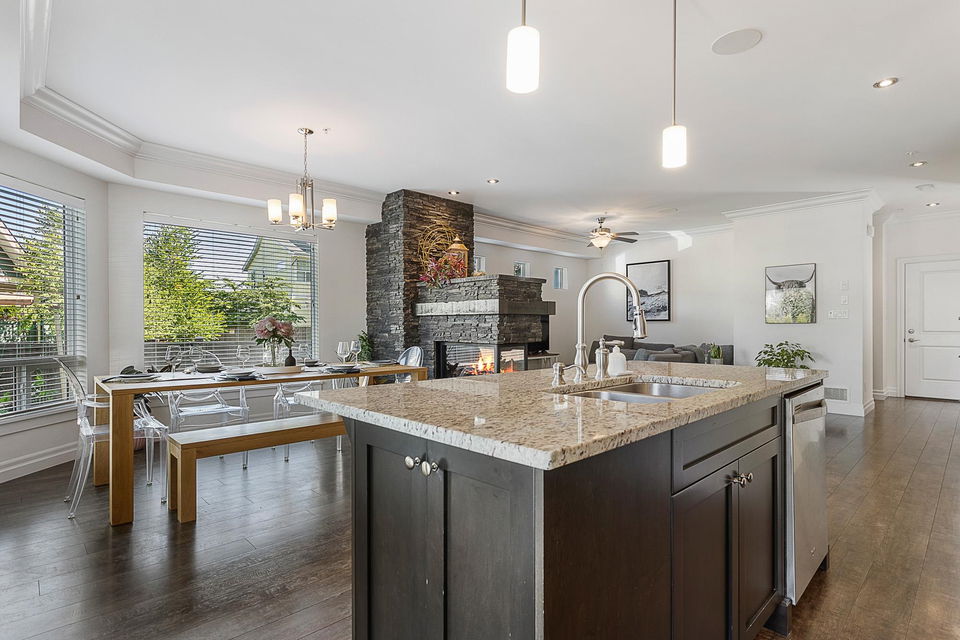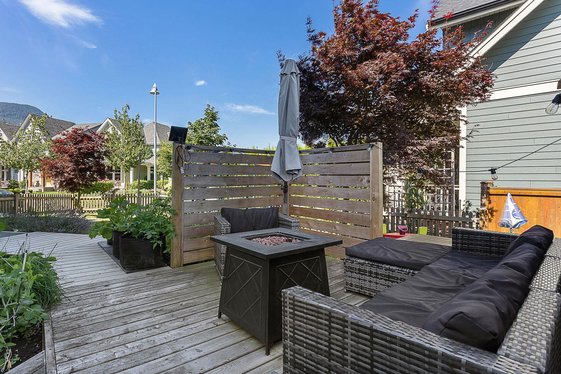 RIVER’S EDGE END UNIT! This is one if the BEST LOCATIONS in the complex with the BIGGEST FENCED YARD featuring an extended patio, gardens, & SUNNY southwestern exposure! Unit 5 has a DOUBLE GARAGE, central AIR CONDITIONING, b.i. vac, & a FULLY FINISHED BSMT! Open concept main floor w/ 3 way rock faced fireplace, beautiful kitchen w/ quartz & upgraded SS appliances incl gas range, & large living & dining areas. 3 bdrms upstairs w/ an AMAZING MASTER SUITE feat vaulted ceilings, custom w.i. closet, & ensuite w/ walk-in shower. Bsmt w/ media recreation room, storage room, guest full bathroom, & 4th brm w/ w.i. closet. STEPS to the Vedder River, & teh BRAND NEW Stitó:s Lá:lém Totí:lt Elementary / Middle School! Pets and rentals welcome- this is the most sought after complex in the area!