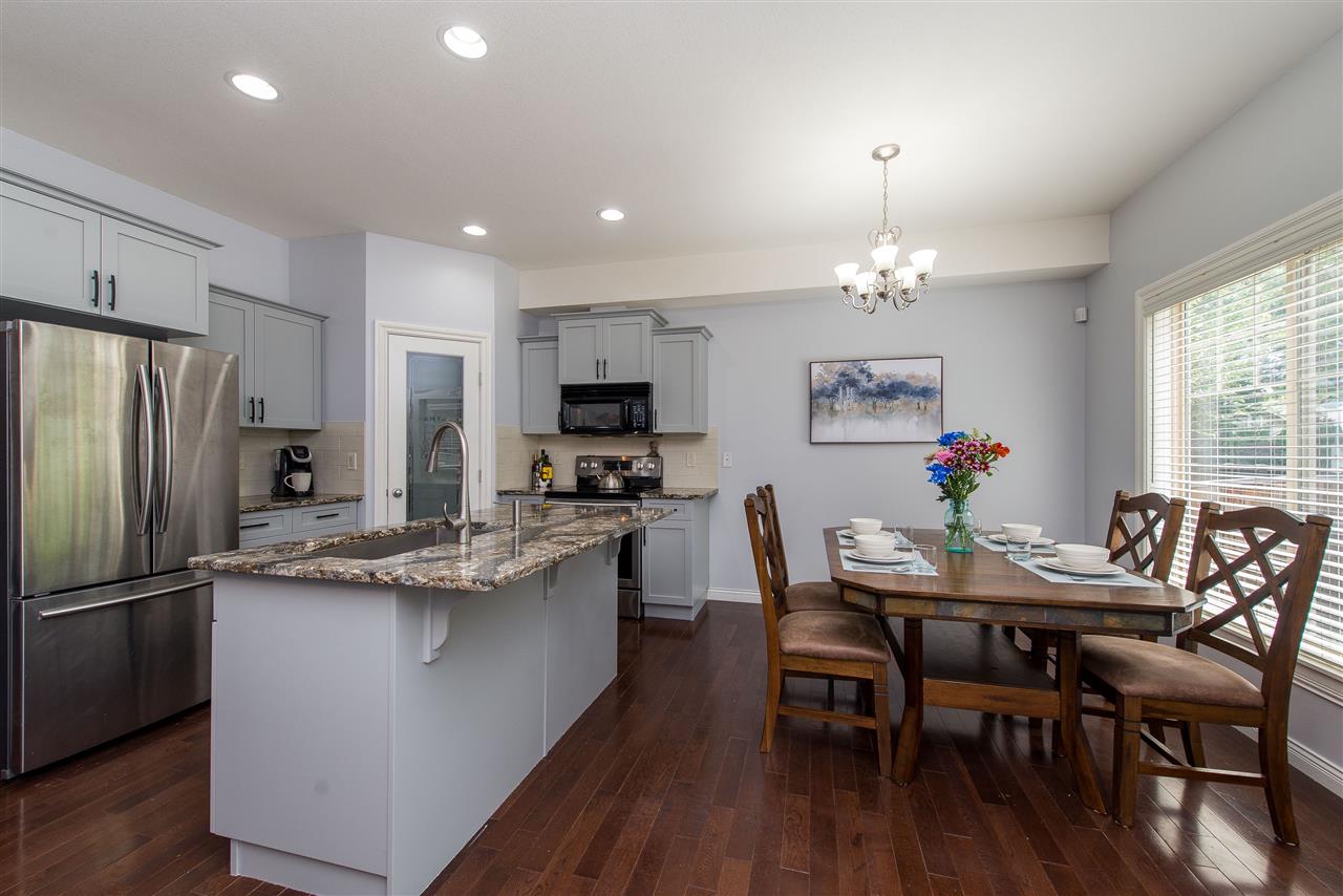 END UNIT 4 bdrm, 4 bathroom TOWNHOME steps to GARRISON CROSSING! This centrally located family & pet friendly family complex is a perfect home to raise your family & features lots of great UPGRADES! Keep cool this summer with CENTRAL A/C, enjoy the modern FRESH PAINT & newer QUARTZ kitchen counters. Open concept kitchen w/ STAINLESS STEEL appliances, grey cabinets, tiled backsplash, & corner pantry. Step DIRECTLY out the main floor to your private FENCED BACKYARD w/ concrete patio area, artificial turf, & flower beds- amazing for the pets & kids! 3 bedrooms up including the SUPERSIZED MASTER SUITE w/ private ensuite & walk in closet. Finished bsmt w/ 4th bdr, rec room/media room, & lots of STORAGE. Dbl car garage & LONG DRIVEWAY for those trucks! Rentals not allowed, strata fee is $225.