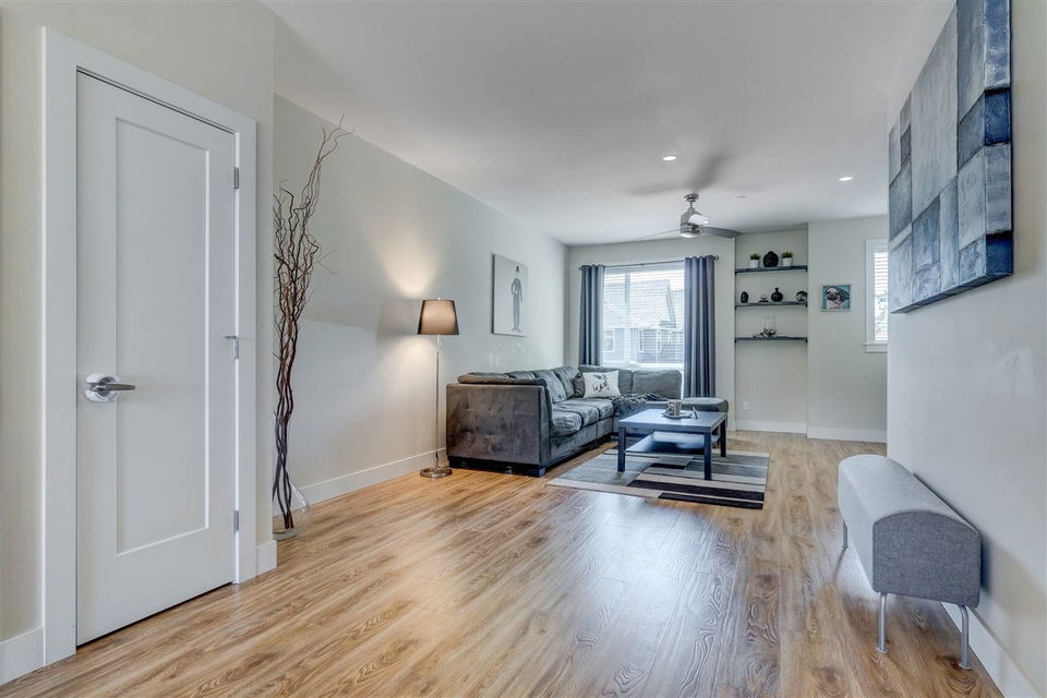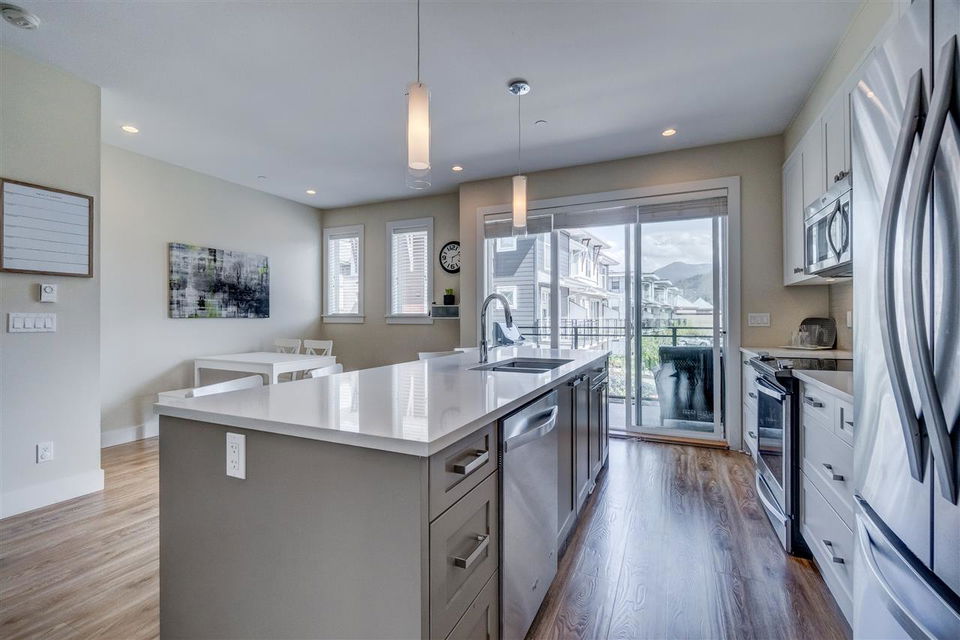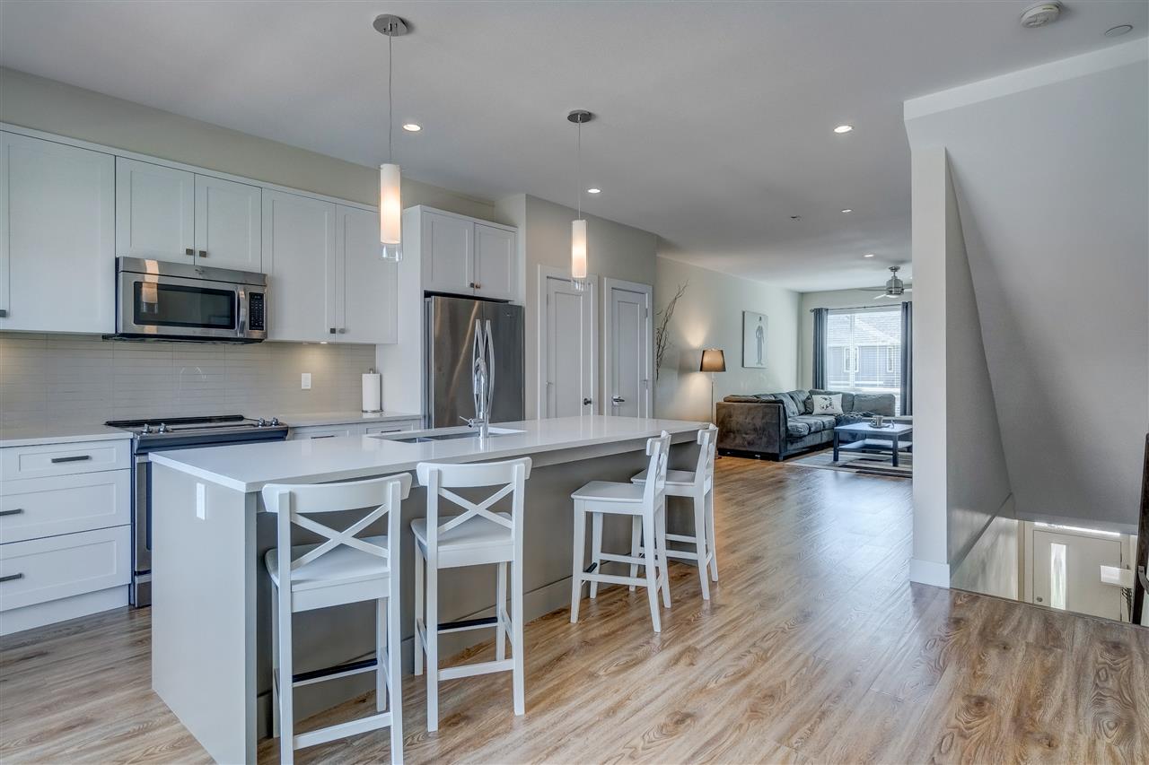 GARRISON CROSSING! Steps to the famous Garrison Village with shopping, dining, & ample activities for all- this NEARLY NEW 3 bedroom townhome is perfect for anyone looking for MOVE-IN-READY. Modem and chic, the finishes are amazing- high quality laminate flooring, 2′ faux wood blinds, designer fixtures, quartz counters, & more! Main floor features an open concept BRIGHT kitchen w/ access to a lovely view patio. The upper level has 3 bedrooms w/ a master featuring a private ensuite w/ large walk in shower. Rare find … DOUBLE GARAGE w/ FULL DRIVEWAY! Great private location within the complex w/ ample visitor parking & beautiful views of the tree lined streets & park. Rentals and pets welcome- this is a great investment and starter home alike- DON’T DELAY! Best priced home in the complex!