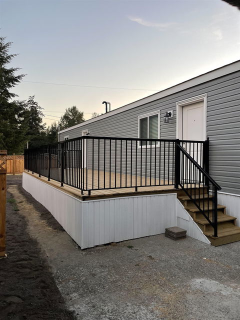 Nestled in Nestled in the picturesque Chilliwack River Valley, only a 5 minute walk to the river and world class fishing, & an 8 minute drive to shopping@ Garrison Crossing! This is your chance to live in a brand new 2 bdrm & l bathroom 924 sq ft 2022 moduline home!! Open and airy feel with upgraded vinyl flooring throughout, stylish appliances and in-suite full size laundry. Large bathroom w/ tub/shower combo. Propane forced air heating. Relax on the massive 10 x 32 foot deck while enjoying the views of the surrounding mountains and soaring eagles. The large yard will be landscaped and ready for enjoyment late this summer! Room to park 3+ vehicles, this 19+ age park rarely comes available. RV/trailer/boat parking available. Pet friendly. NO rentals. Note; finishing work in progress, to