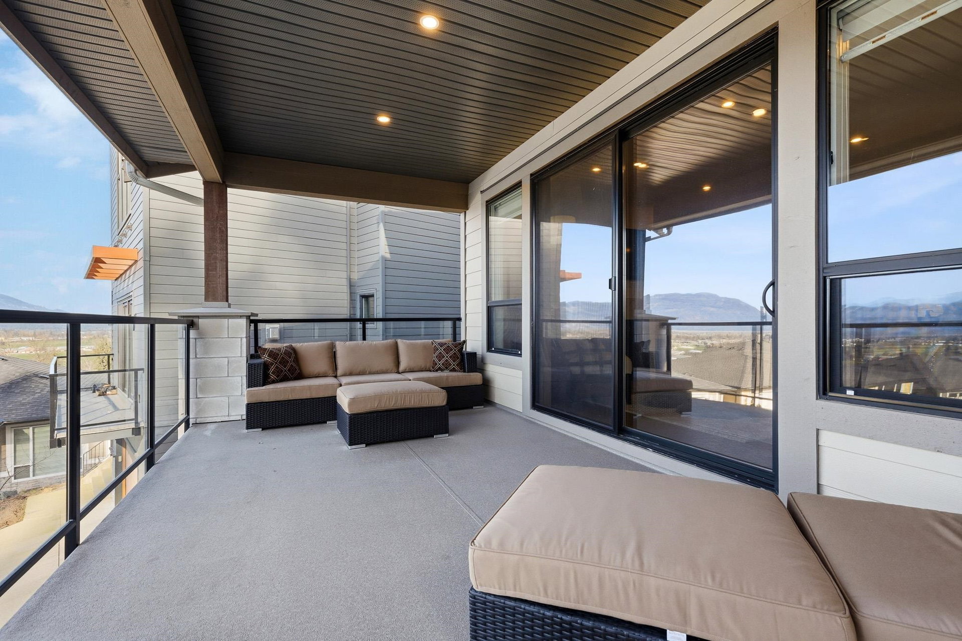 Stunning 3 storey home in prestigious Sunridge Estates w/ sweeping VALLEY VIEWS! This mint condition 4 bed, 3 bath home plus office/den offers a spacious layout perfect for living & entertaining. The kitchen features upgraded Spanish granite countertops & modern stainless steel appliances, opening up to the living room w/ a Valor fireplace & access to the large covered front patio w/ breathtaking valley sunsets! Enjoy year round outdoor living on the IMPRESSIVE 40×25 covered patio w/ tile floors & WOOD BURNING FIREPLACE! Three spacious bedrooms UP incl. massive primary bedroom w/ luxurious ensuite & w/i closet. Lower level features a large recreation/media room, full bath & fourth bedroom. Central A/C, extra large garage (fits a truck!), quick access to HWY 1 & endless outdoor recreation!