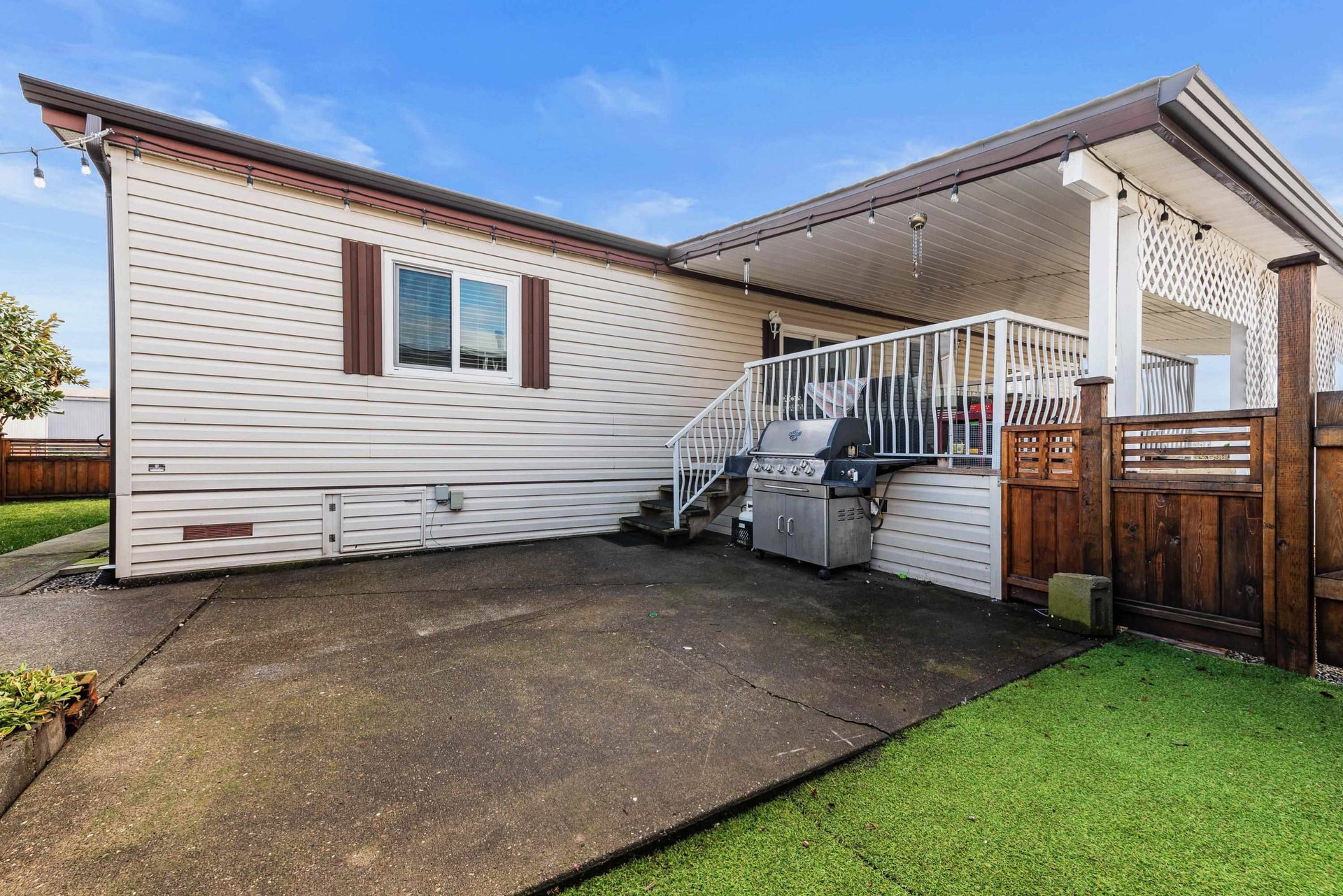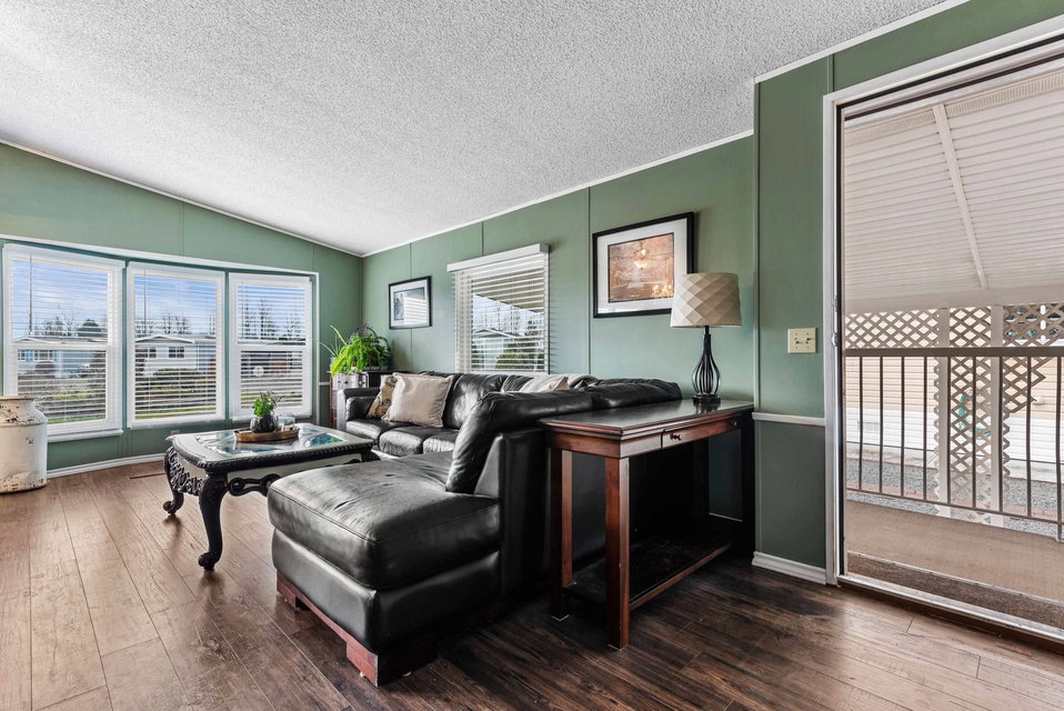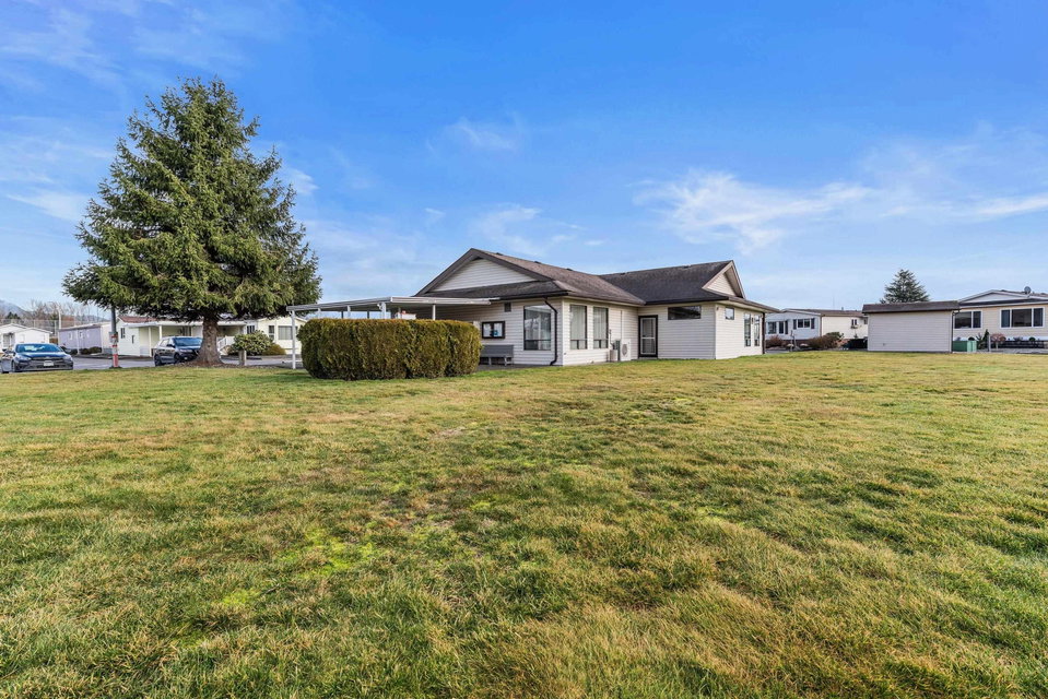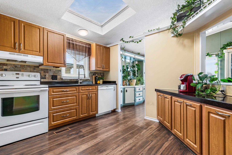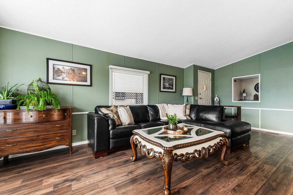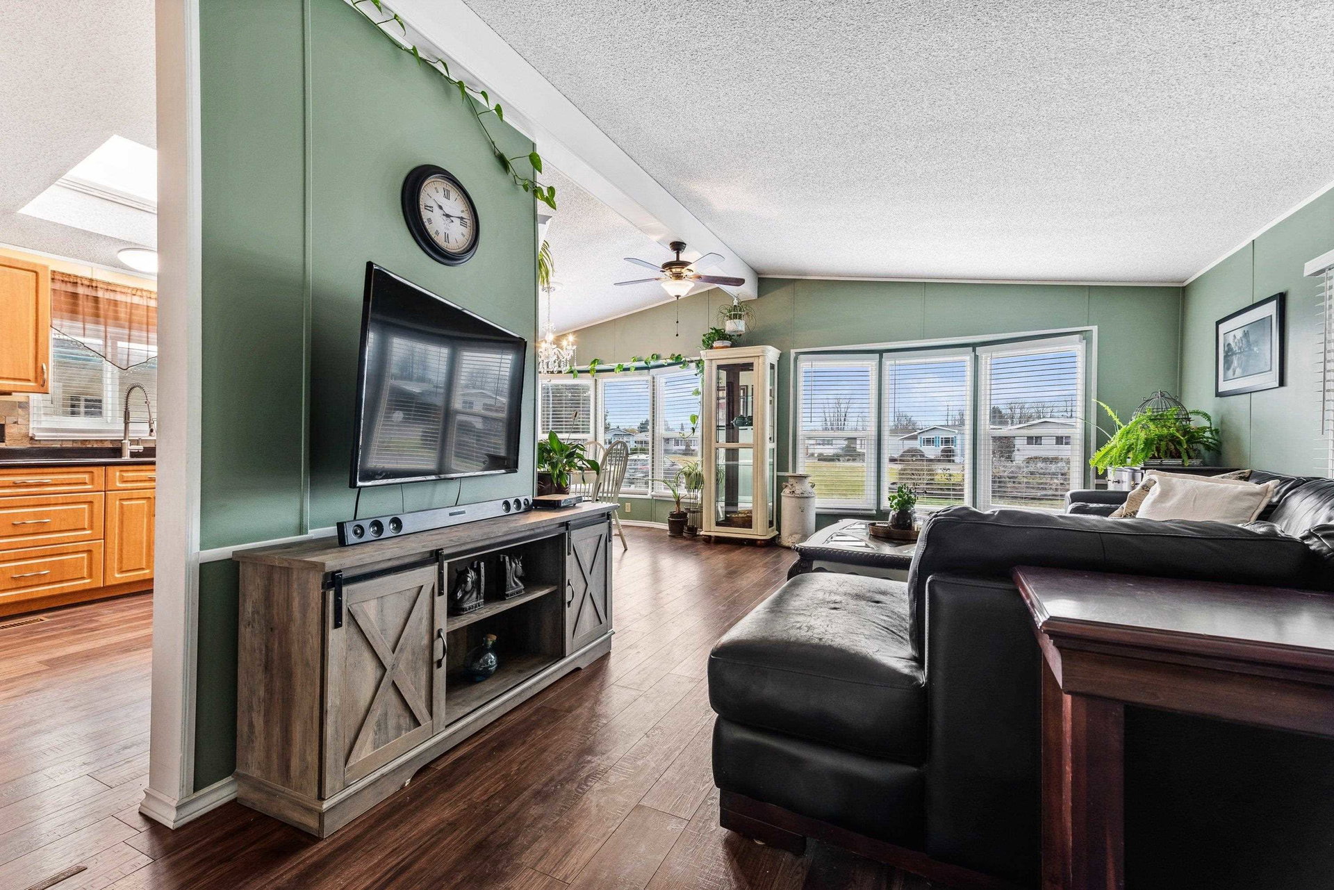 FABULOUS LOCATION in sought after RAINBOW ESTATES! This HUGE 1430 sq ft 2 bdrm plus den home is BRIGHT and has views of the southern mountains & greenspace in front! Upgraded throughout and TOTALLY MOVE-IN READY! Vinyl windows, updated flooring, modern paint, remodeled kitchen w/ nice cabnitry, & 2 renovated bathrooms. Lovely double wide layout w/ spacious kitchen w/ cut out into the living room. Master bdrm w/ private ensuite & ample closet space. Flex/.office space leads to an AMAZING 11×11 covered patio w/ access to the FULLY FENCED BACKYARD w/ powered 10×11 shed! Enjoy the afternoons & sunsets from the patio; the perfect place to sit & relax! Carport w/ dbl wide driveway. Central A/C. Complex RV parking, clubhouse, 40+ age restrictions, small dogs welcome. Only $220/month!