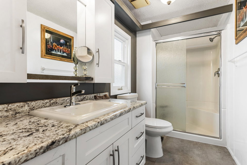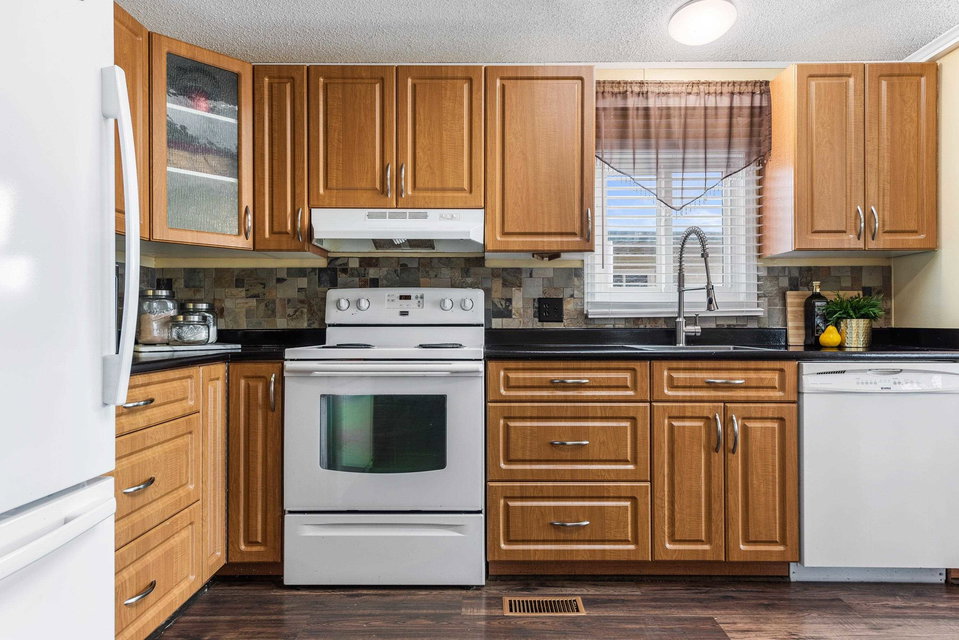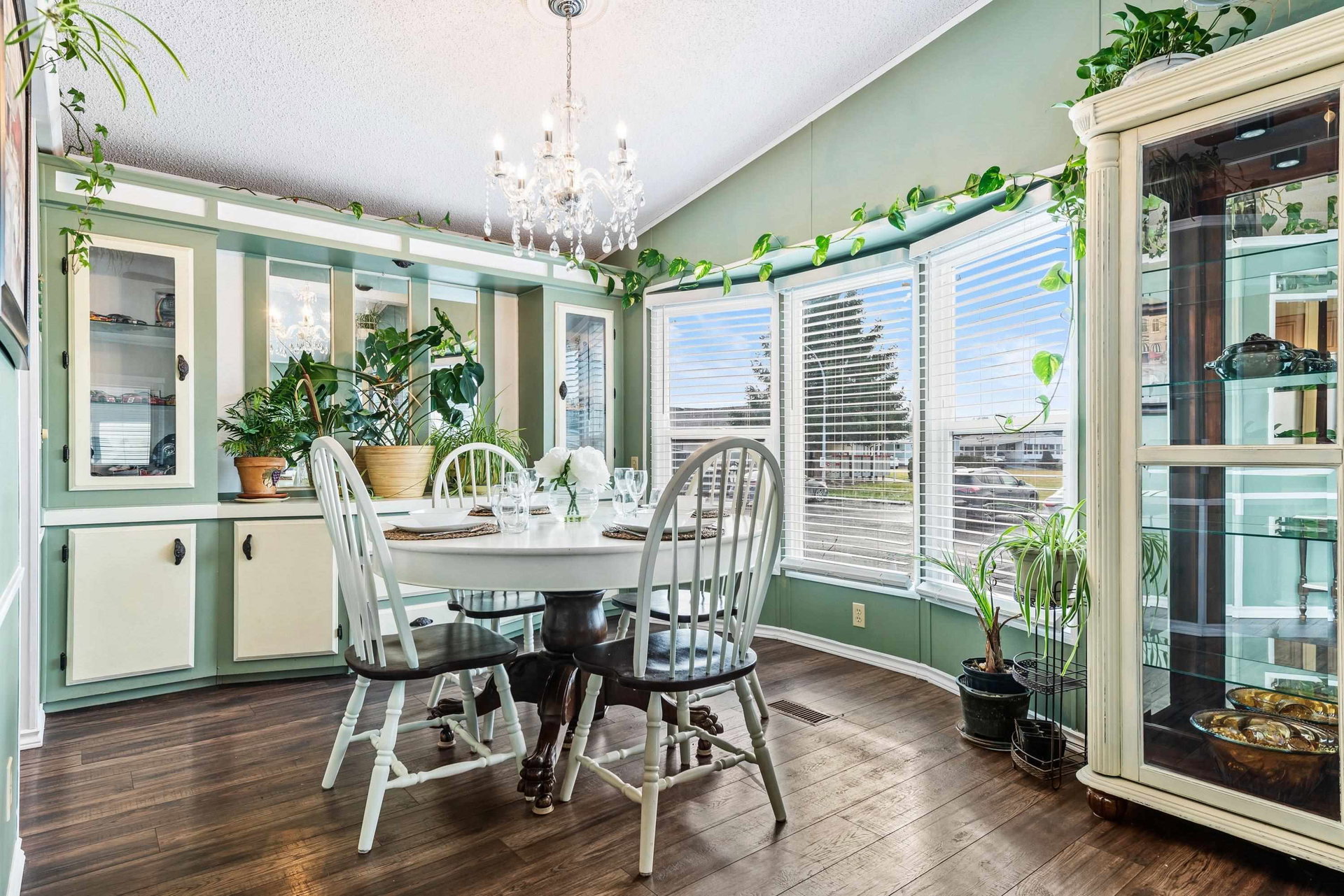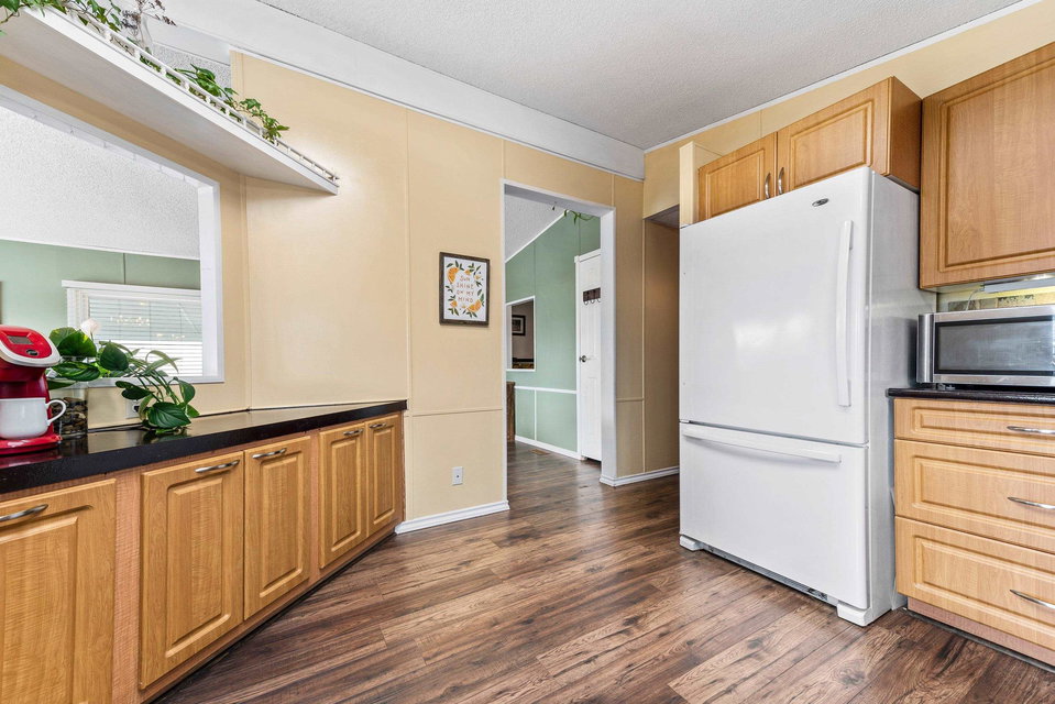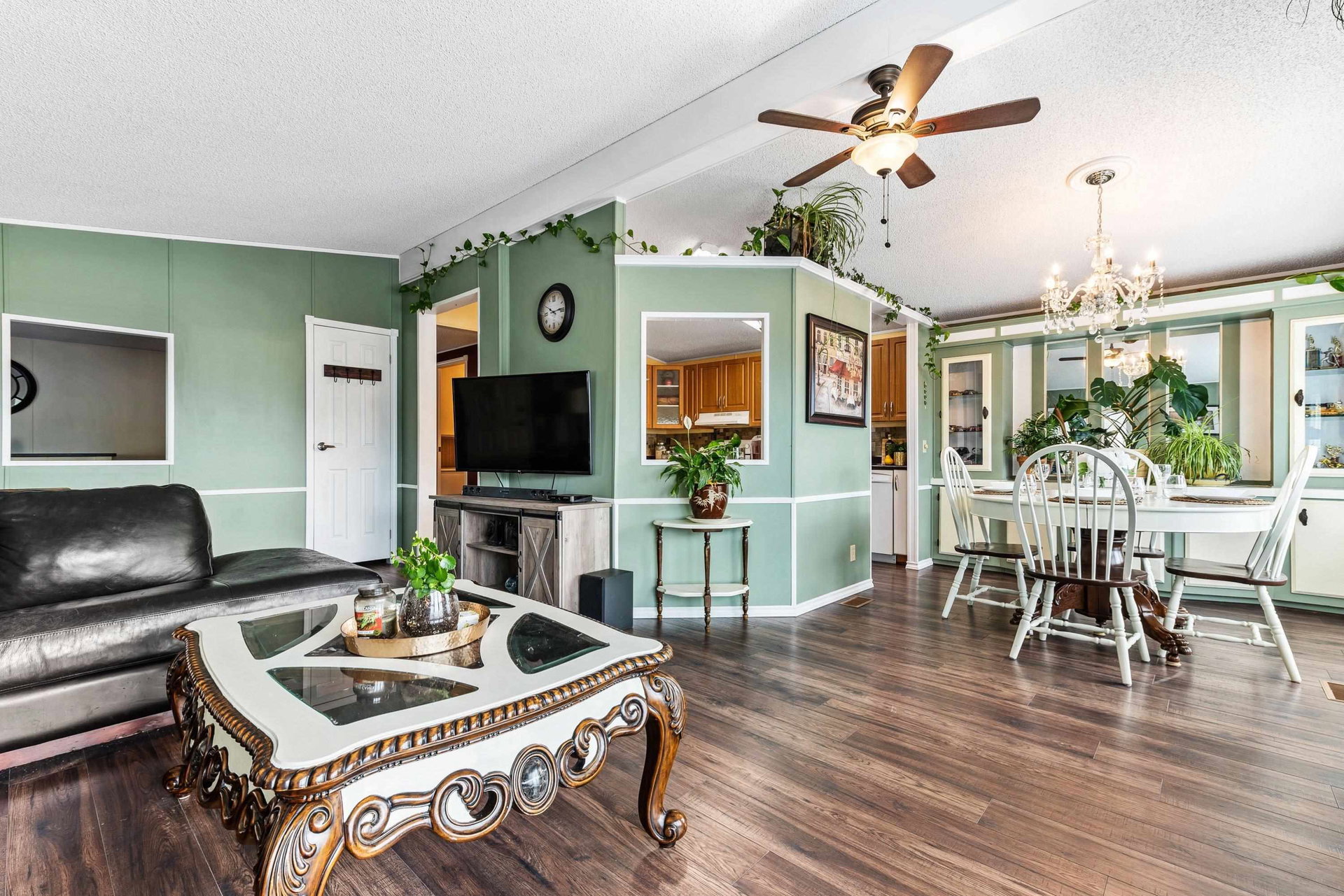 FABULOUS LOCATION in sought after RAINBOW ESTATES! This HUGE 1430 sq ft 2 bdrm plus den home is BRIGHT and has views of the southern mountains & greenspace in front! Upgraded throughout and TOTALLY MOVE-IN READY! Vinyl windows, updated flooring, modern paint, remodeled kitchen w/ nice cabnitry, & 2 renovated bathrooms. Lovely double wide layout w/ spacious kitchen w/ cut out into the living room. Master bdrm w/ private ensuite & ample closet space. Flex/.office space leads to an AMAZING 11×11 covered patio w/ access to the FULLY FENCED BACKYARD w/ powered 10×11 shed! Enjoy the afternoons & sunsets from the patio; the perfect place to sit & relax! Carport w/ dbl wide driveway. Central A/C. Complex RV parking, clubhouse, 40+ age restrictions, small dogs welcome. Only $220/month!