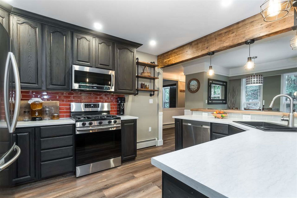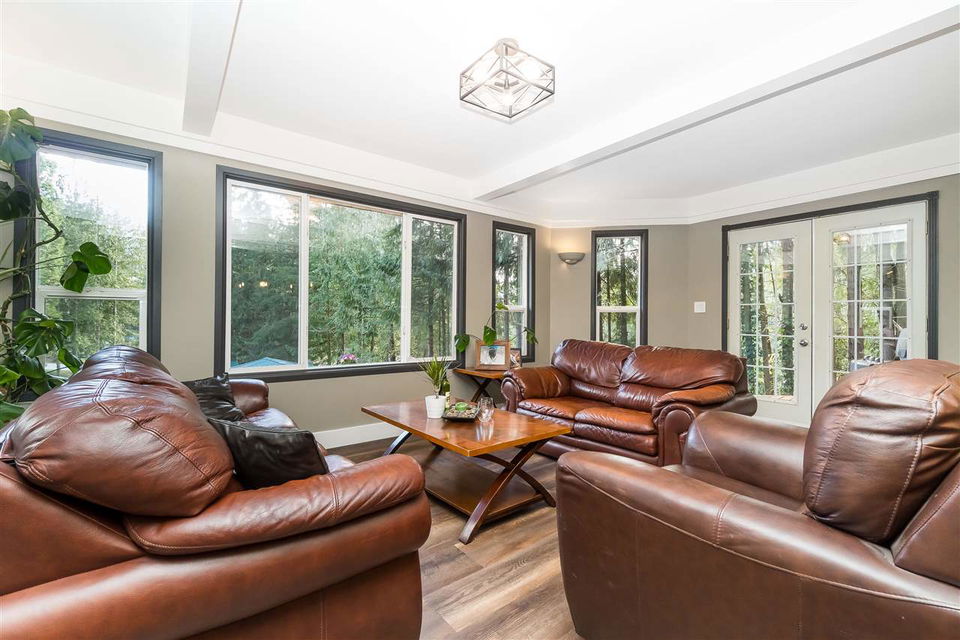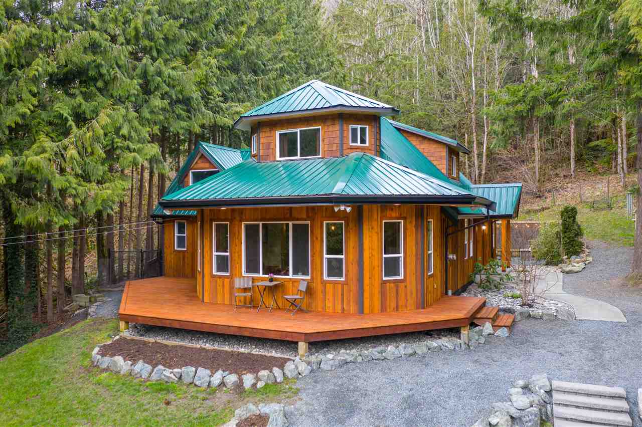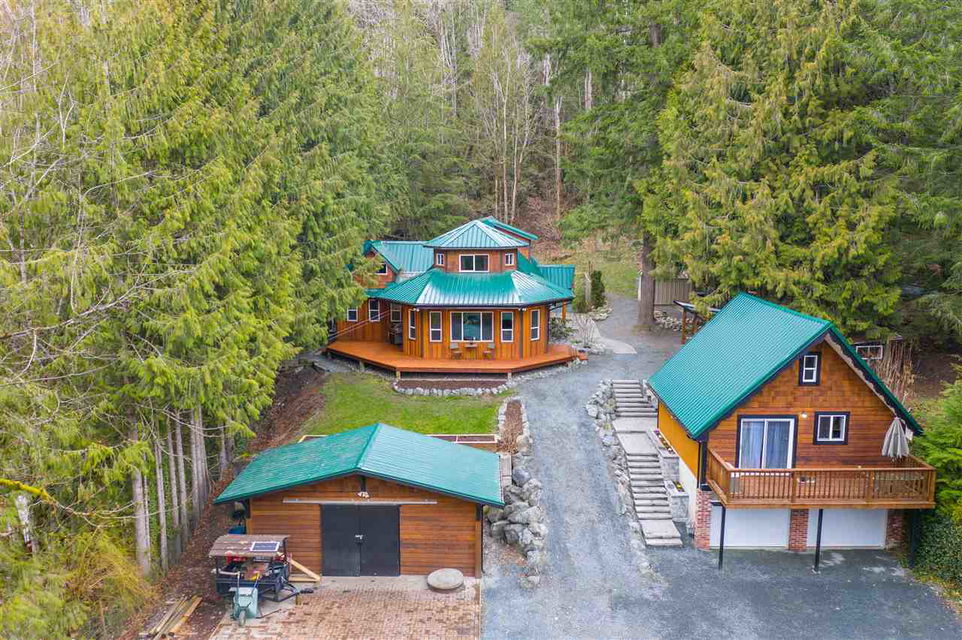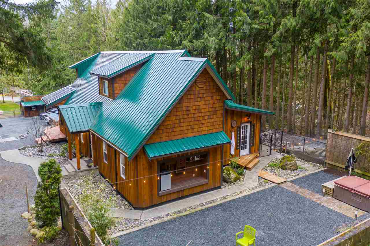 PARADISE FOUND! Unique mountain side estate on a picturesque .59 acre fenced lot w/ amazing mountain views and a 3 minute walk to the Vedder River. Manicured grounds w/ a gated entry, fenced yard, small hobby barn, large tool shed, PLUS a 2 bay DETACHED GARAGE w/ finished rec space incl. a washroom & wet bar- excellent man cave or teens hangout! The FULLY RENOVATED 2 story home is magazine worthy- not a thing overlooked. New roof, cedar siding, vinyl windows, vinyl plank flooring, open concept kitchen w/ SS appliances & entertainment island, custom beams & millwork throughout, updated washrooms- the WORKS. Master on main floor w/ access to the serene backyard w/ firepit & hot tub. Large fenced dog run too! Enjoy the incredible mtn views from the living room or the front wrap around deck!