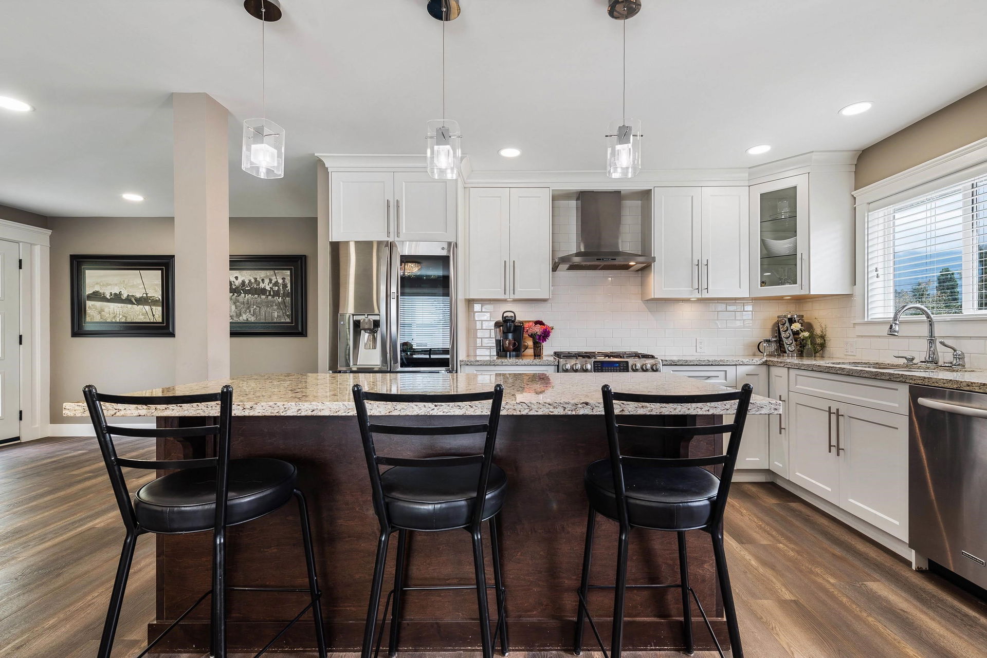 Gated .35 acre property w/ RENOVATED RANCHER W/ BSMT featuring an in-law suite, PLUS a 1367 sq ft (44×35) MECHANICS SHOP! Main home fully renovated w/ vinyl plank flooring, modern open concept kitchen w/ SS appliances incl GAS RANGE, quartz counters, & shaker cabinets w/ undercab lights. 2 bdrms on main & incredible laundry room fit for a queen! Master w/ his/her closets & ensuite w/ dual sinks & LARGE walk in glass tiled shower. Bsmt w/ 2 bdrms + flex, kitchenette area, secondary laundry, & 3 piece washroom perfect conversion for the family or income suite. Instant H2o, A/C, generator-you name it! SHOP w/ separate 200 amp service, water, gas heat, & 2 piece washroom -great access off Nevin & Yale-excellent for home based business! Parking GALORE w/ dual powered gates for easy access!